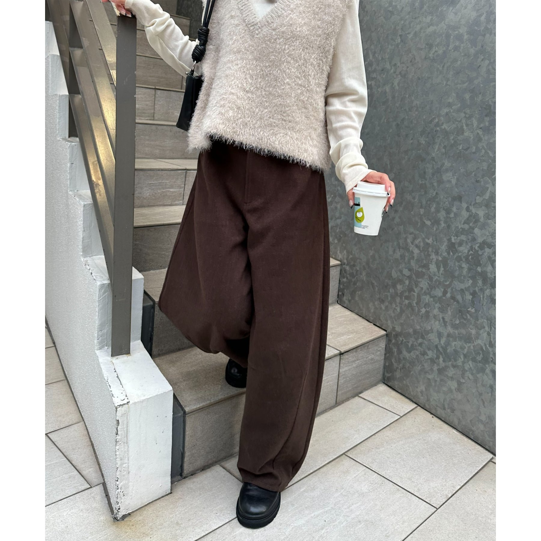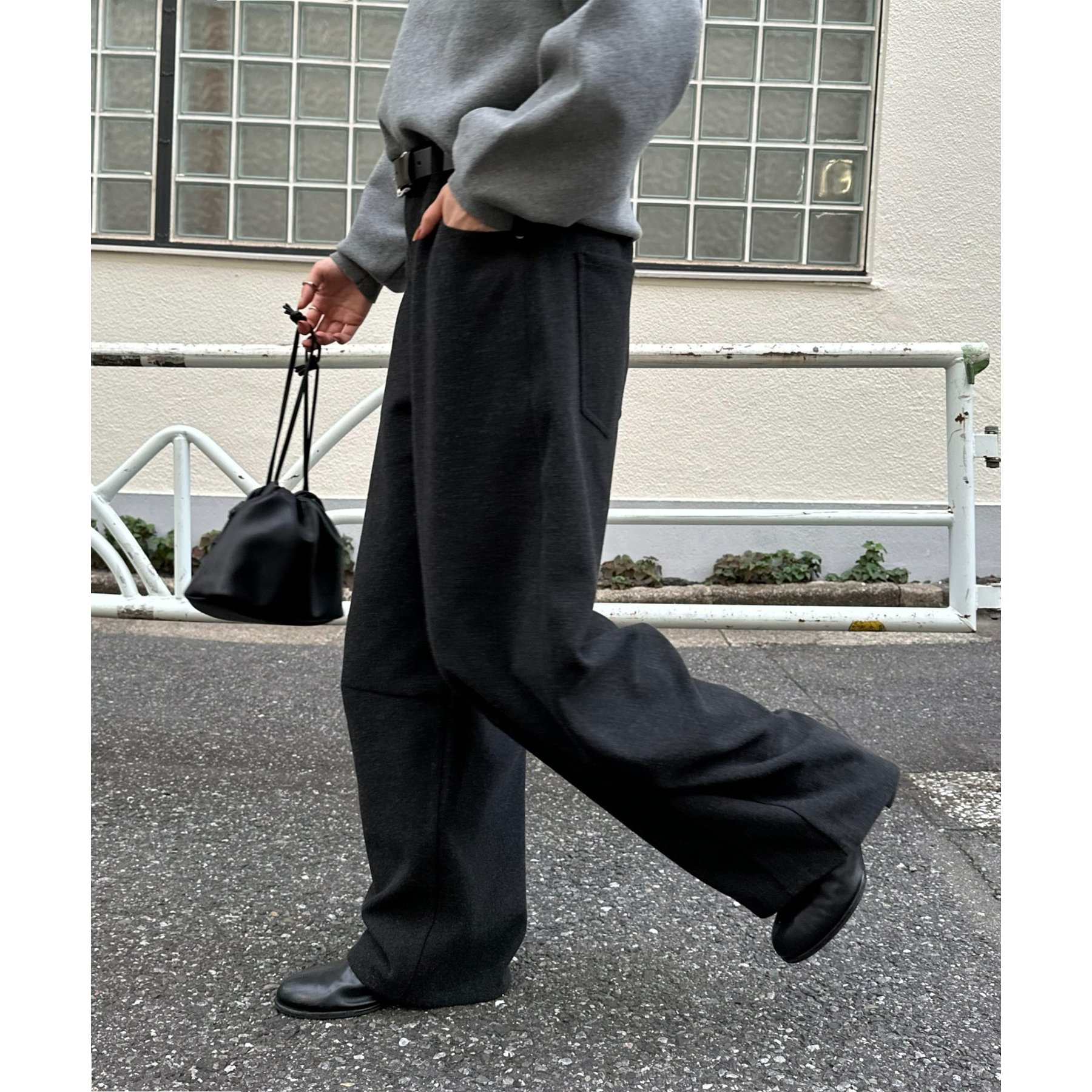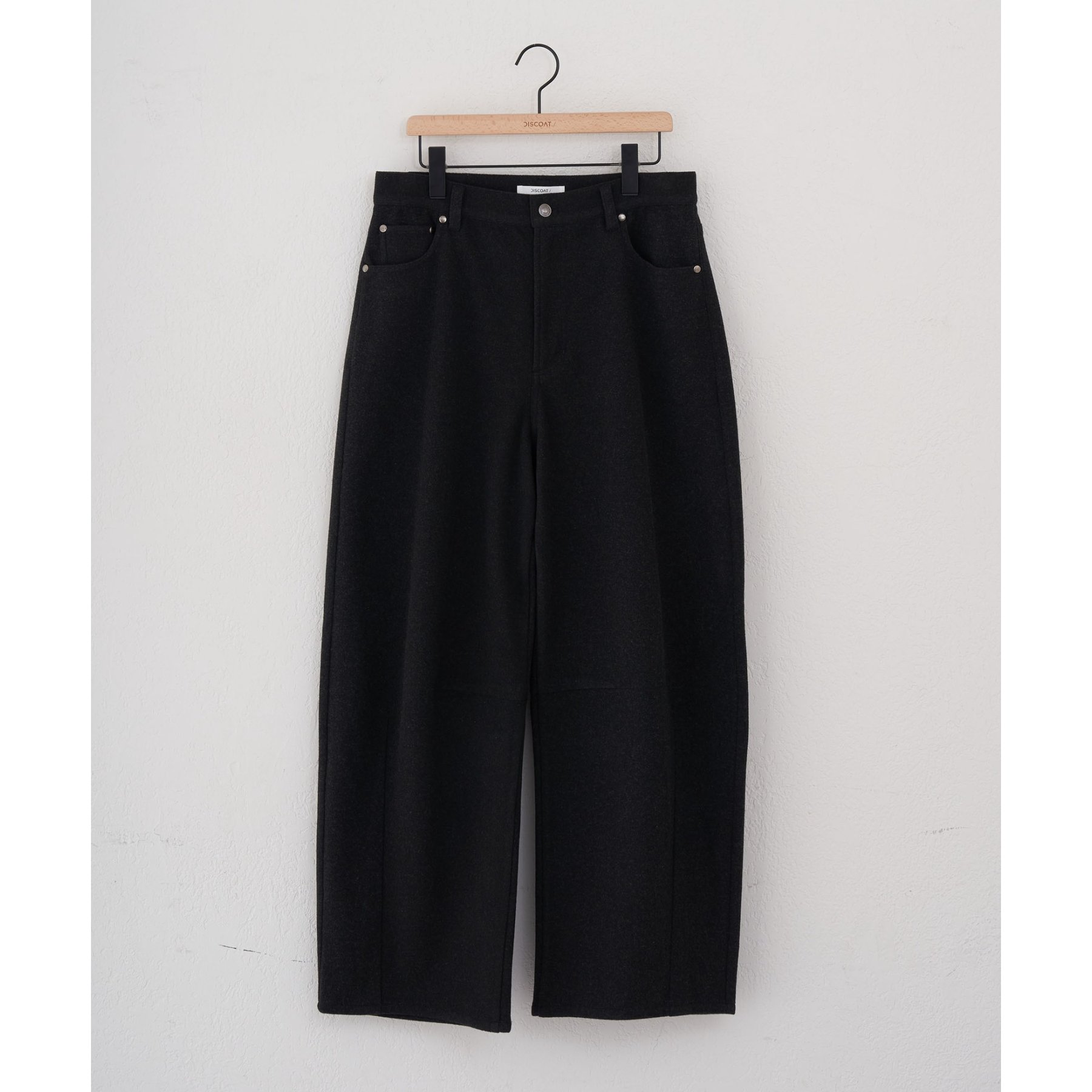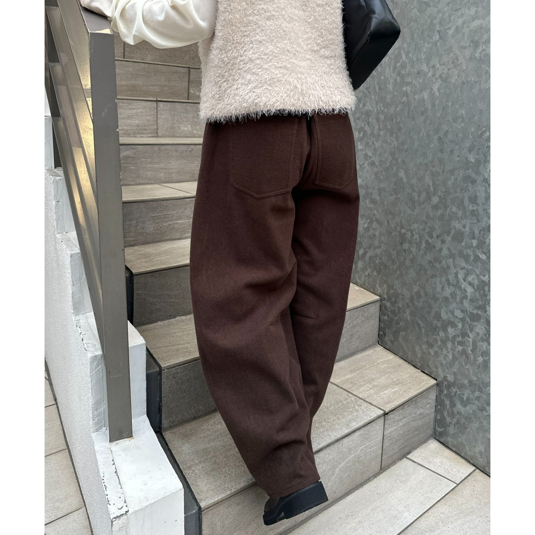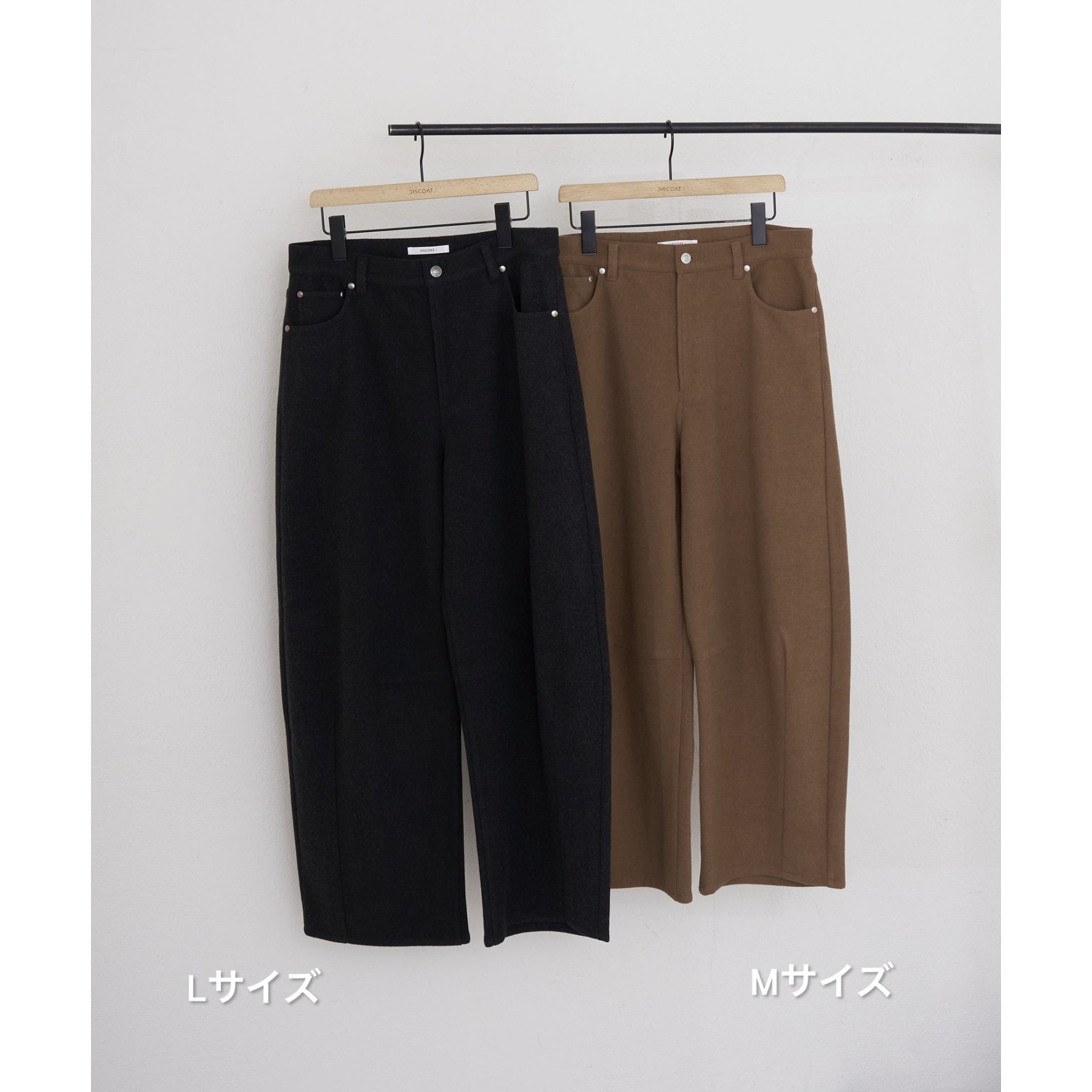 上品なウールライク素材で仕立てた、程よく丸みのあるバレルシルエットが魅力のユニセックスパンツ。