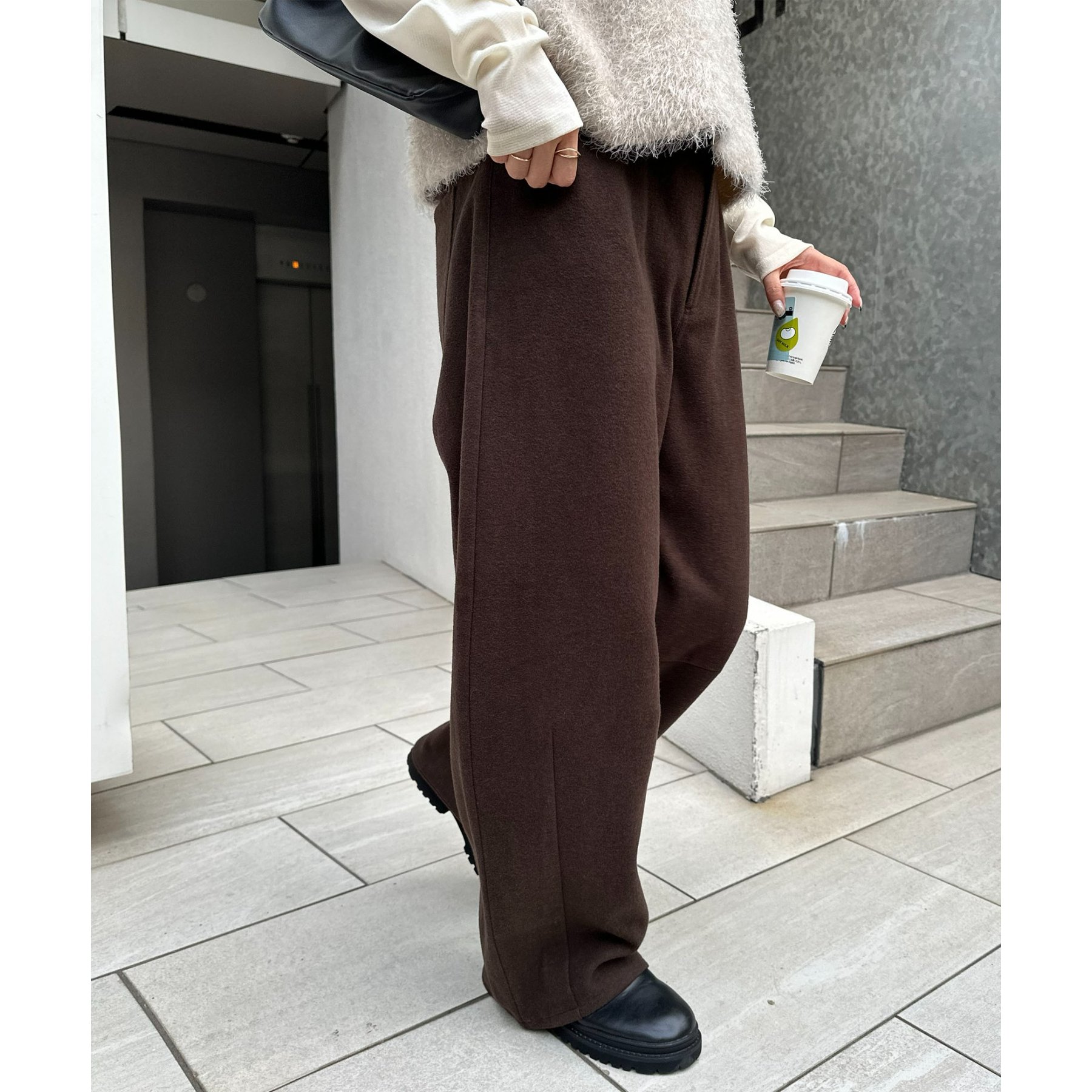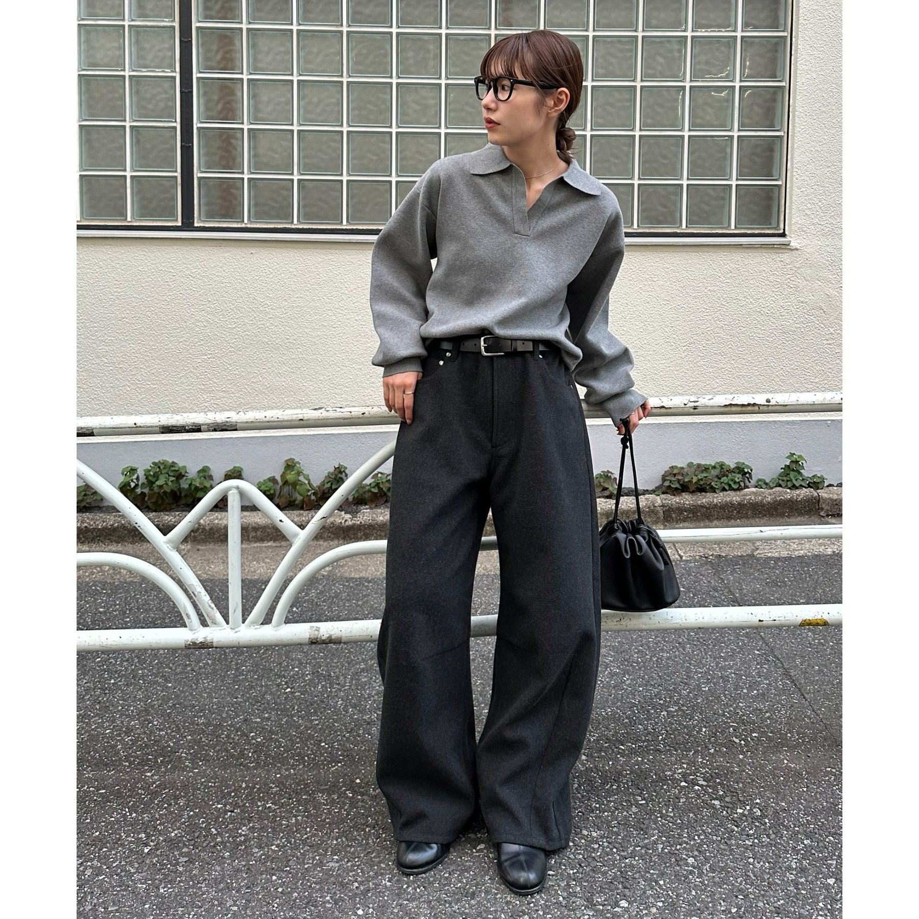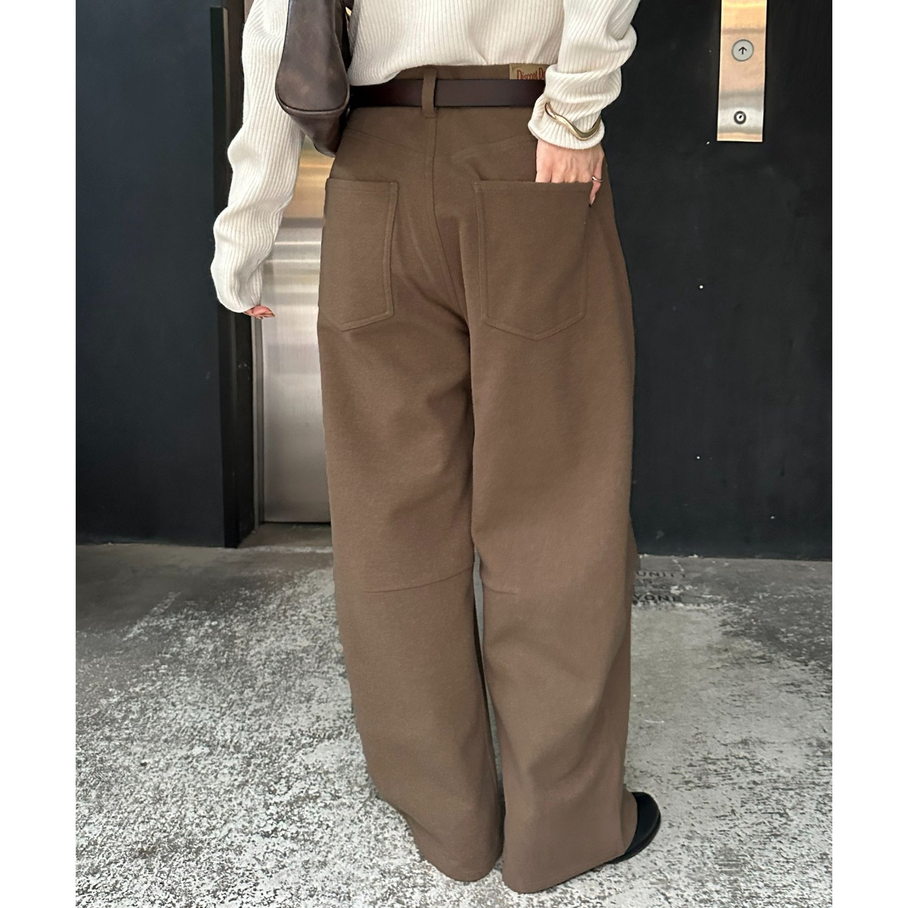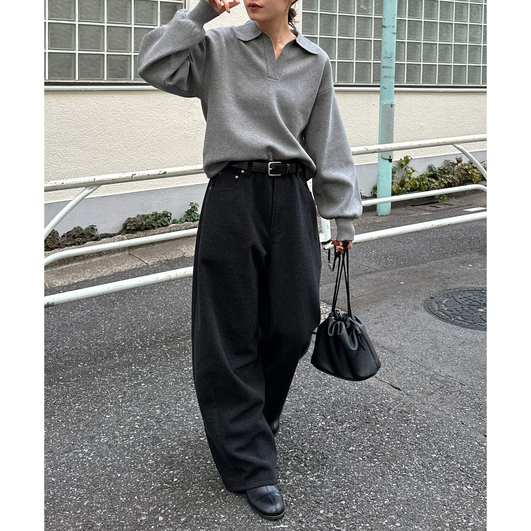 上品なウールライク素材で仕立てた、程よく丸みのあるバレルシルエットが魅力のユニセックスパンツ。