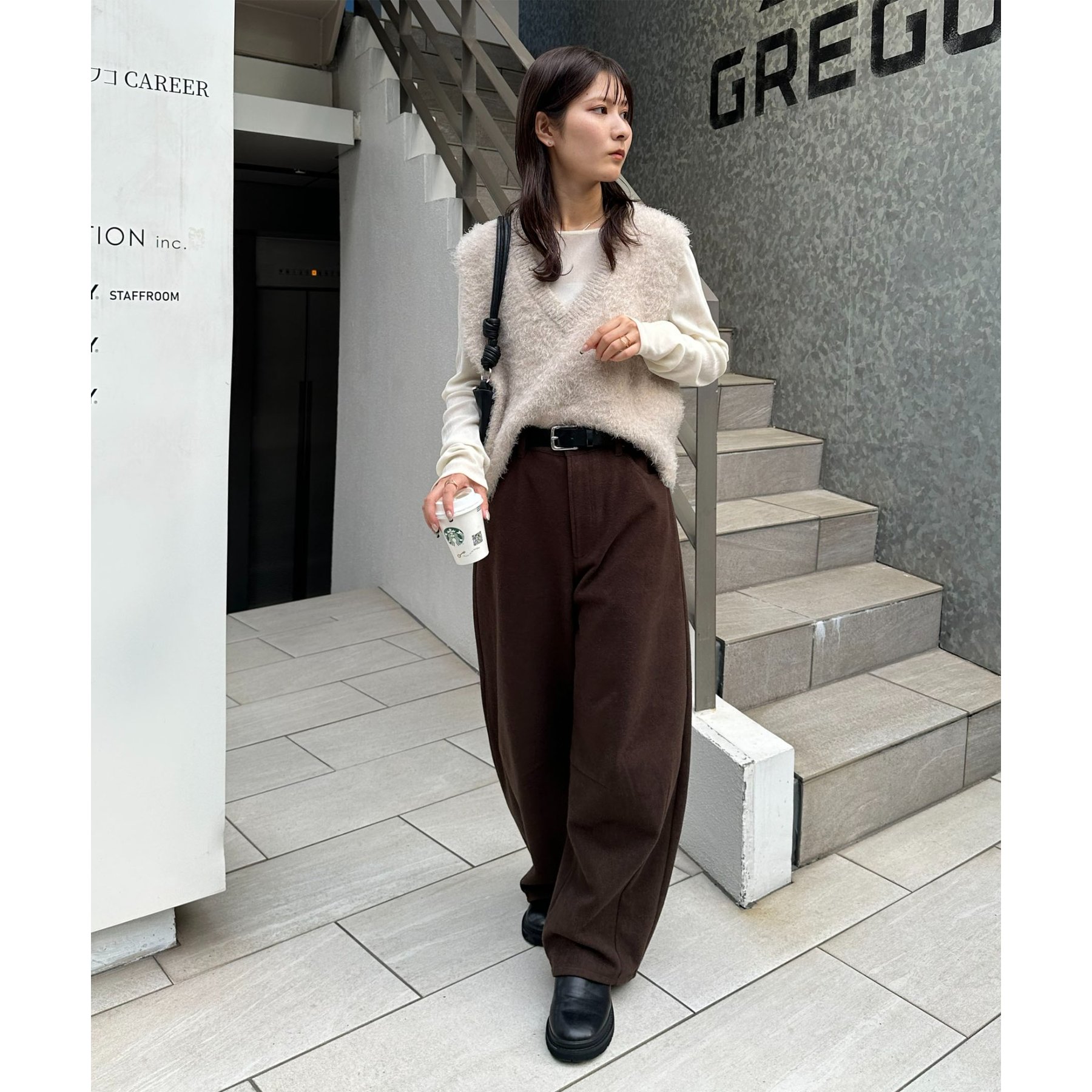 ヒップや太もも周りにゆとりを持たせ、裾に向かって窄まるシルエットがリラックス感がありながらもスタイルアップを叶えます◎