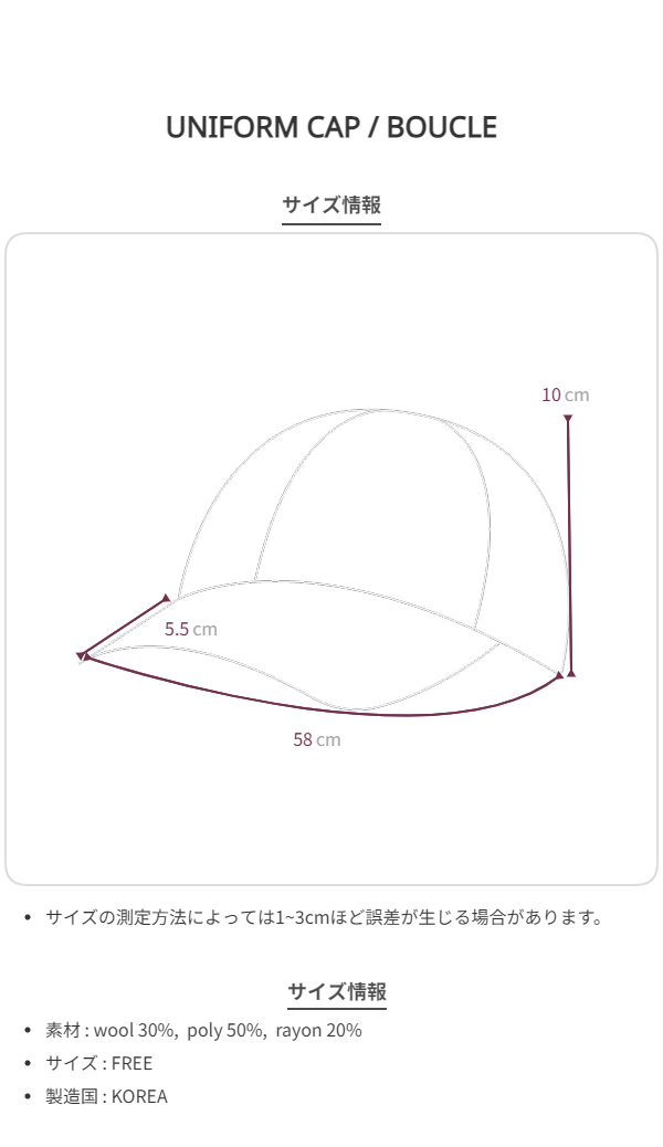 UNIFORM CAP / BOUCLE / CREAM(秋冬 ベースボールキャップ)