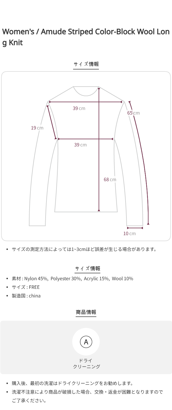 HEIGHT 168cm / BUST 73cm / WAIST 57cm / HIP 86cm
