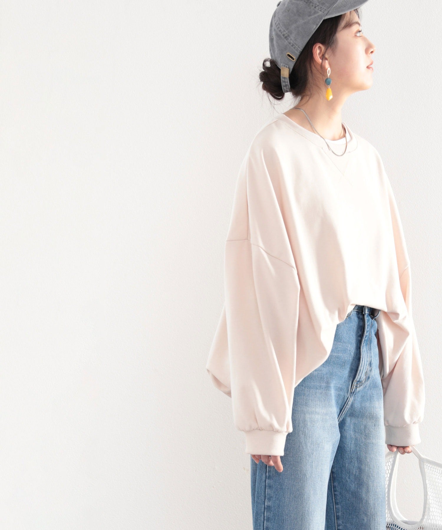 ゆったりした身幅にたっぷりのボリュームスリーブの一枚でサマになる大人プルオーバー。