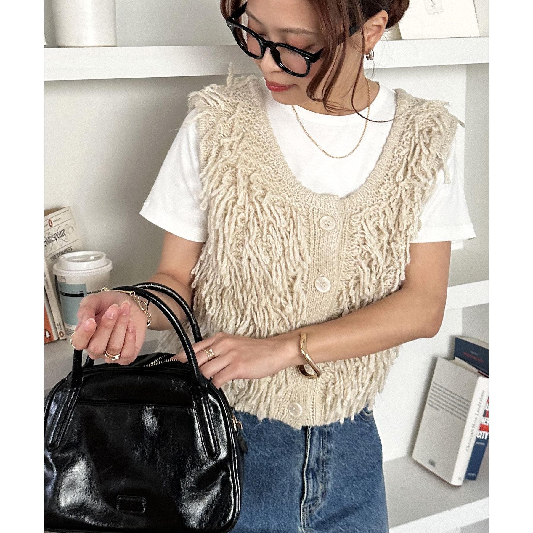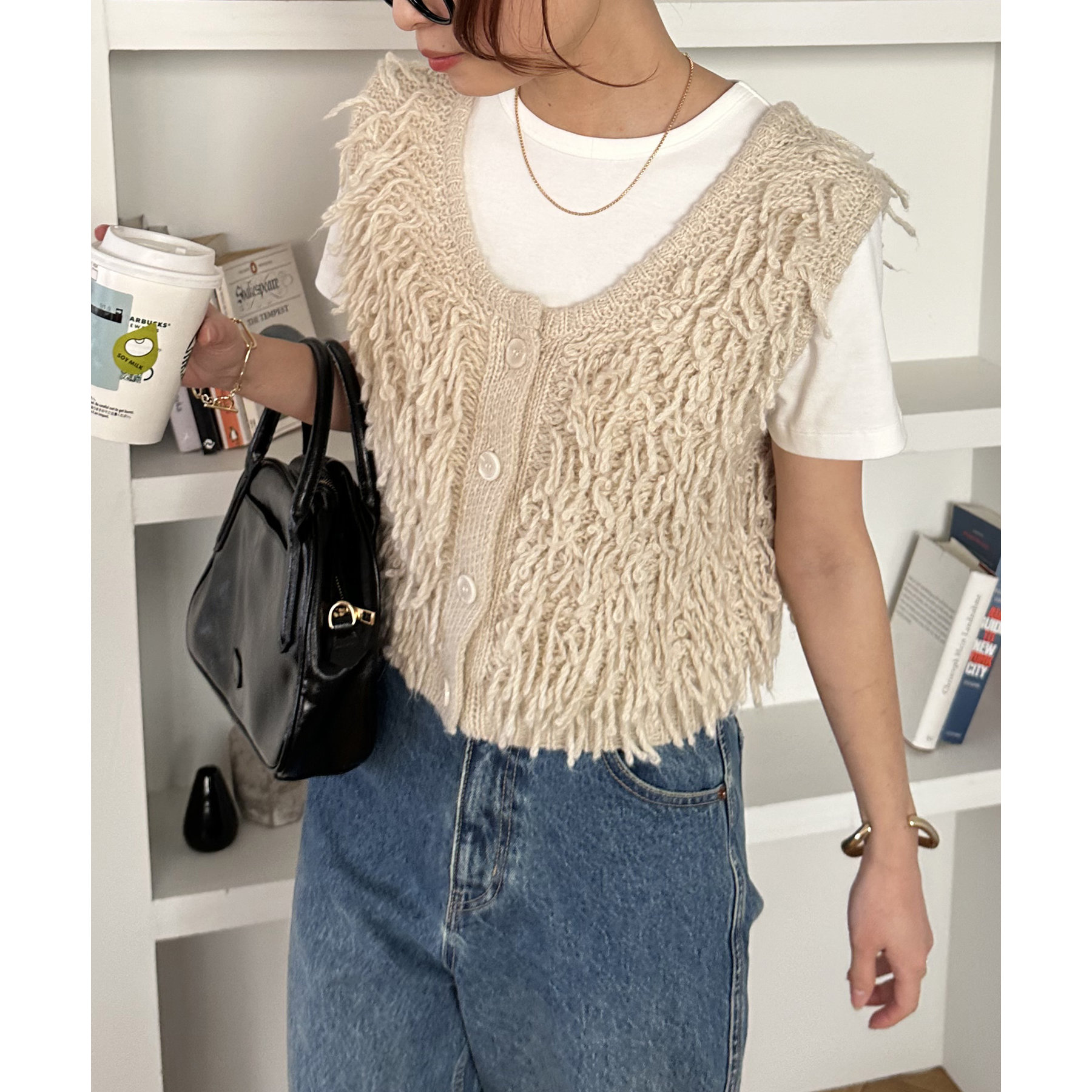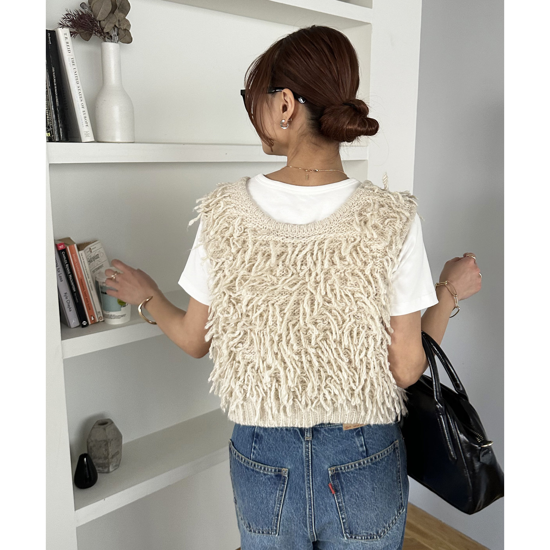 全体にフリンジを施したデザイン性のあるベスト。