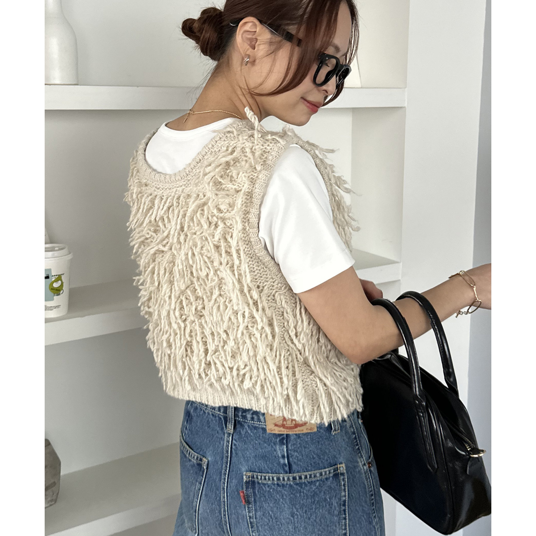 155cmスタッフ:軽くて柔らかいフリンジベスト。