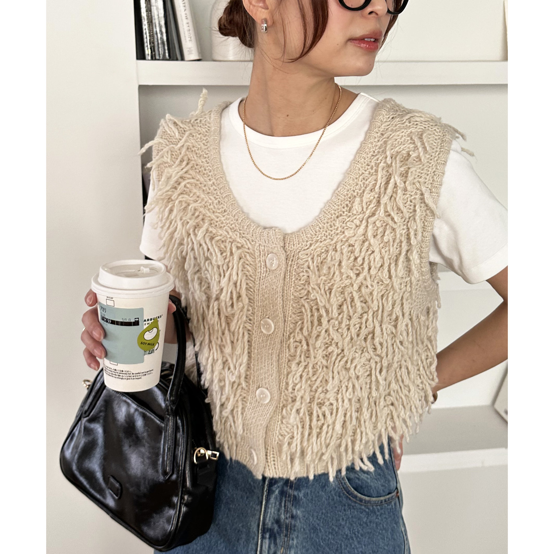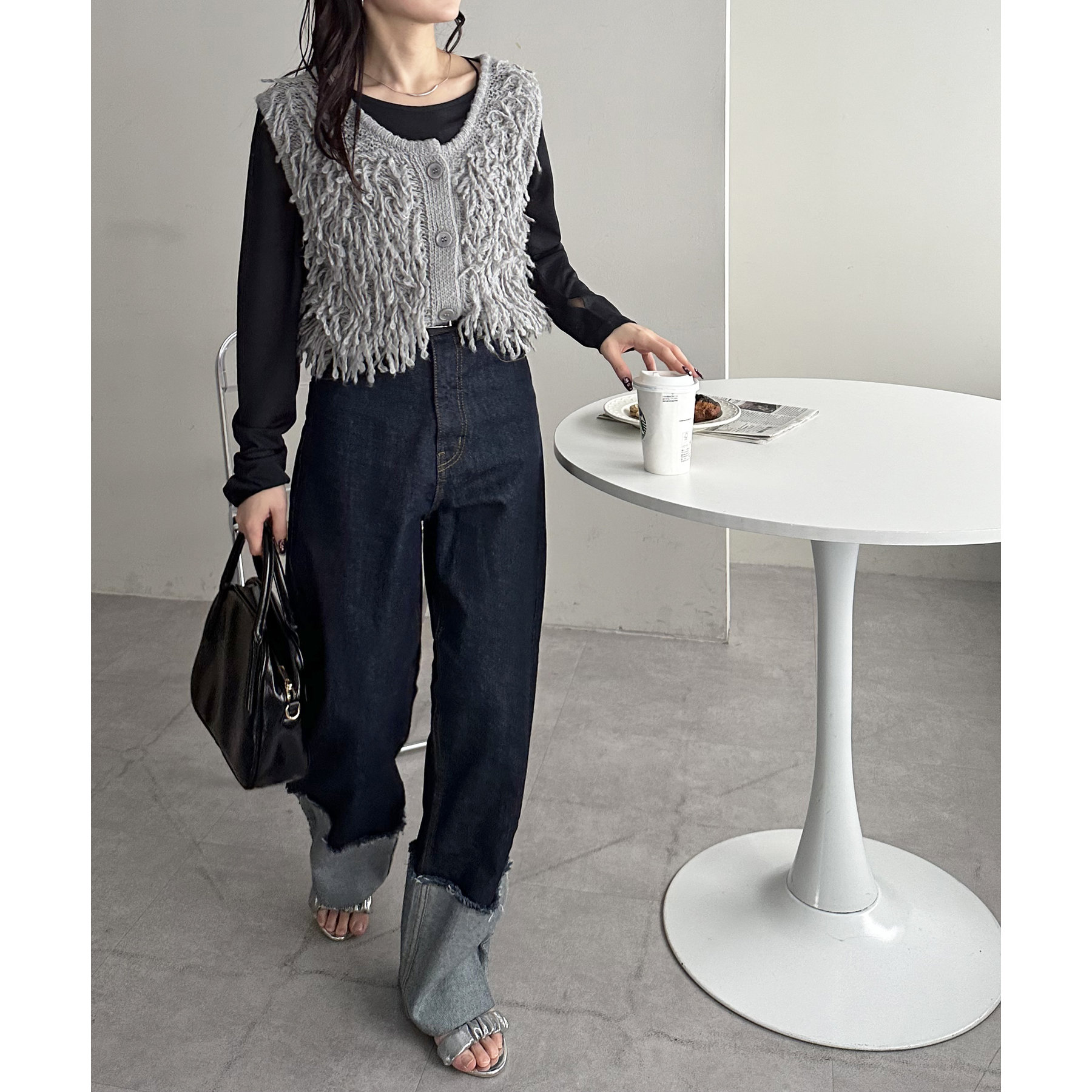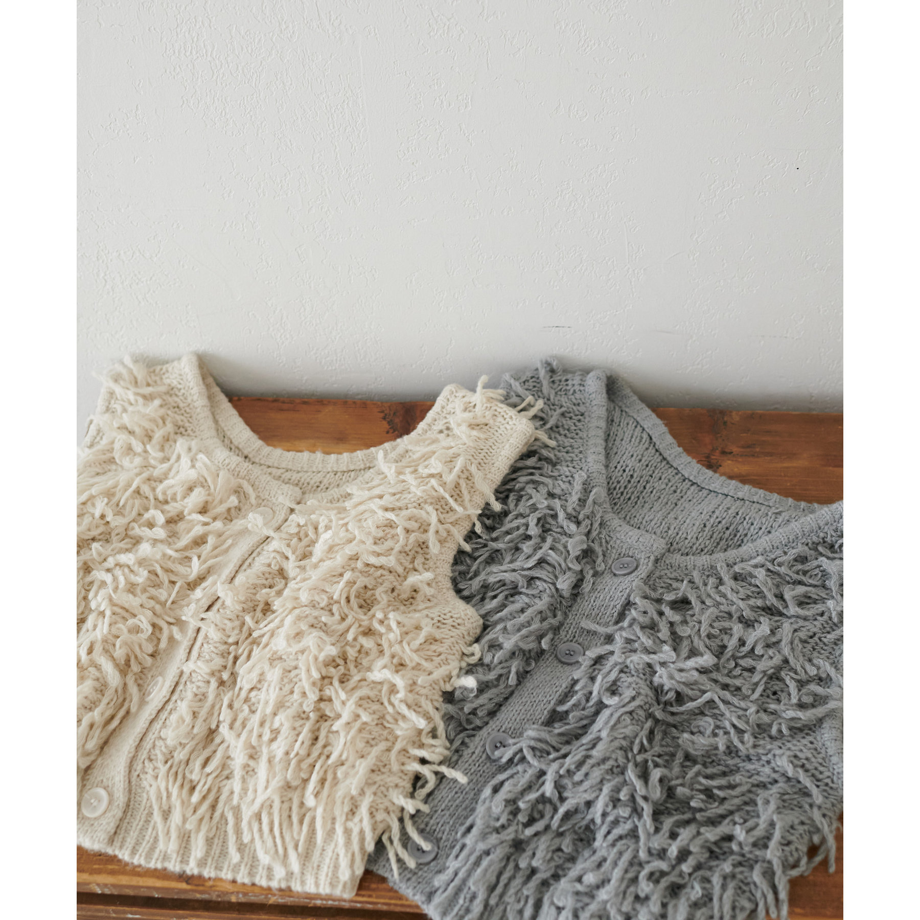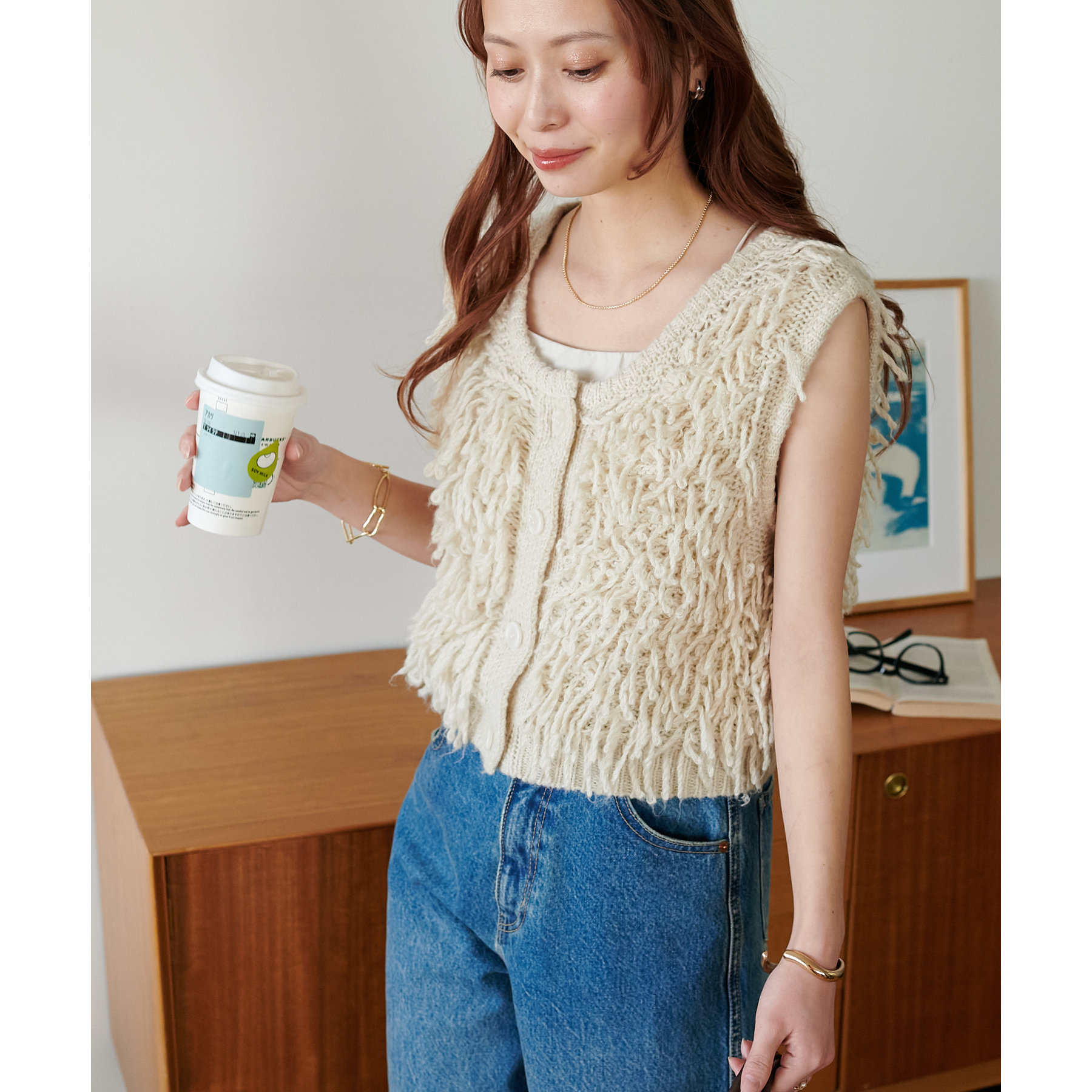 インナー次第でロングシーン楽しんでいただけるフリンジベスト。