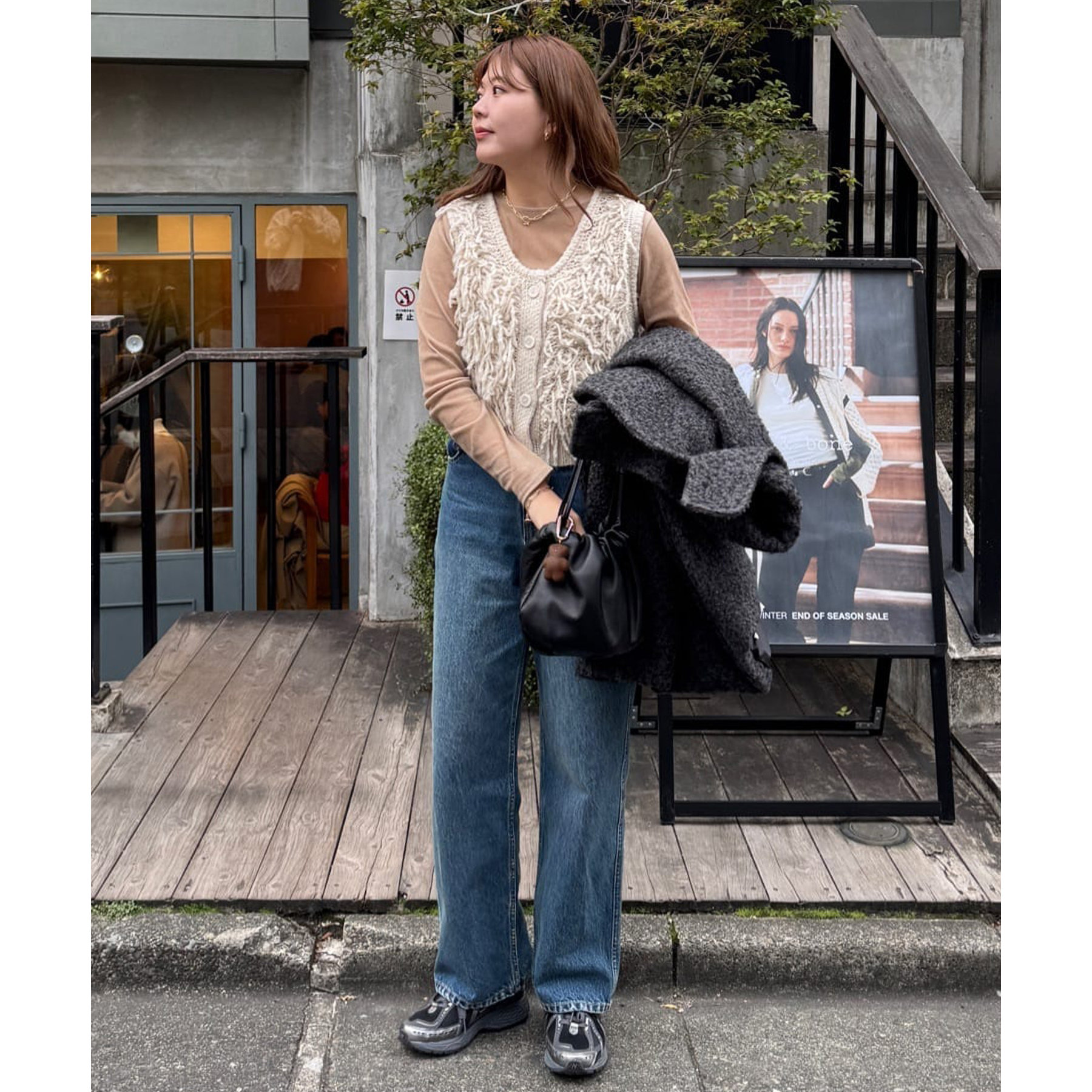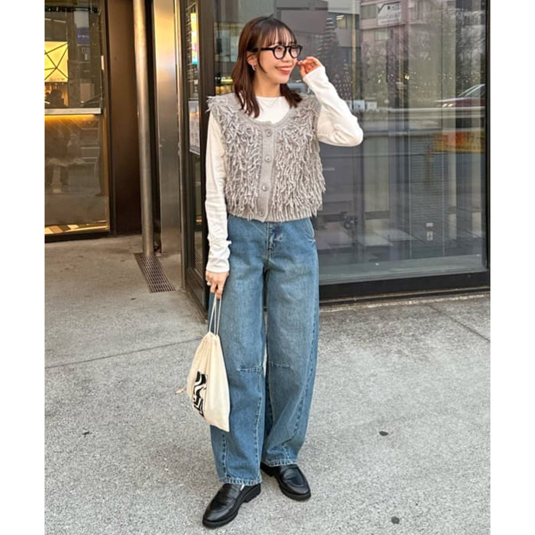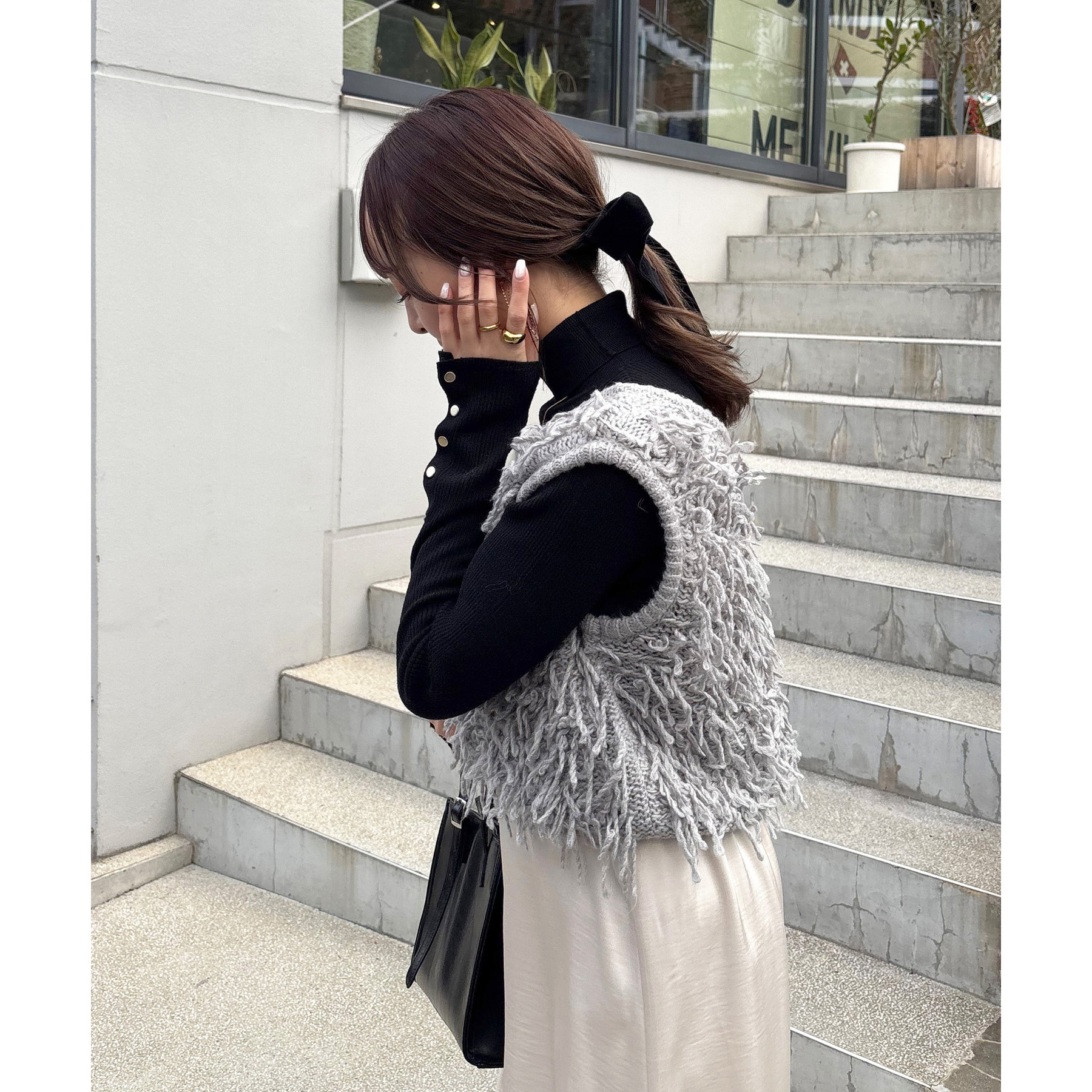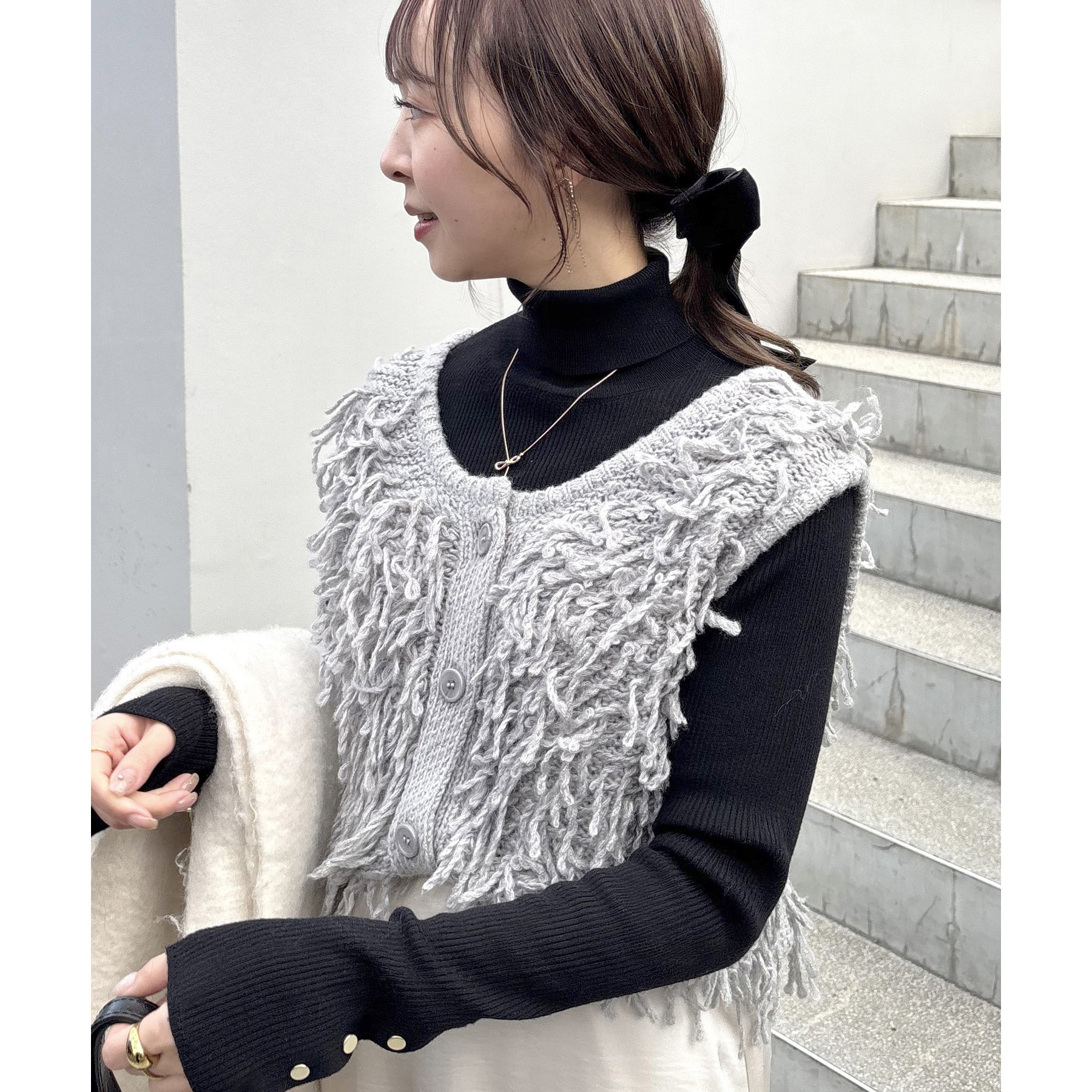 149cmスタッフ:フリンジが特徴的なので、シンプルなアイテムと合わせてもコーデが決まります◎