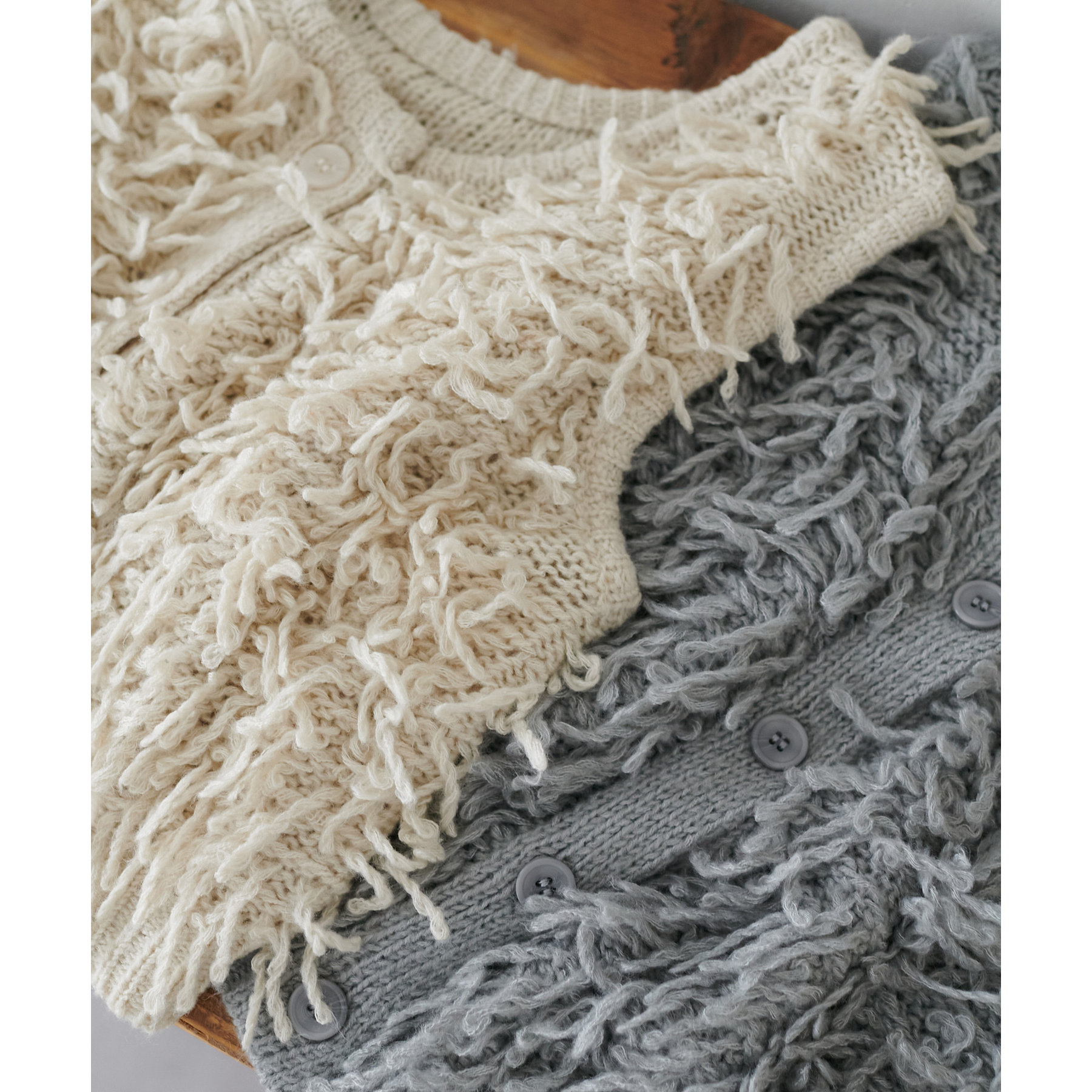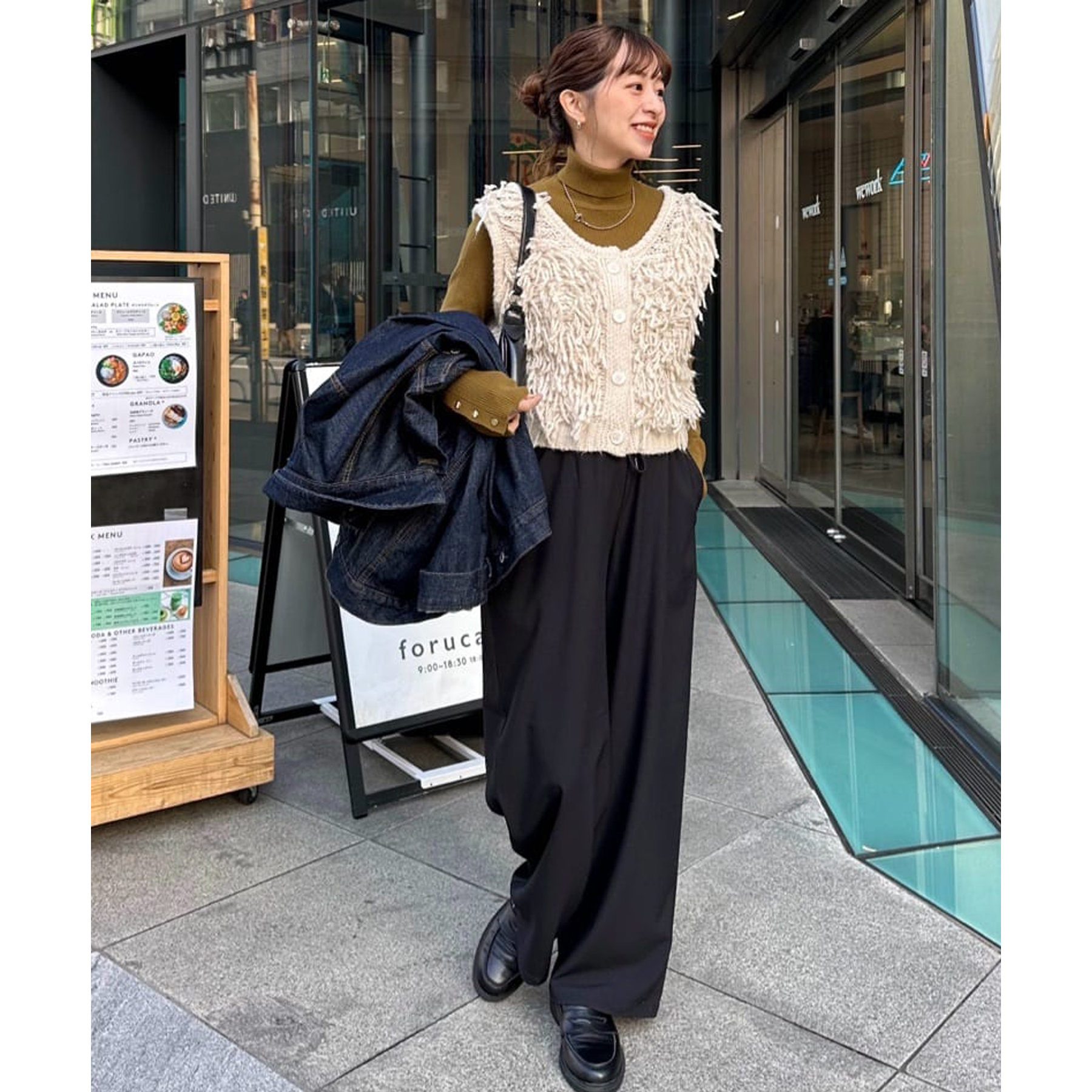 ボタンを開けて羽織で着ていただく着こなしもおすすめです!