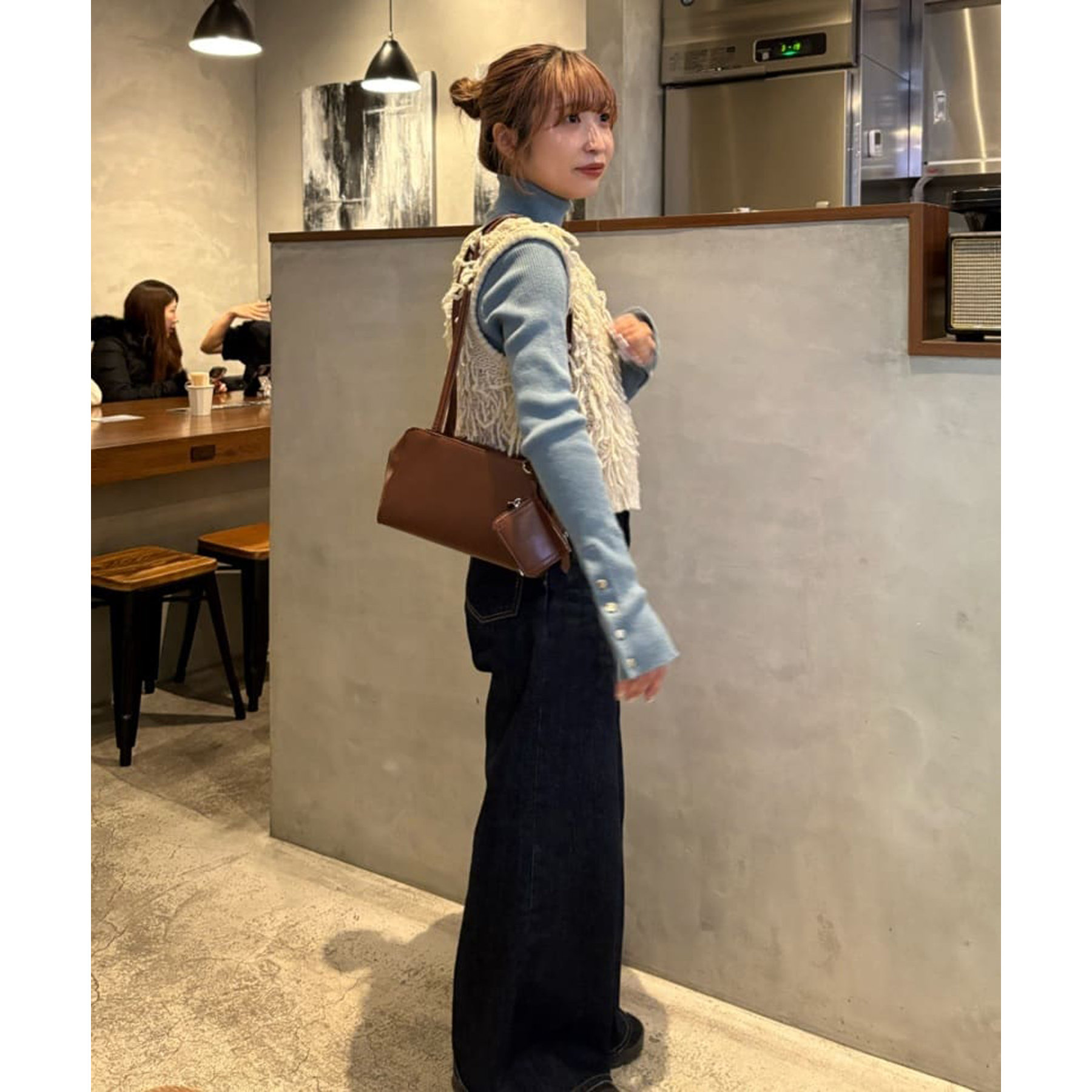 Uネックデザインなので、タートルネックやハイネックと合わせてもスッキリとした印象に仕上がります!