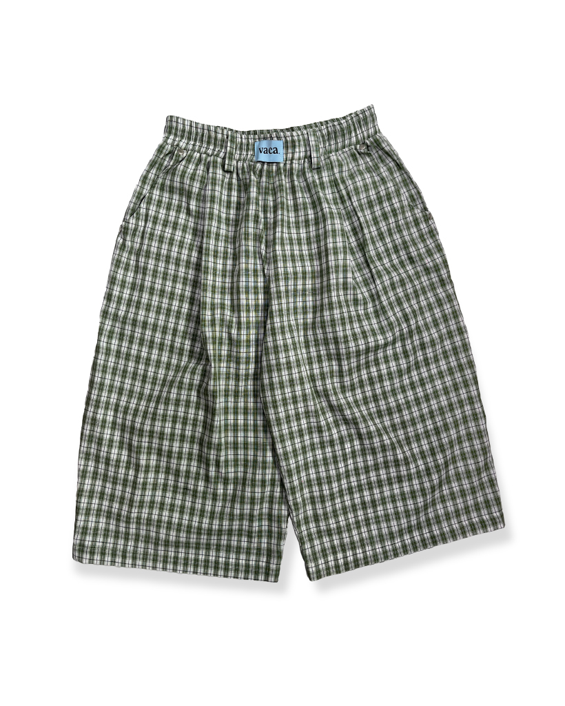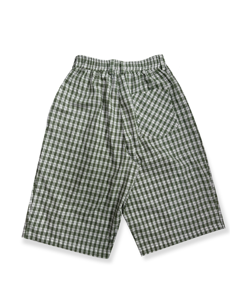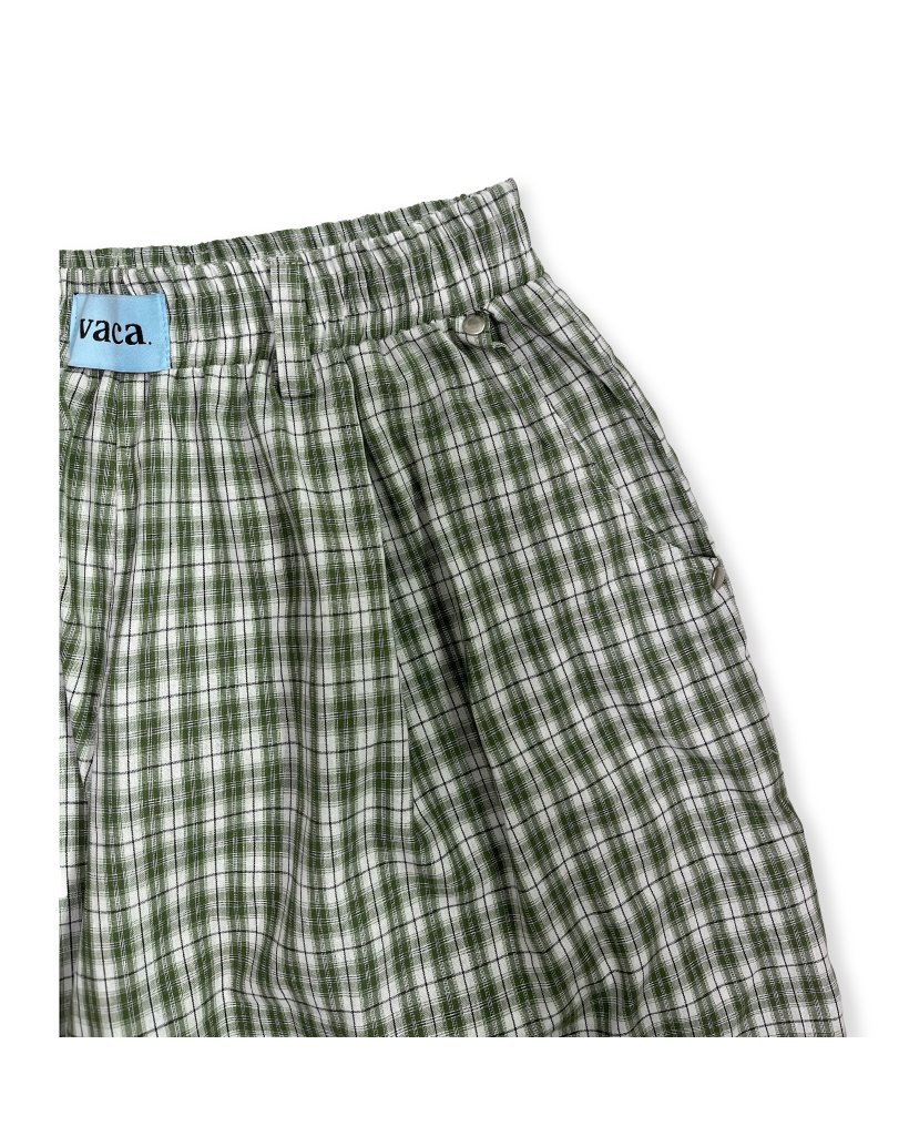 KHAKI CHECK PINTUCK BURMUDA PANTS