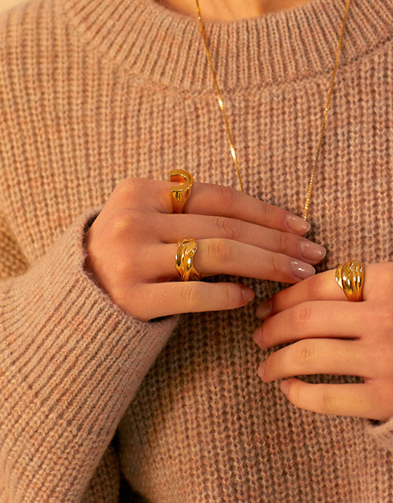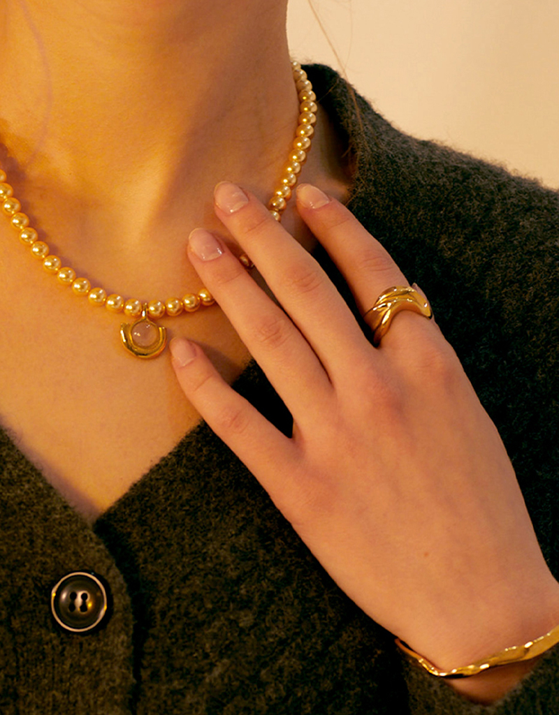 夕焼けの光のもと、やわらかく揺れる輝きをモチーフにデザインされたリングです。