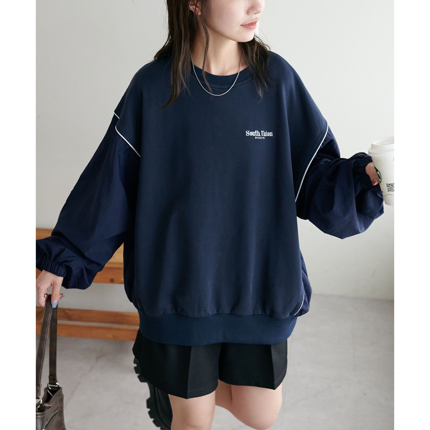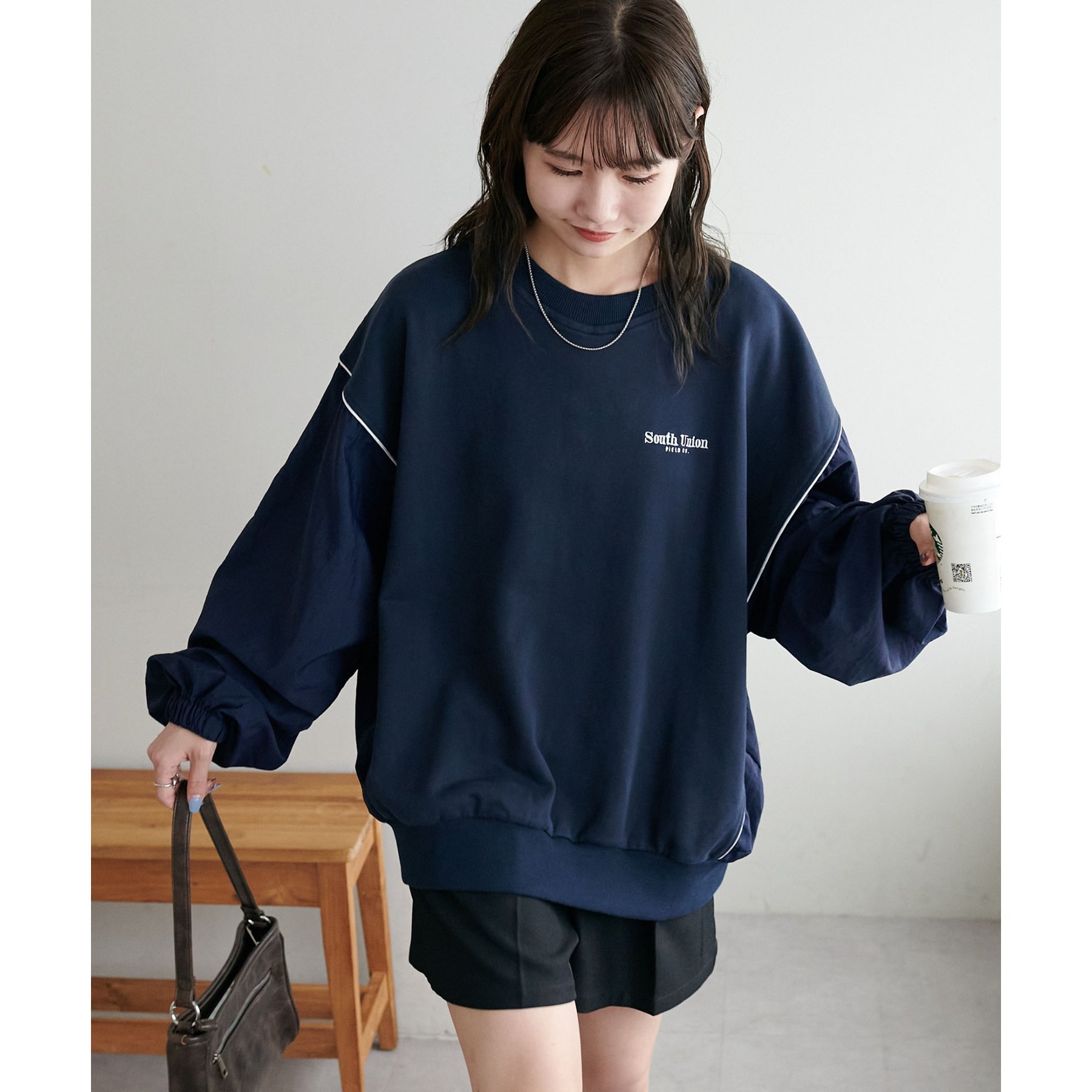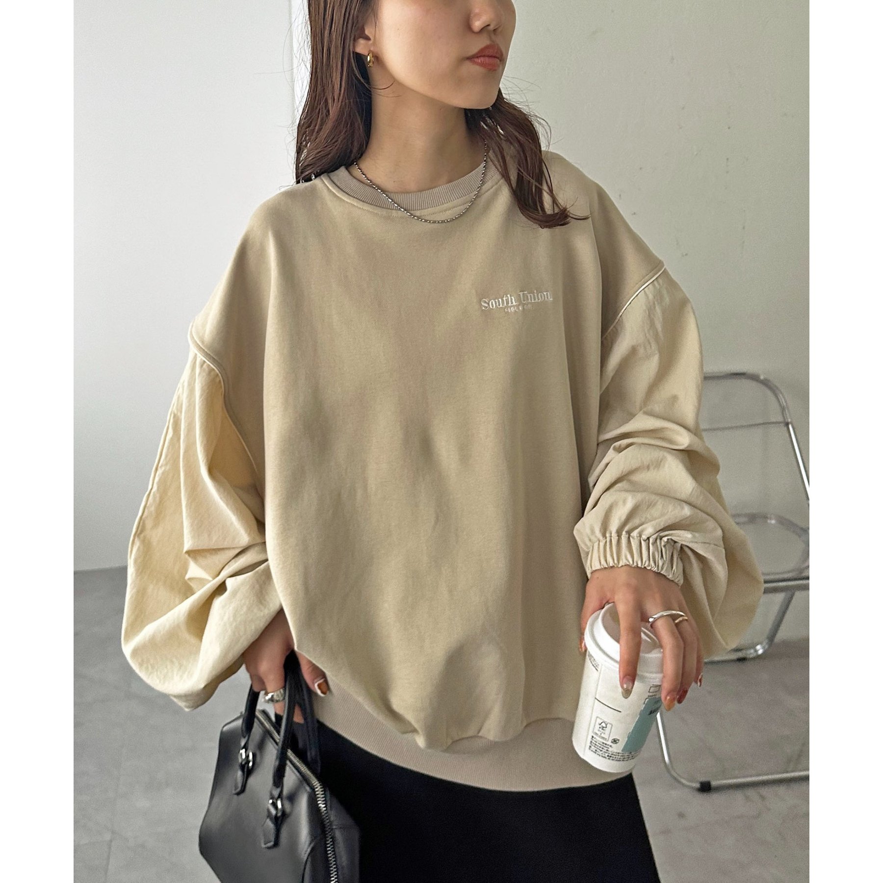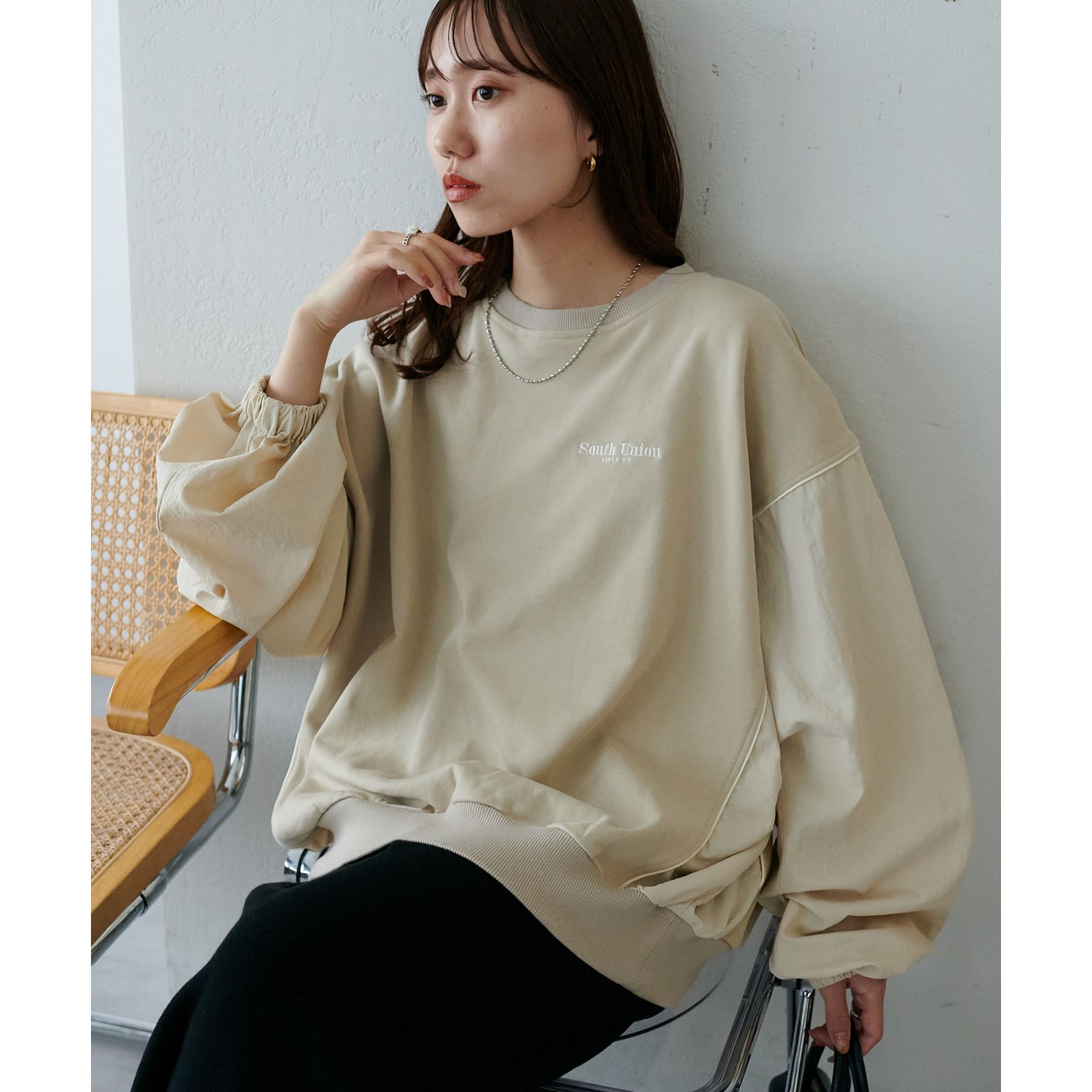 【ユニセックス】異素材切り替えスウェット