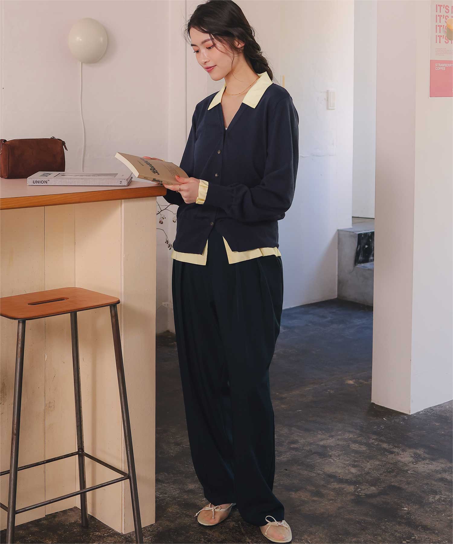 ・配色の衿がデザインポイント