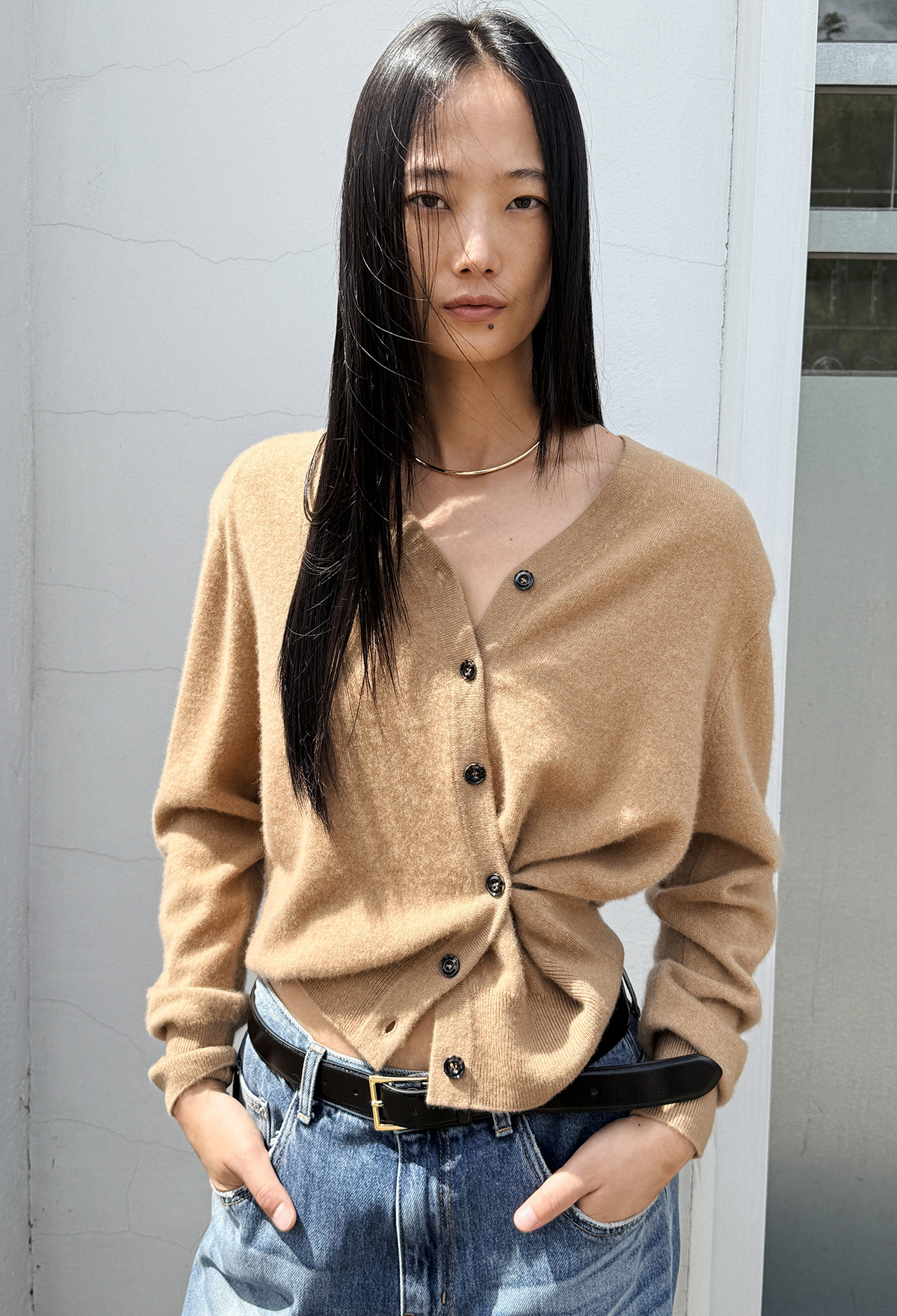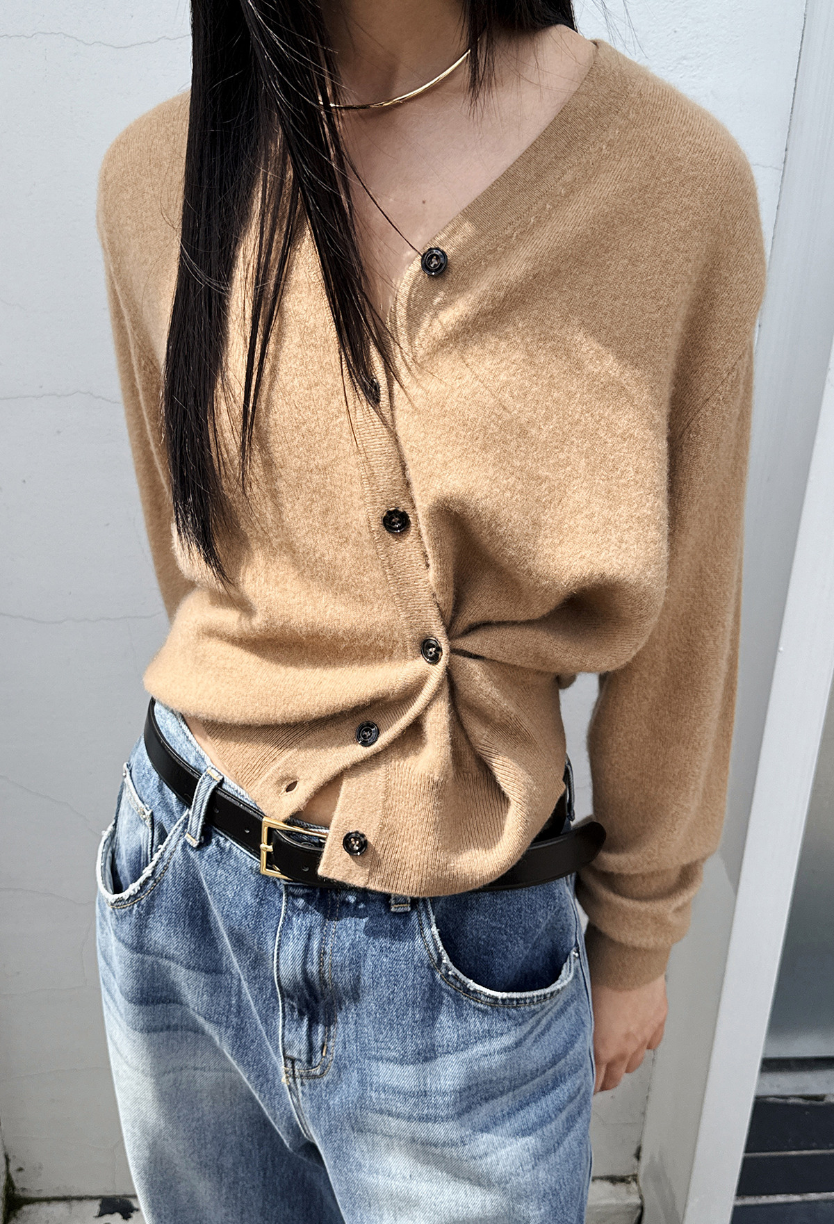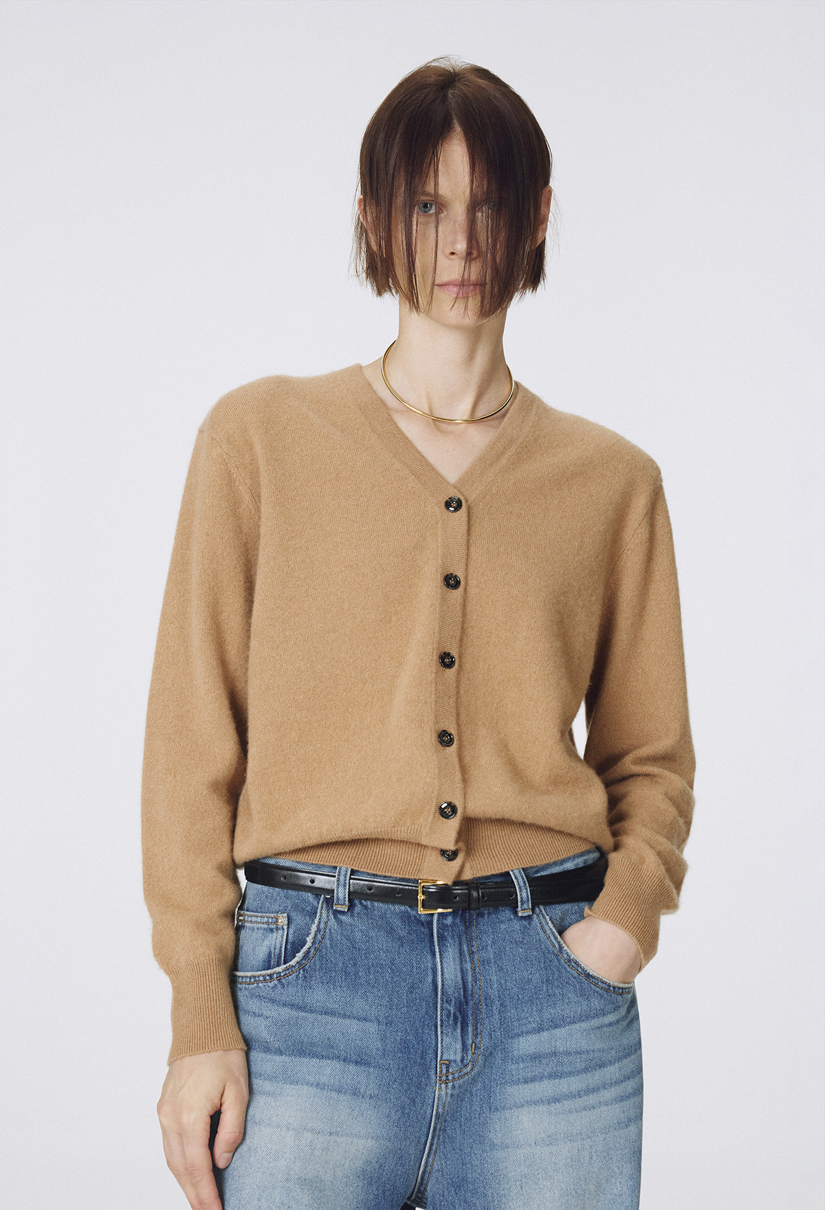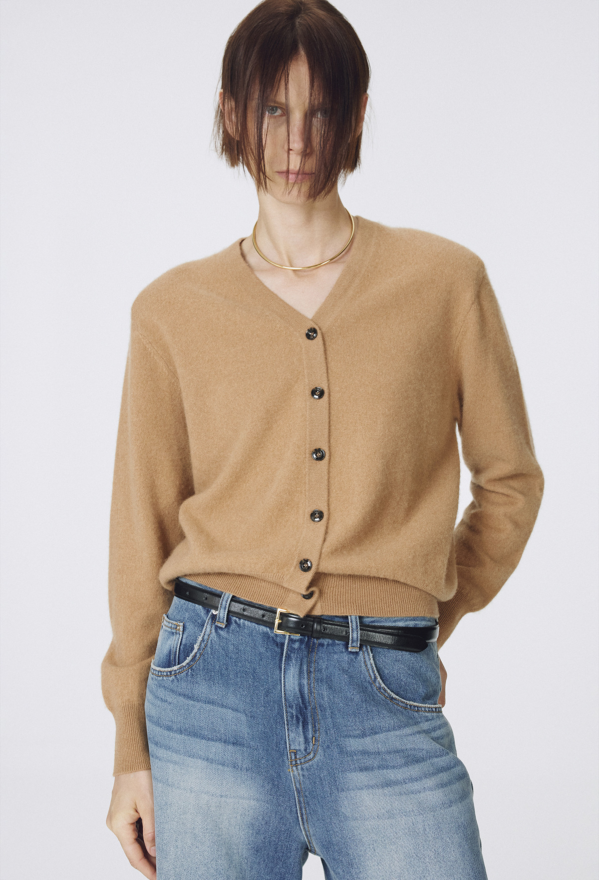 Cashmere Padded Cardigan Camel