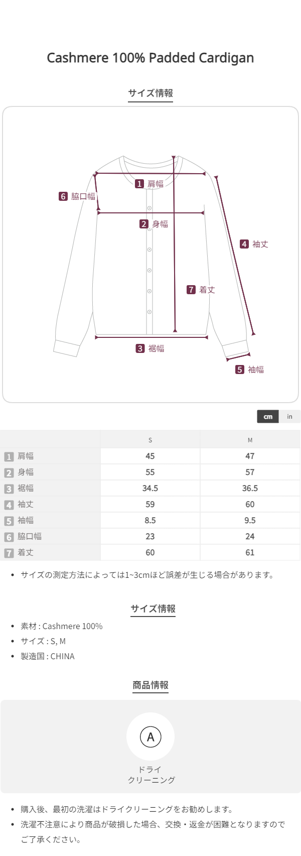 このブランドの商品はお客様の都合による交換および返品はお受けいたしかねます。