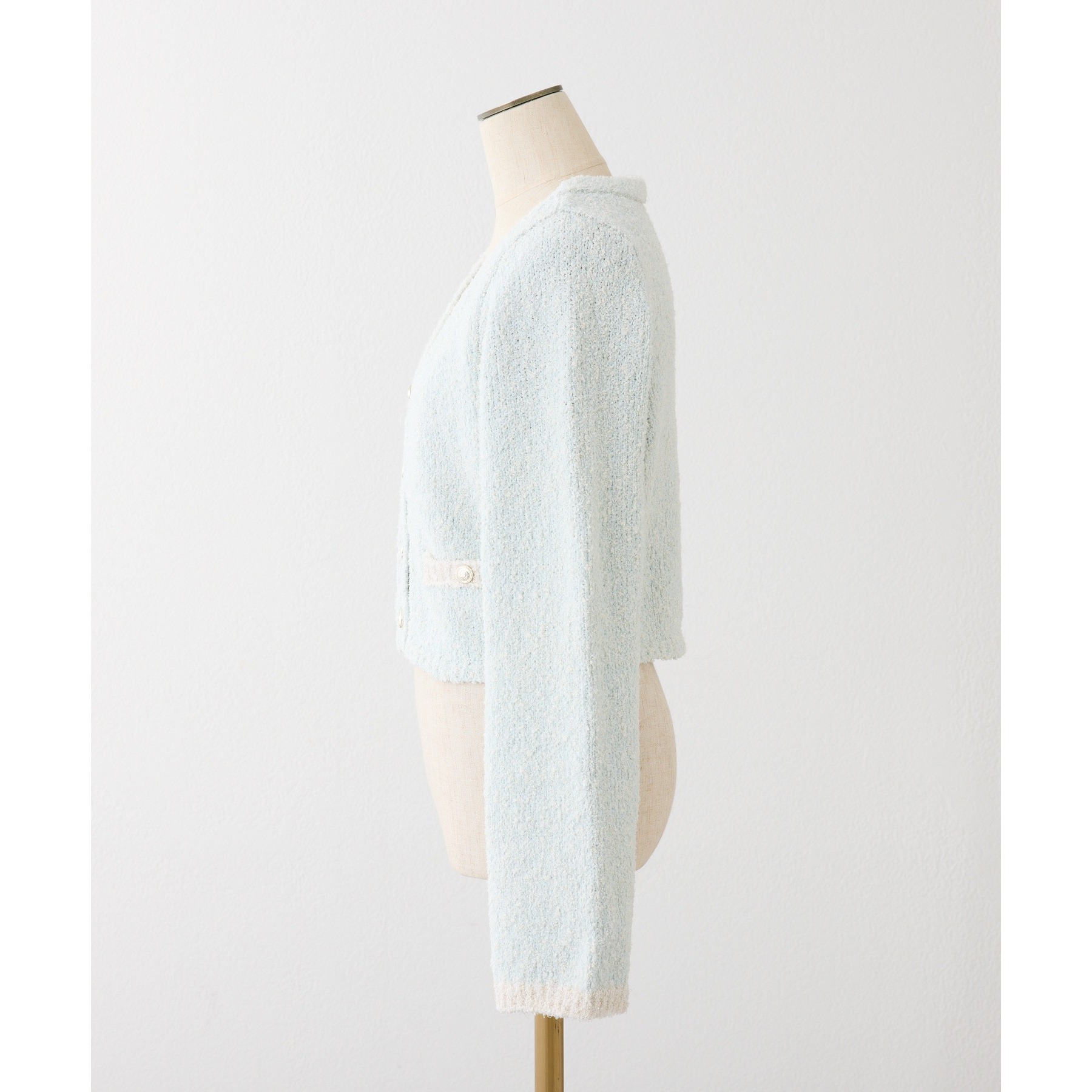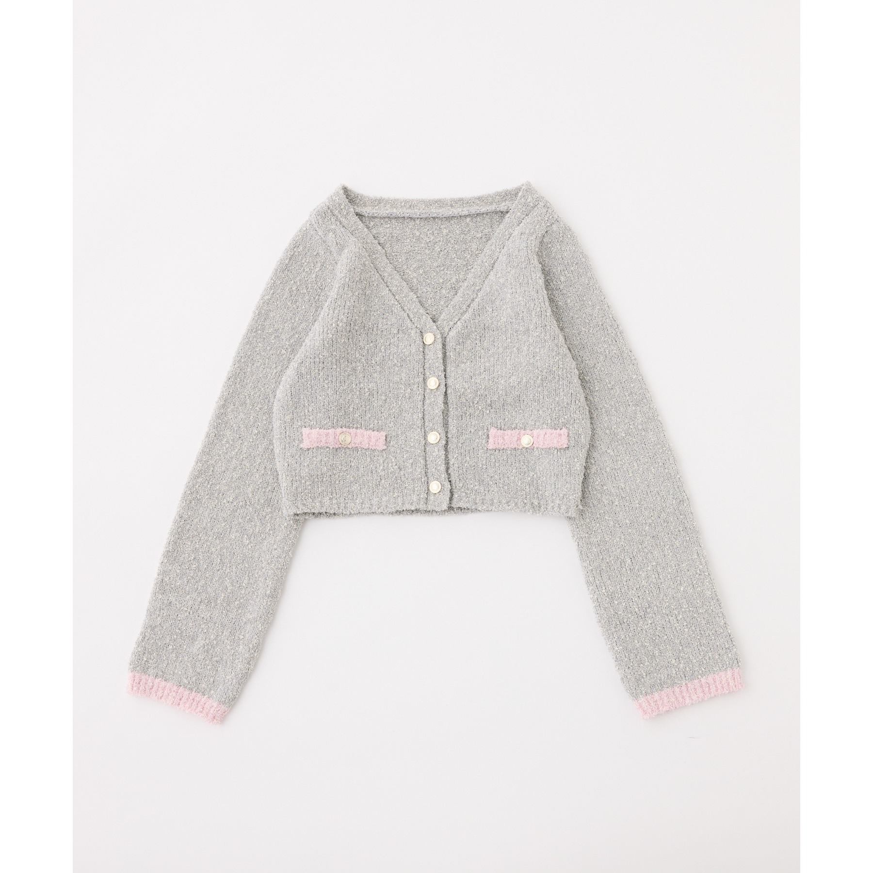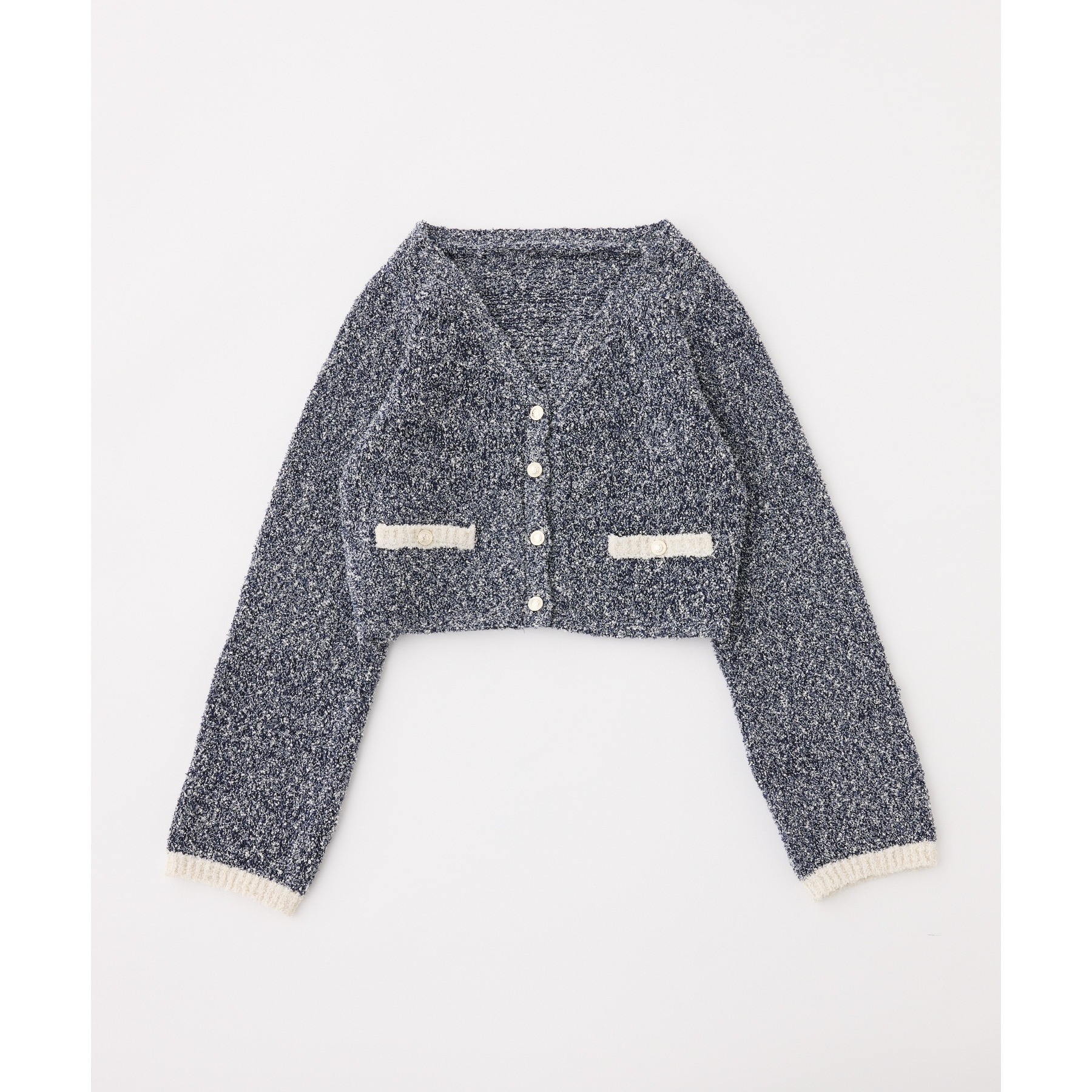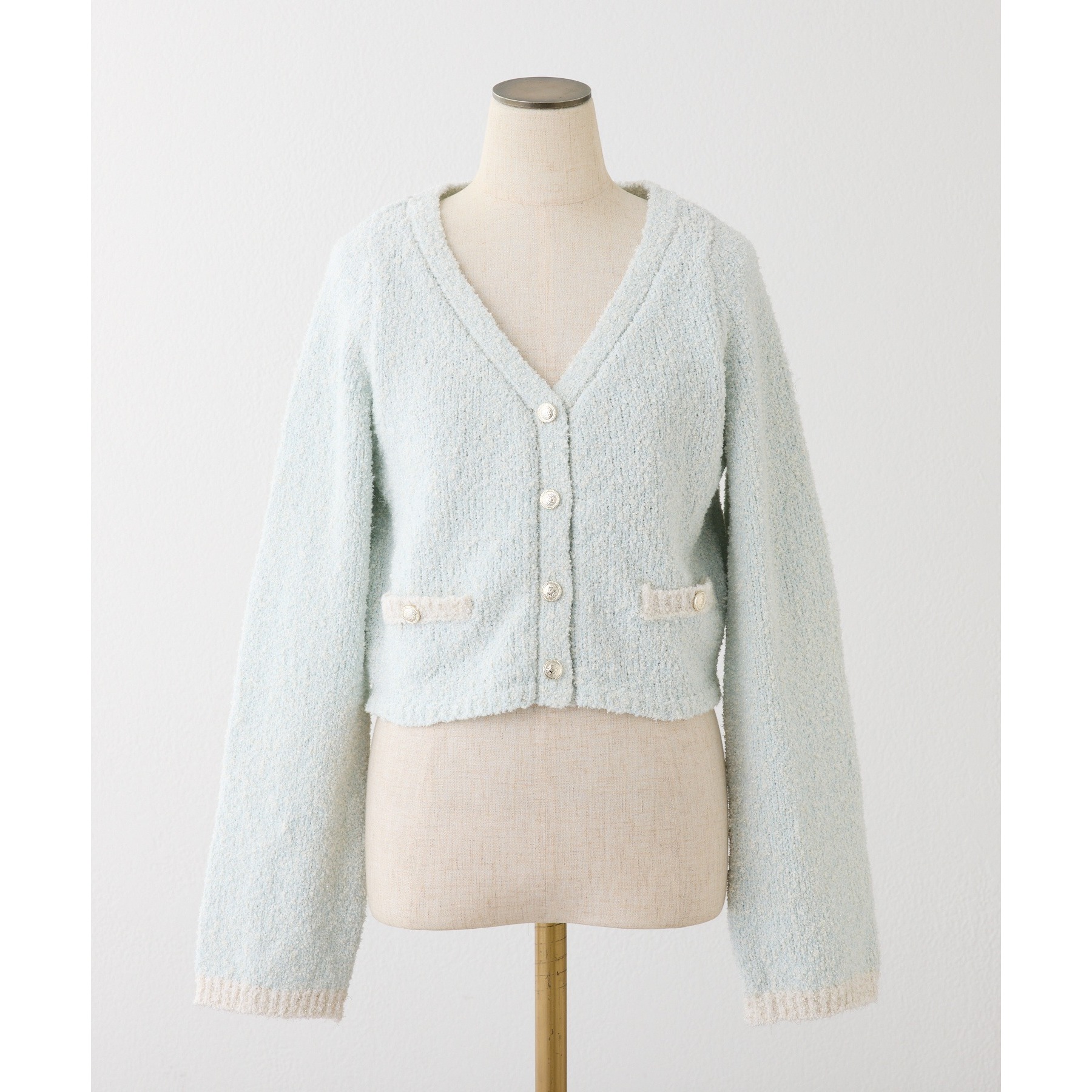 ラメ糸を使用しているため、キラキラとした華やかさが魅力のカーディガン。