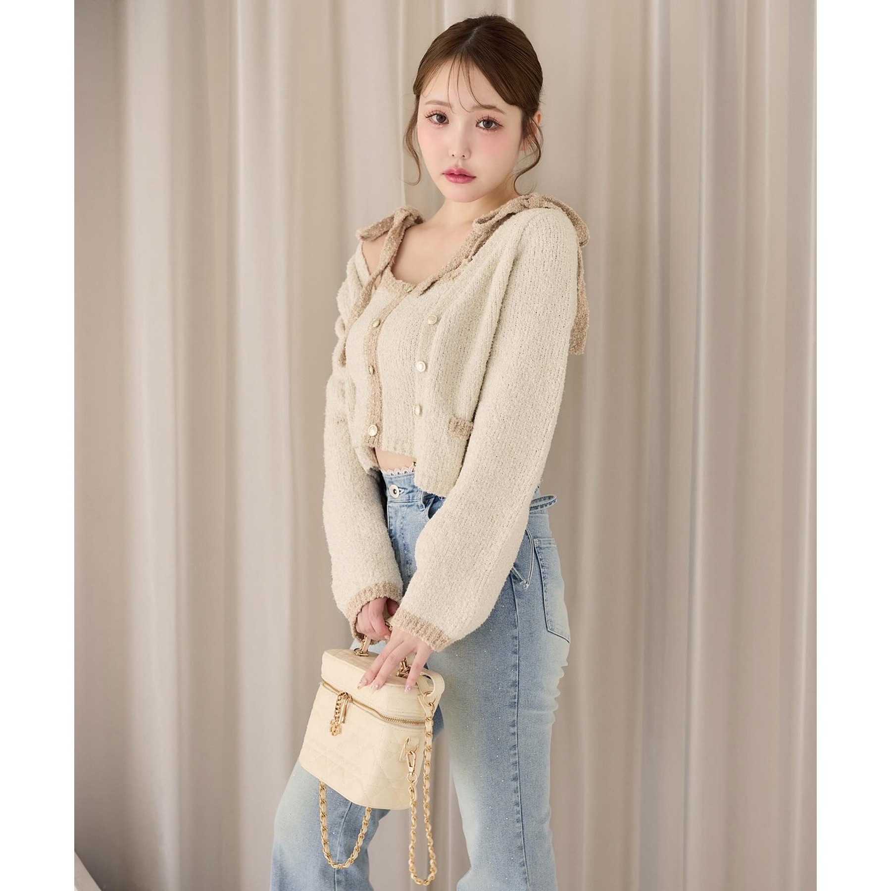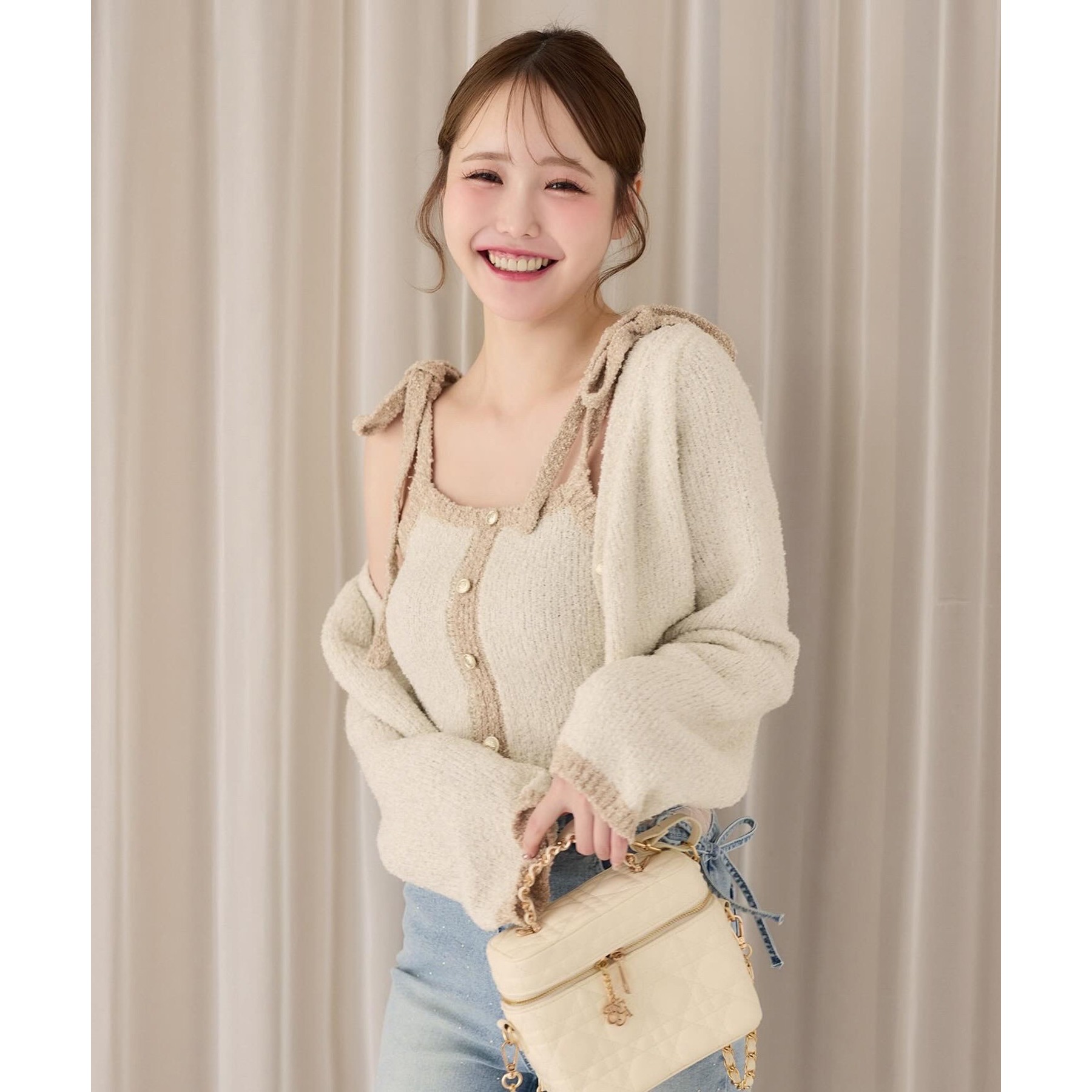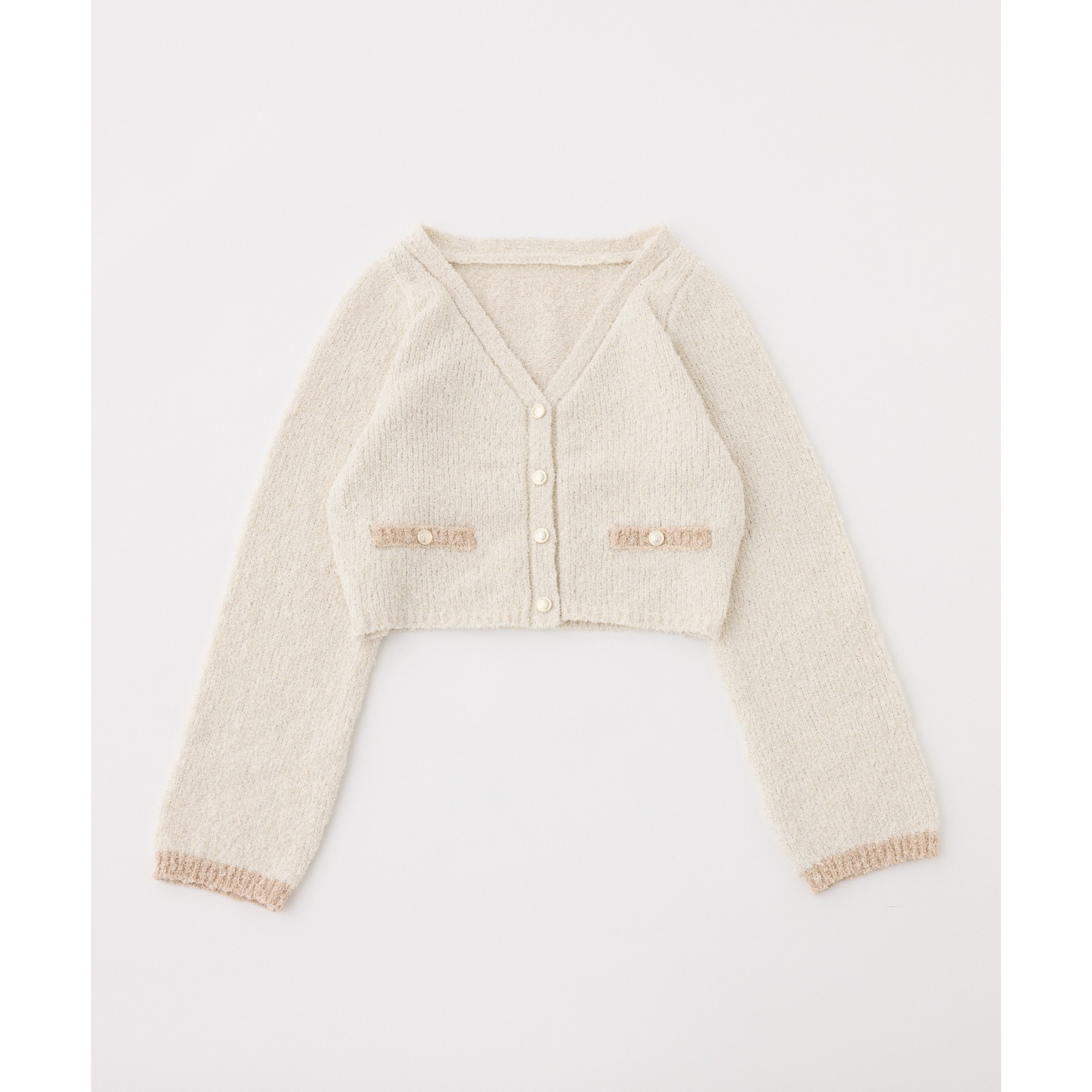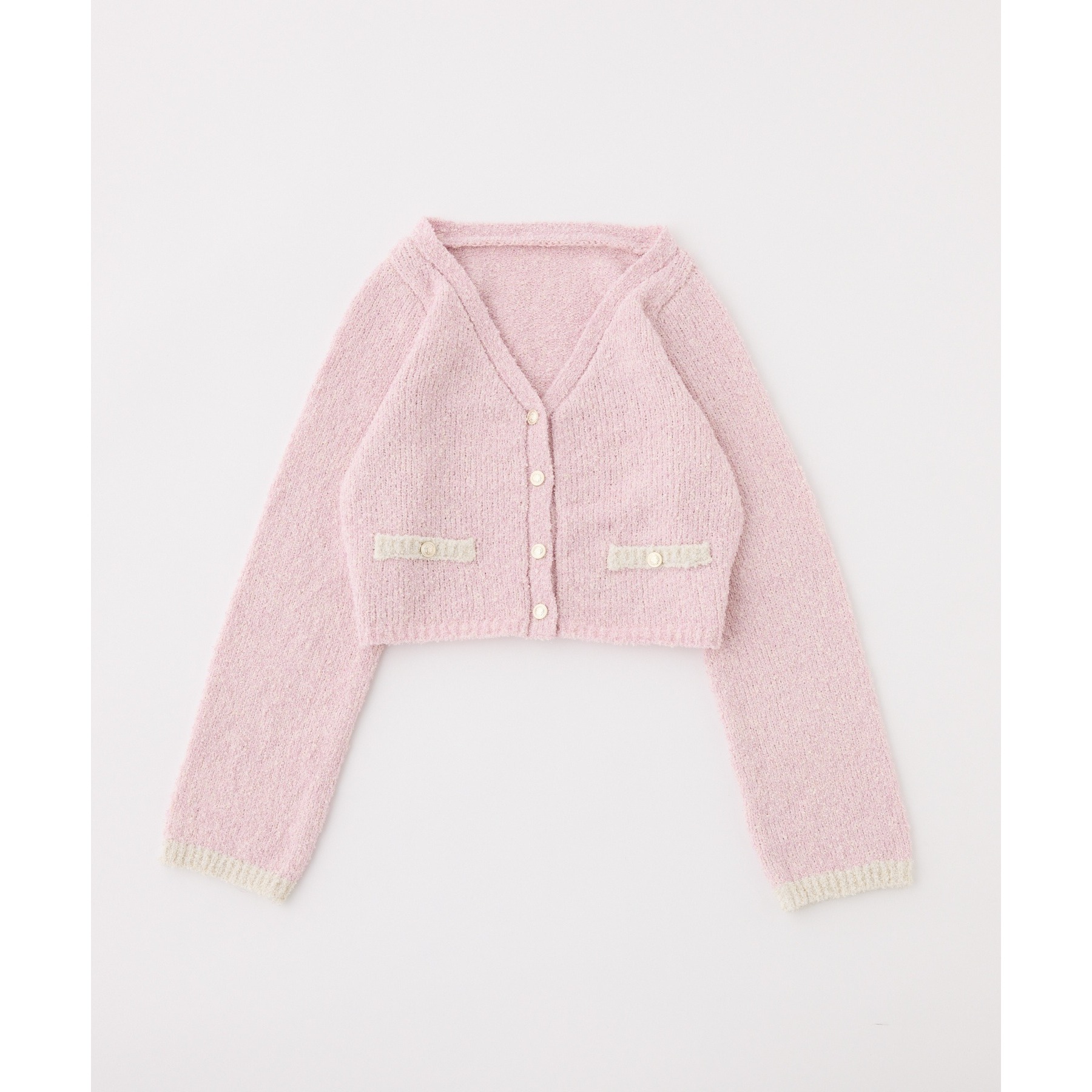 ラメ糸を使用しているため、キラキラとした華やかさが魅力のカーディガン。