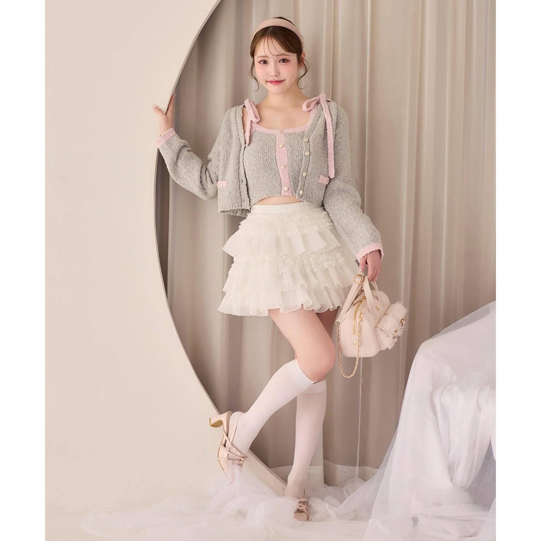 ミニスカートと合わせて、ガーリーな雰囲気に◎