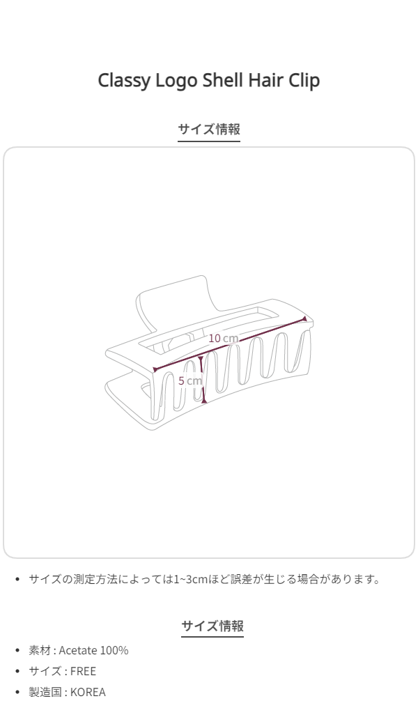柔らかな曲線とシェルモチーフの装飾が特徴の Classy Logo Shell Hair Clip(クラッシー ロゴ シェル ヘアクリップ) です。