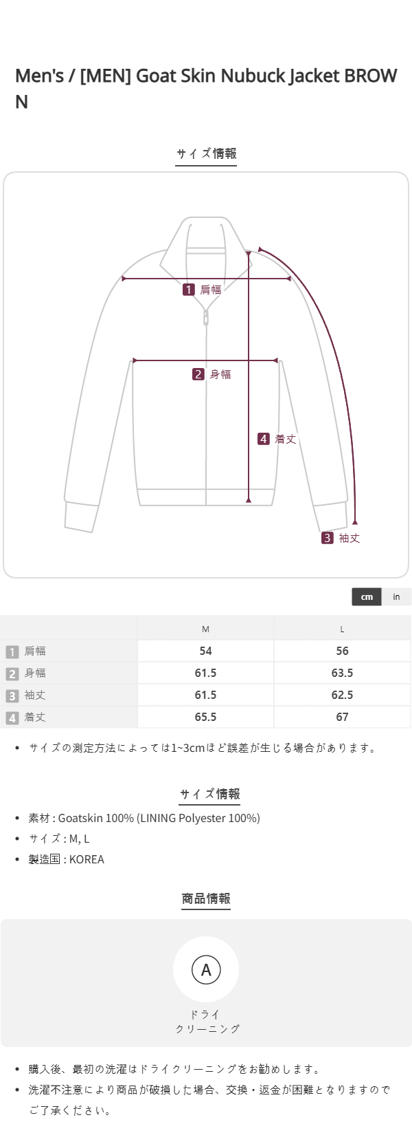 [MEN] Goat Skin Nubuck Jacket BROWN