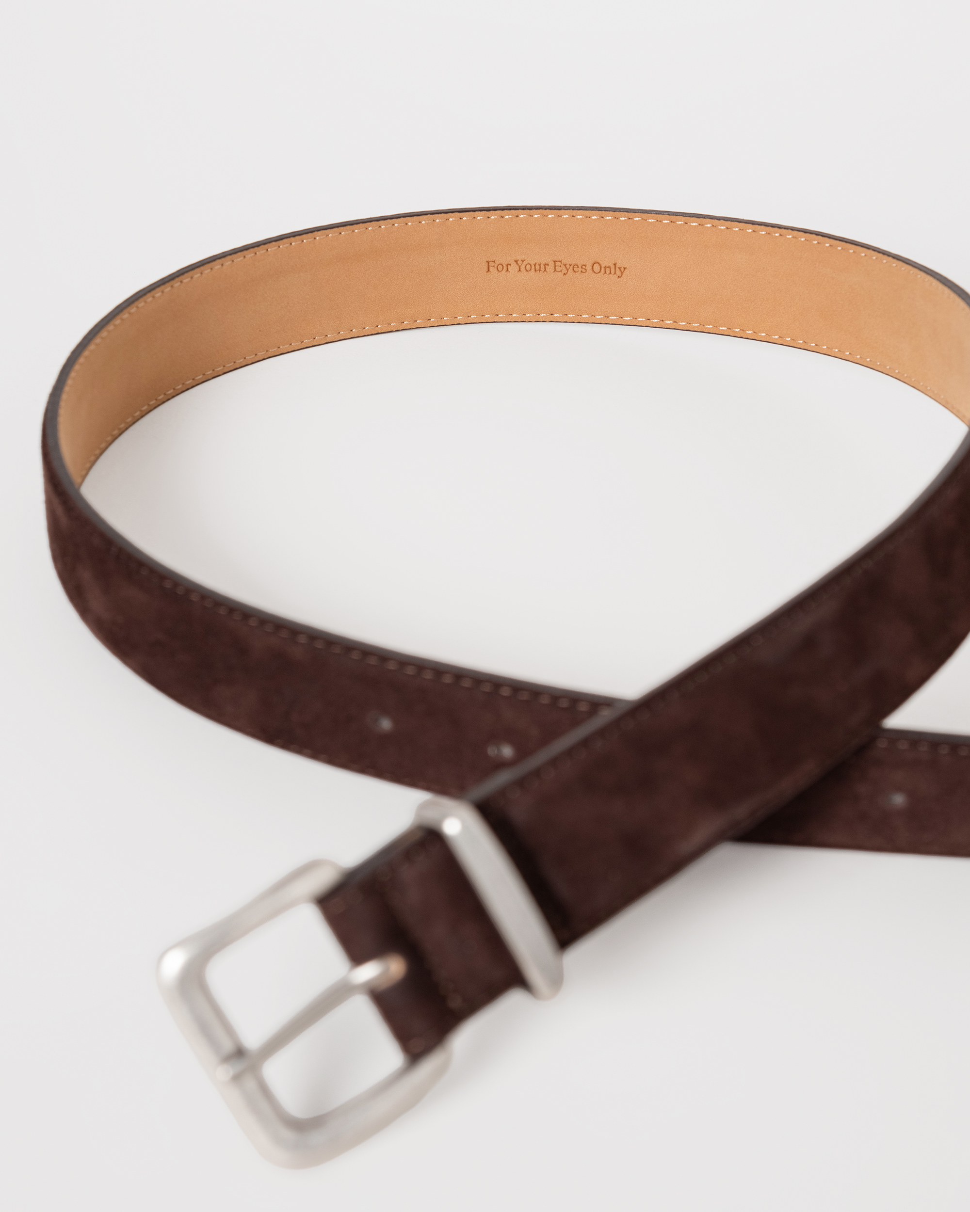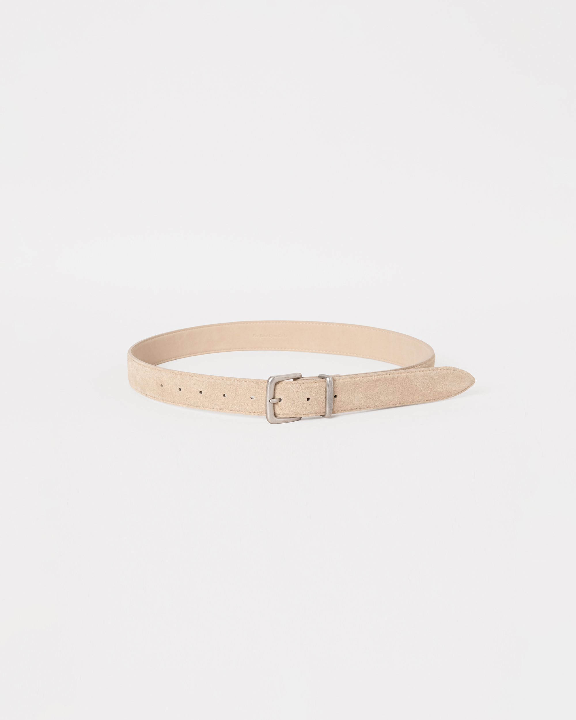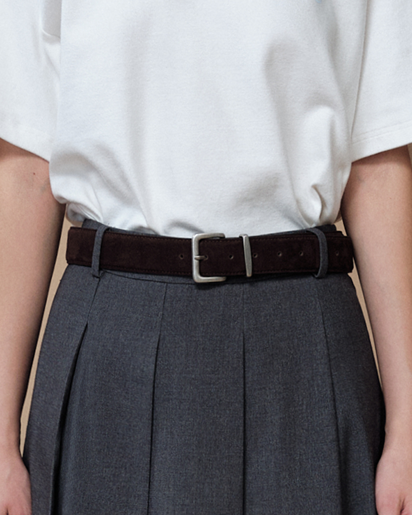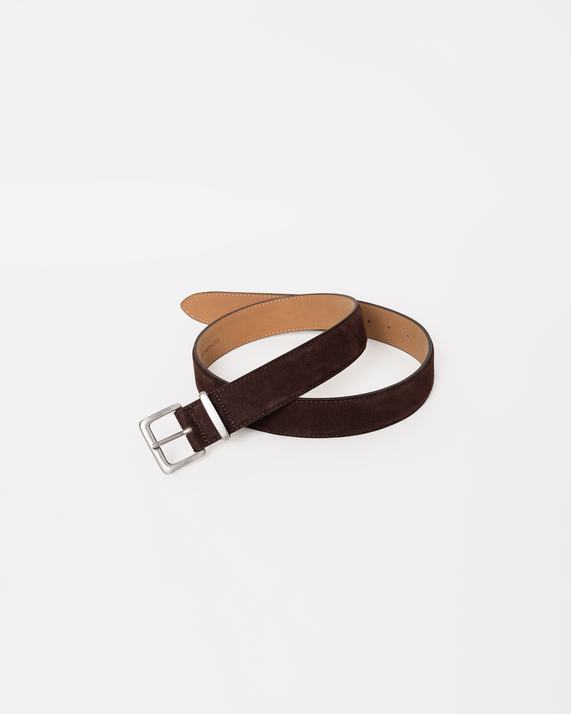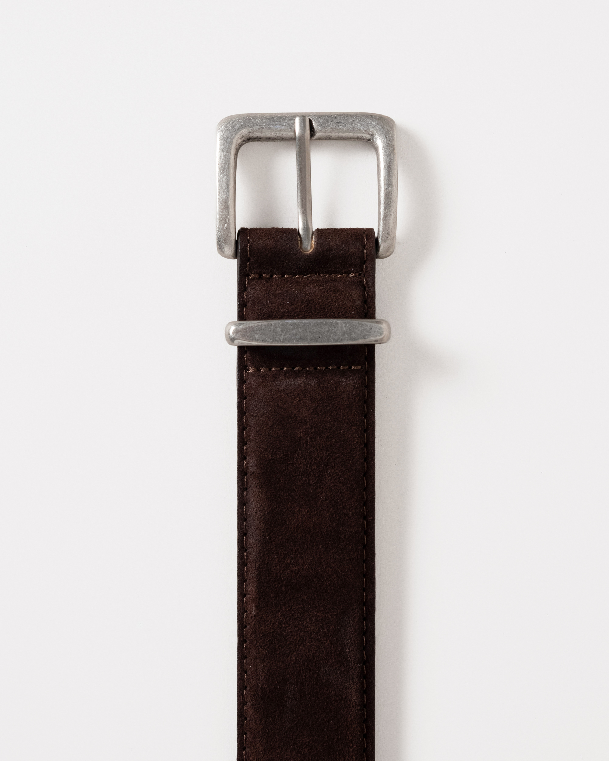 クラシックなスクエアバックルと柔らかなスエードタッチが調和した Vine Leather Belt(バイン レザー ベルト)です。