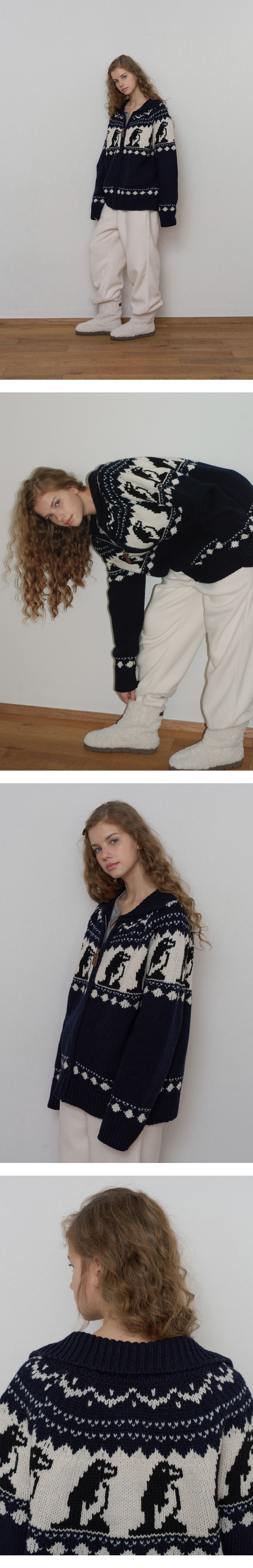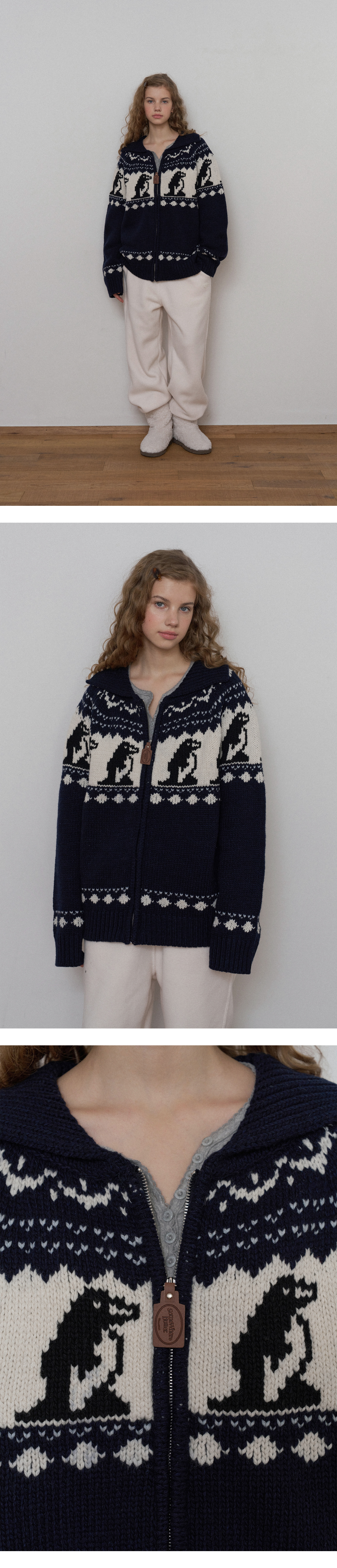 [NAMI x SOMEWHERE BUTTER] Penguin Cowhichan Zip-Up - Navy