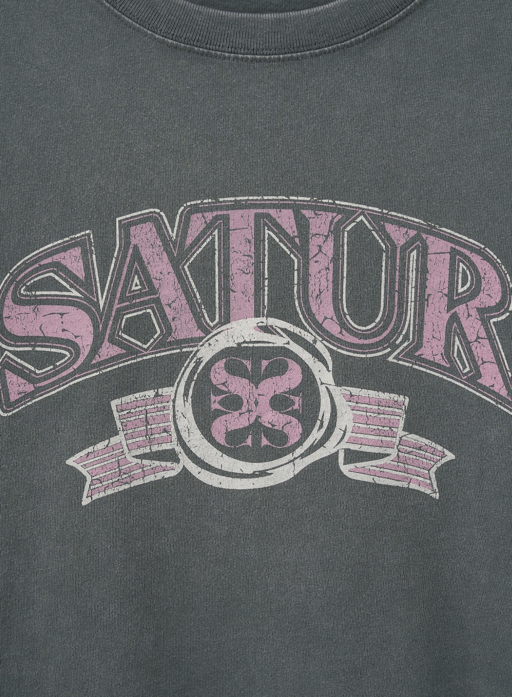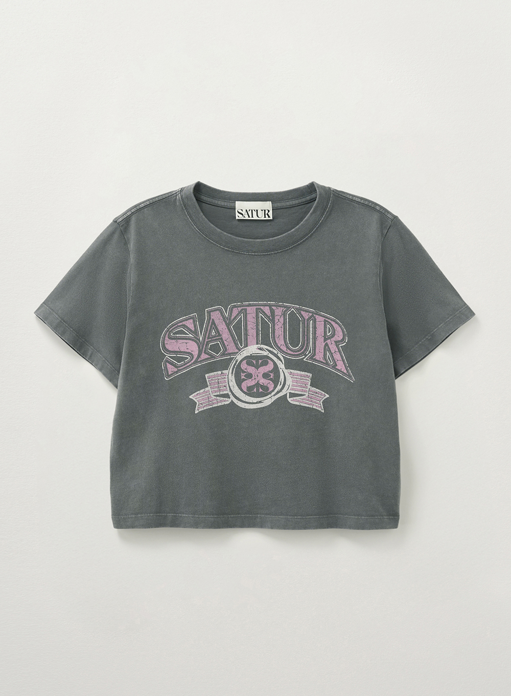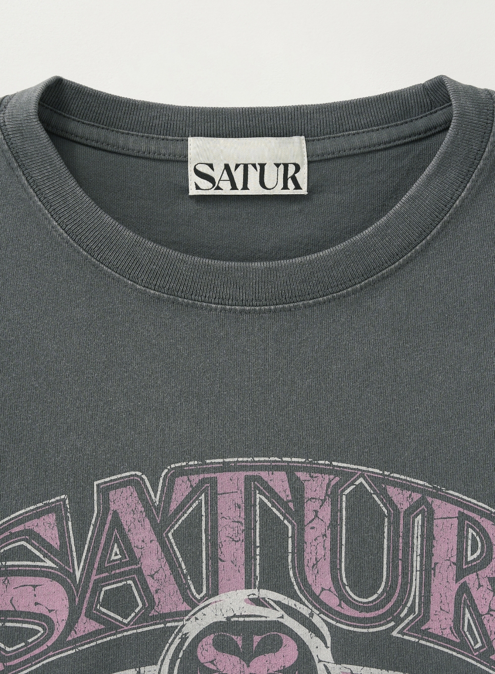 (W) Arch Logo Pigment Washed T-shirt - Charcoal Pink