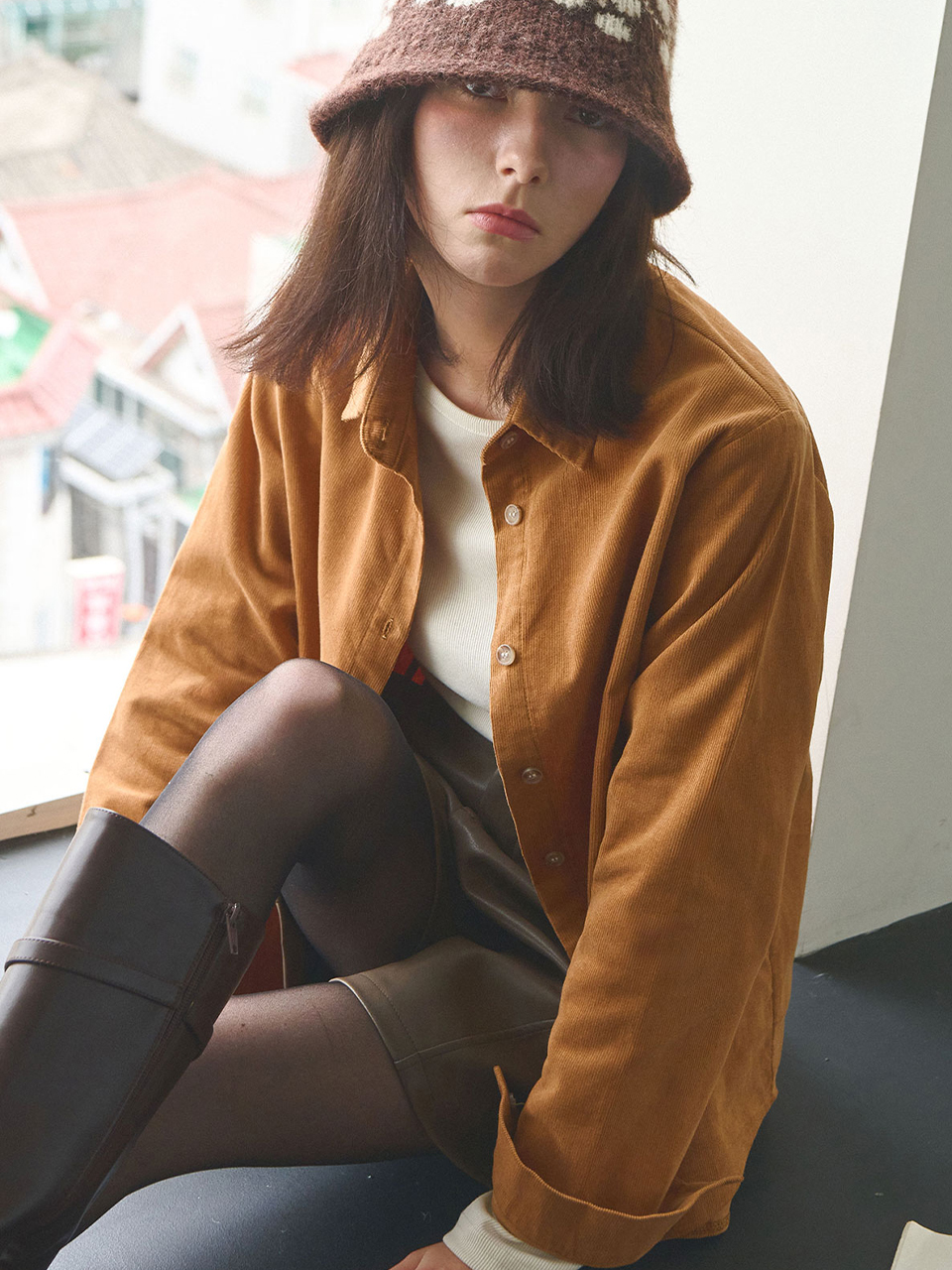 [3th reorder] Flowarm corduroy shirt - Camel