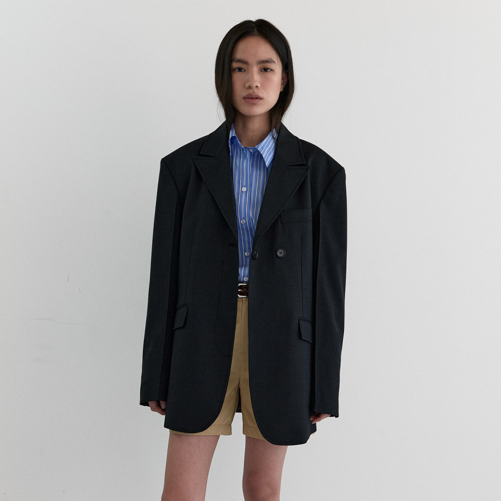 BOYFRIEND DOUBLE BUTTON JACKET_CHARCOAL