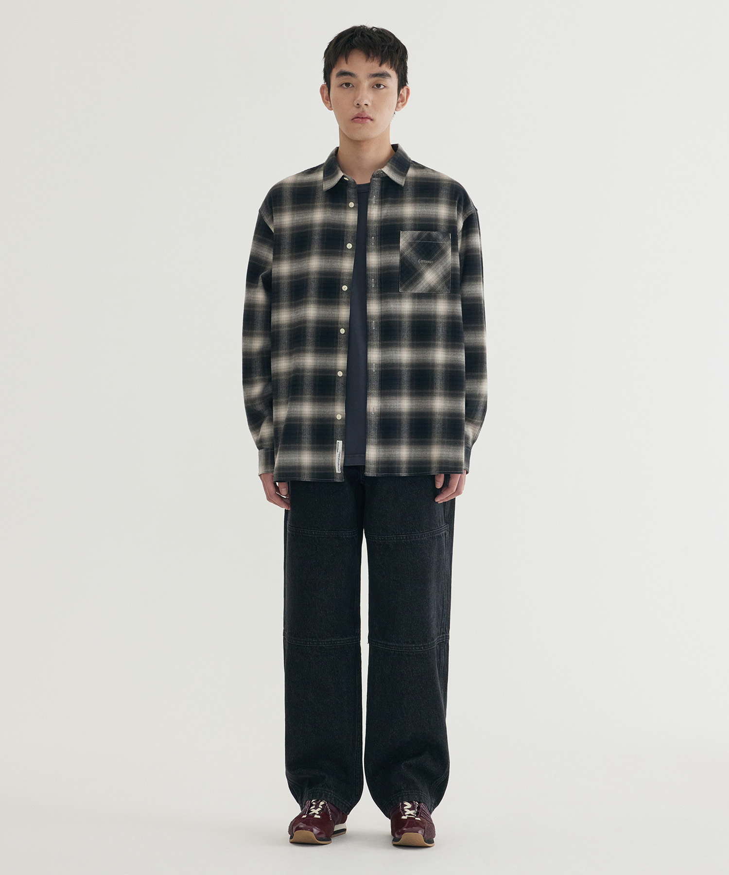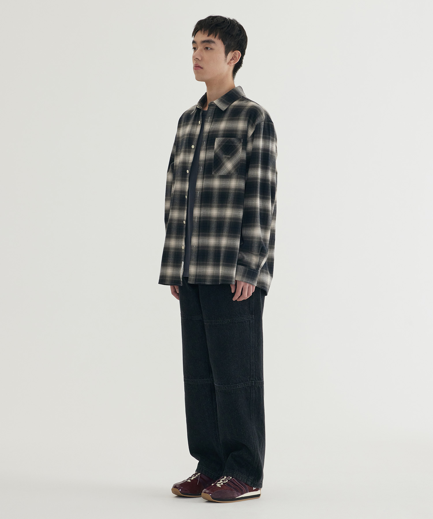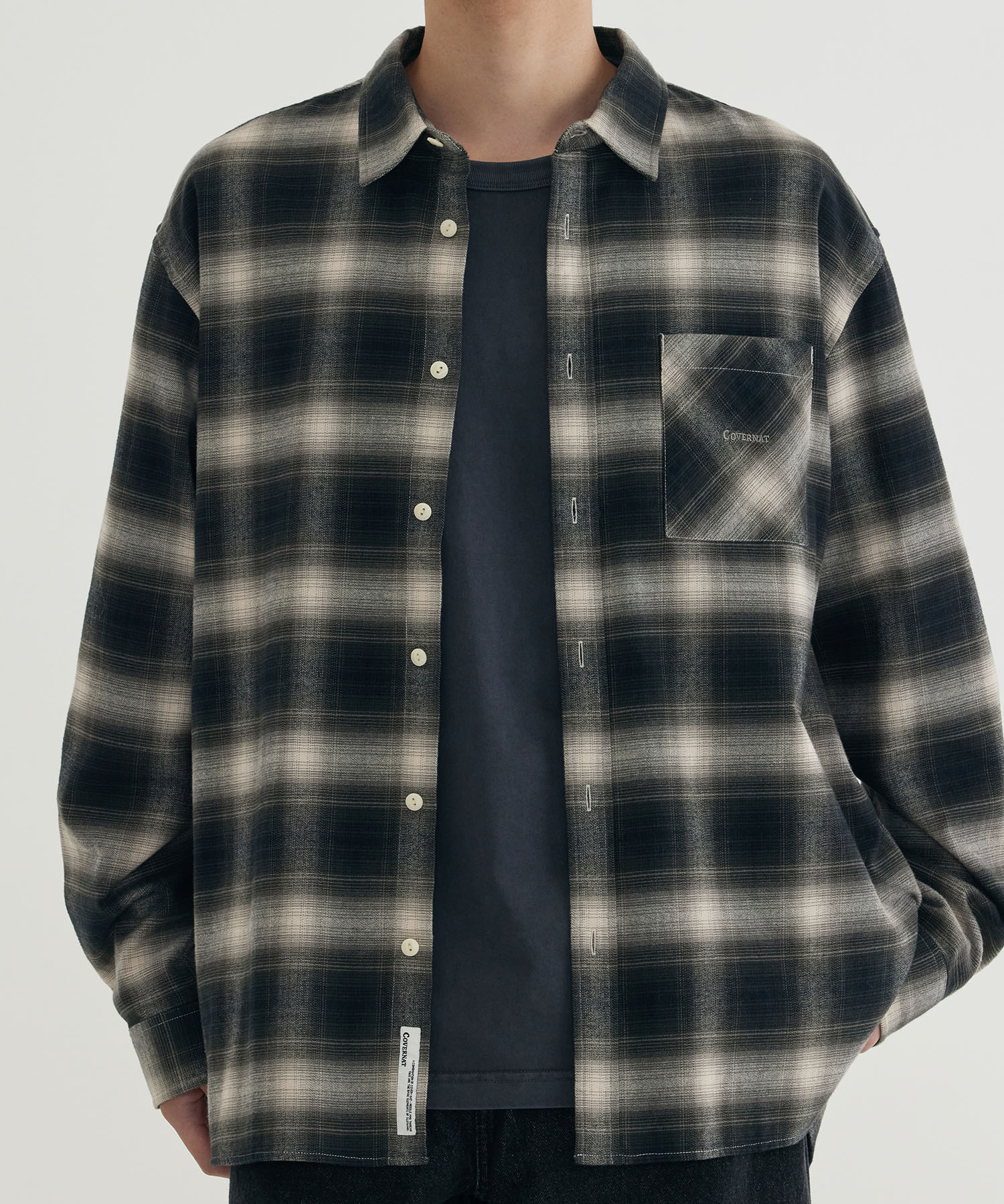 BRUSHED OMBRE CHECK SHIRT - Charcoal