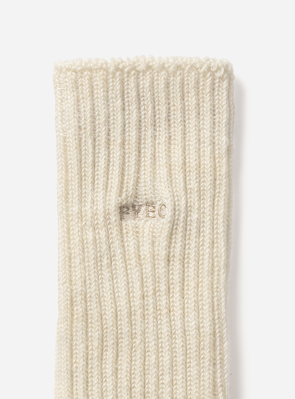 軽くて柔らかなメリノウール混素材を使用し、しなやかな肌触りと高い保温性を実現。
