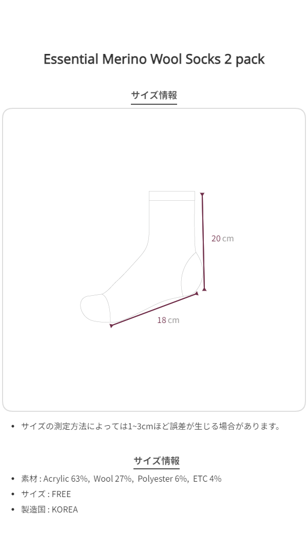 ふんわりとした厚みと温かみのある素材が魅力の Essential Merino Wool Socks(エッセンシャル メリノウール ソックス) です。