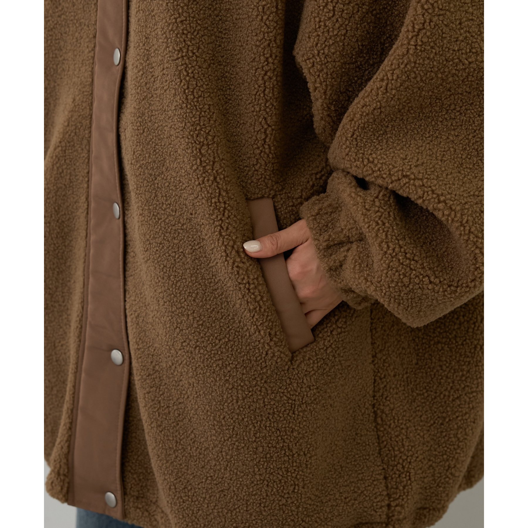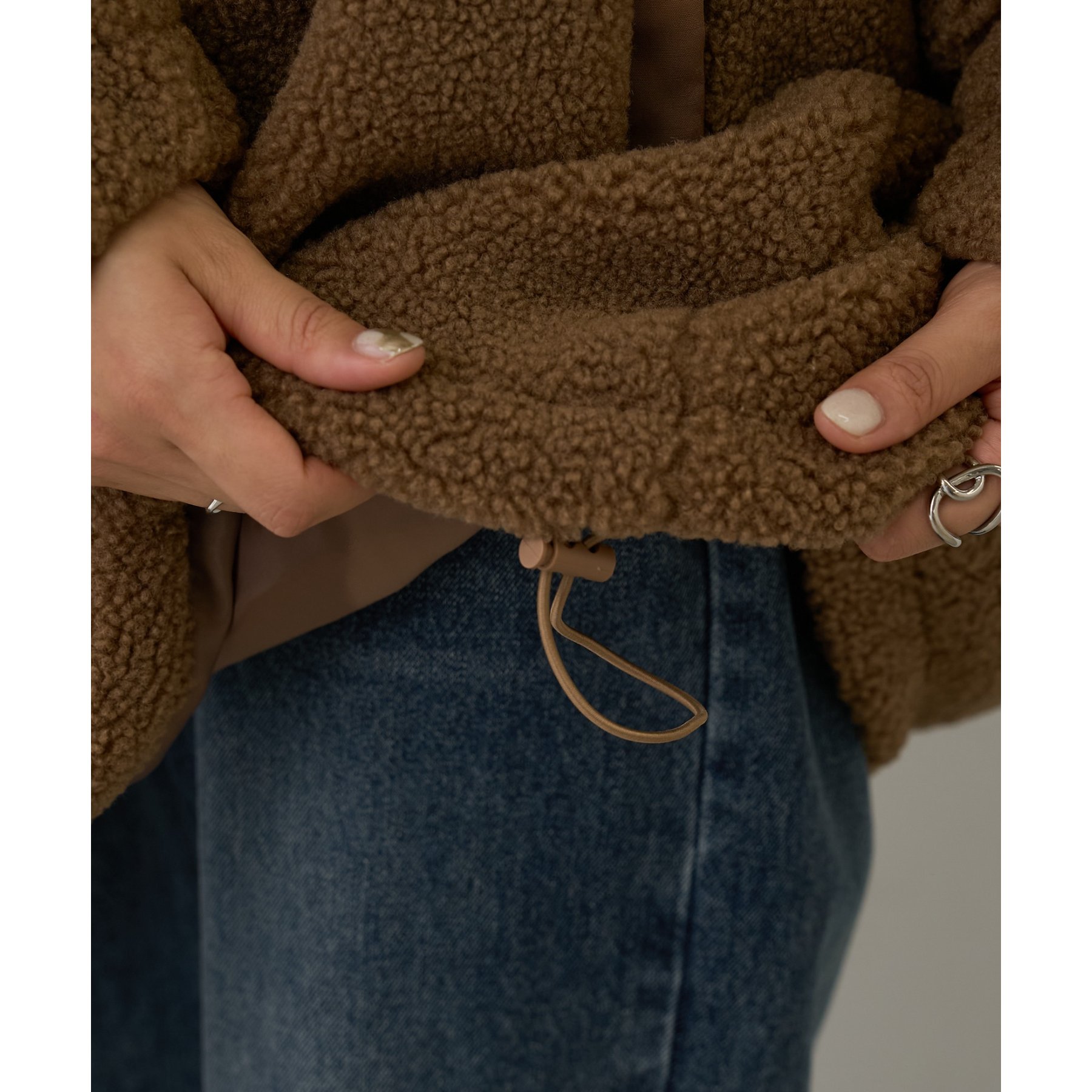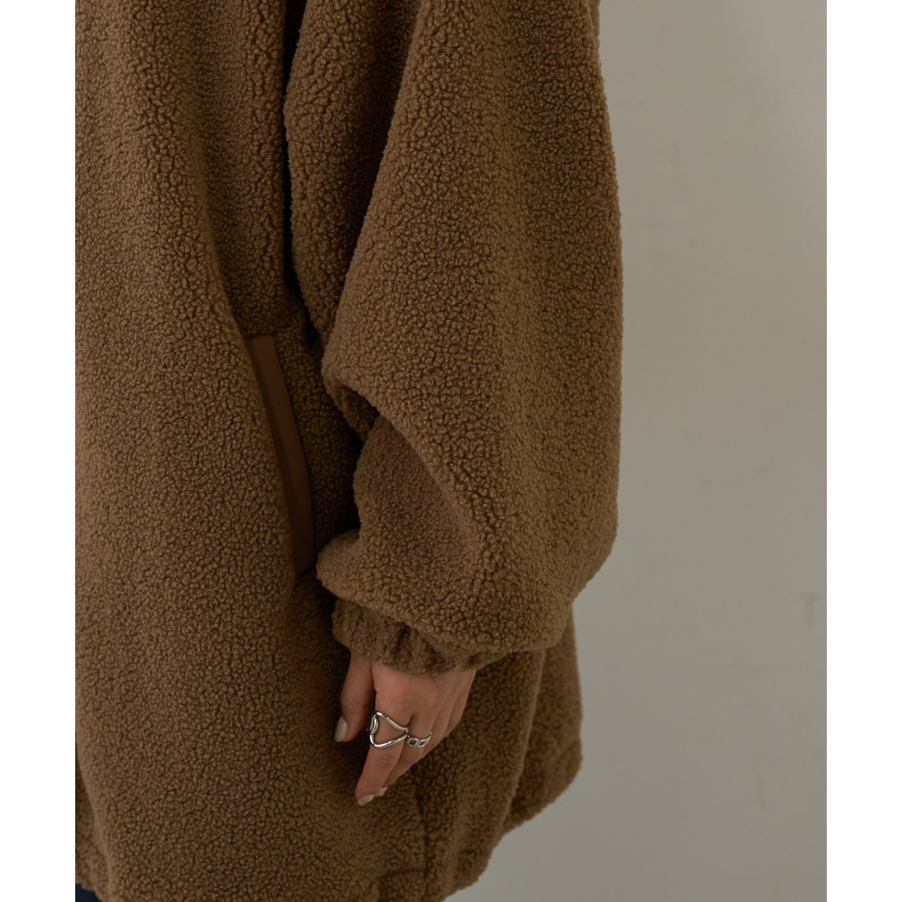 シーズンムードが漂うもこもこボア素材で、見た目も着心地も暖かい印象に◎