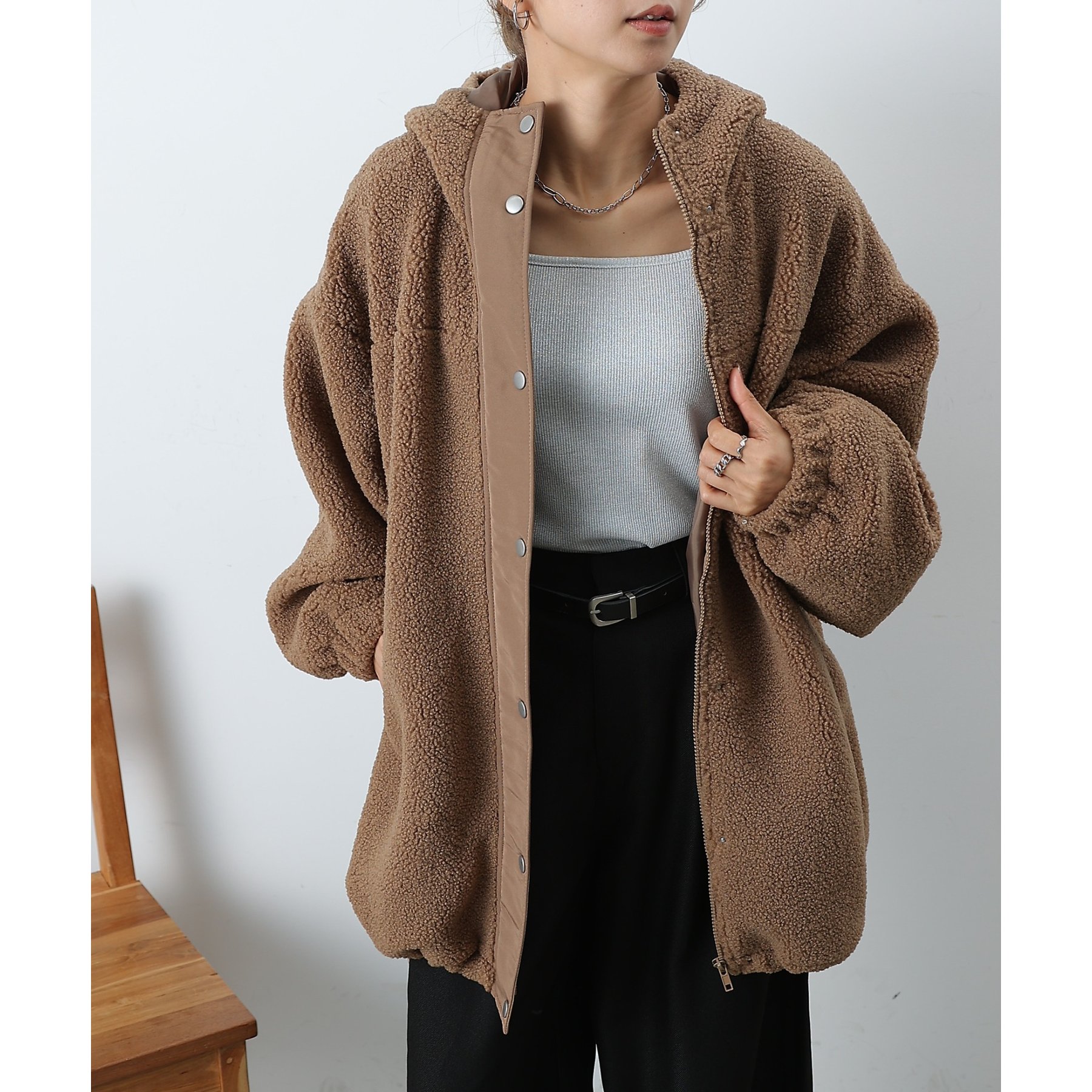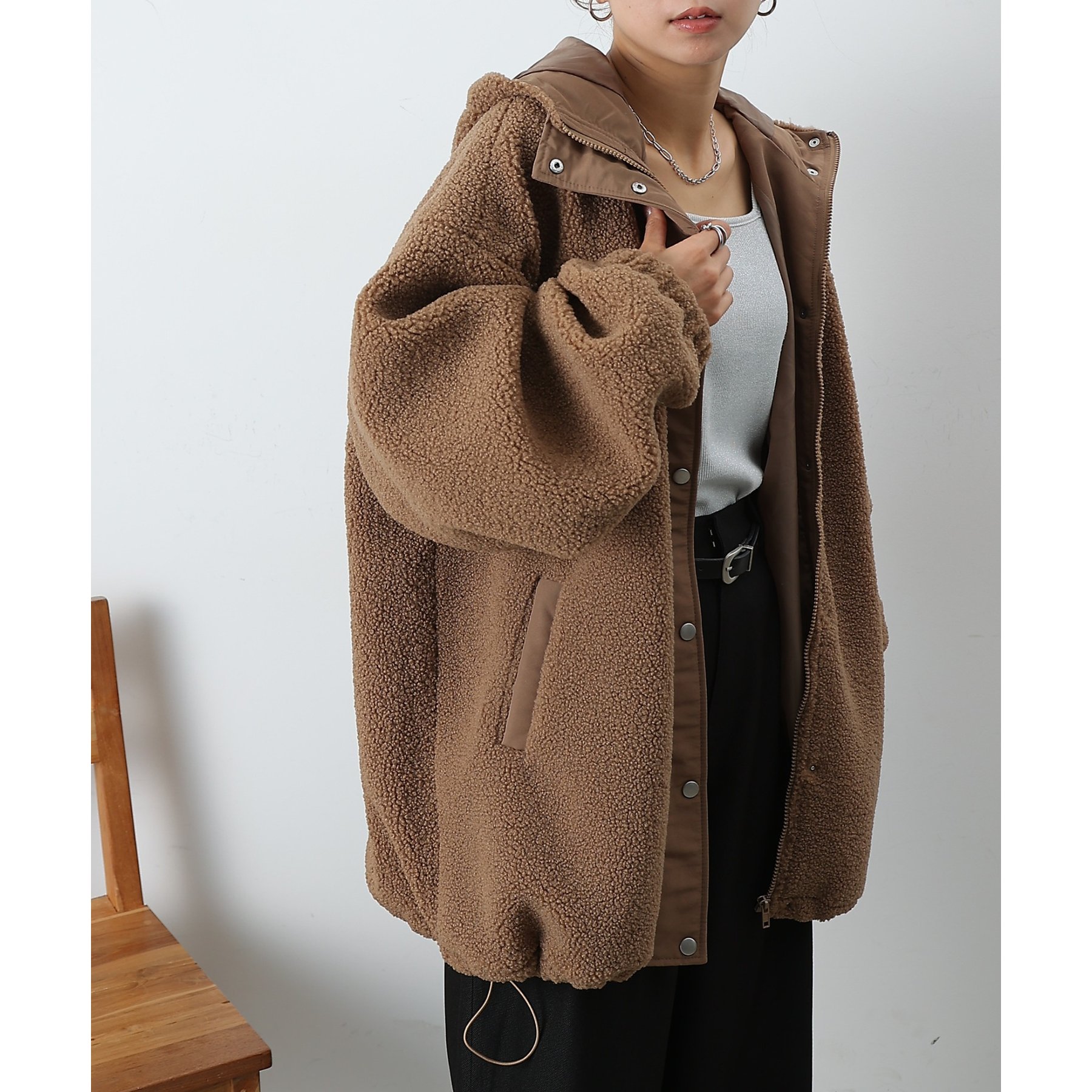 ボアビッグシルエットフードブルゾン
