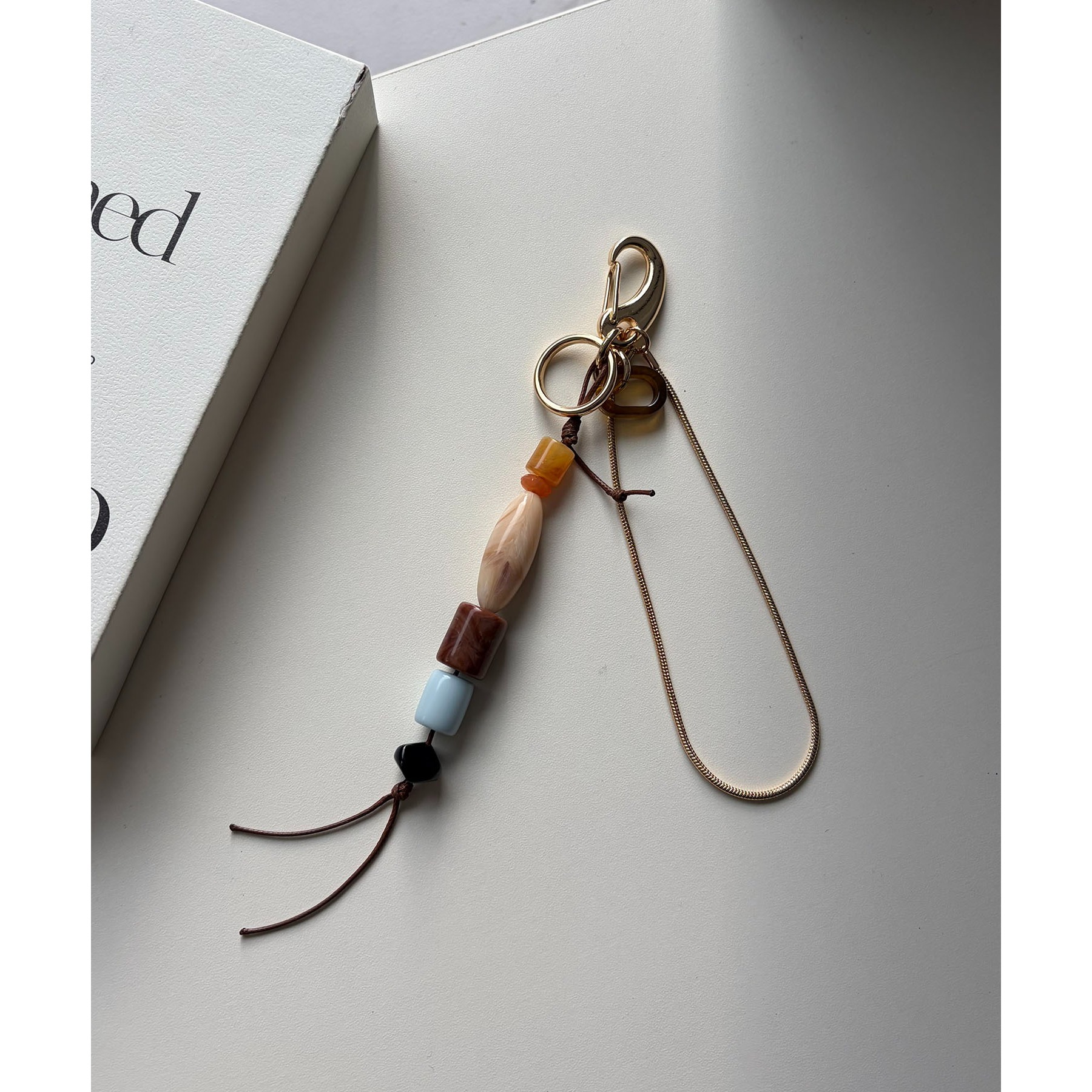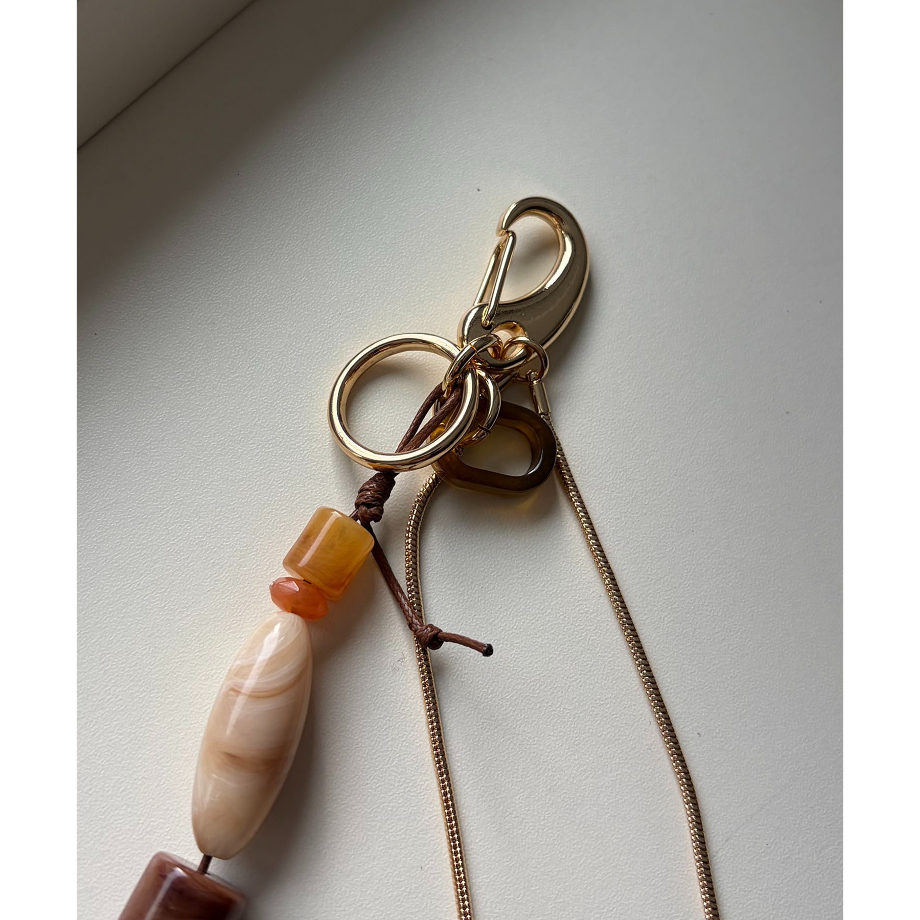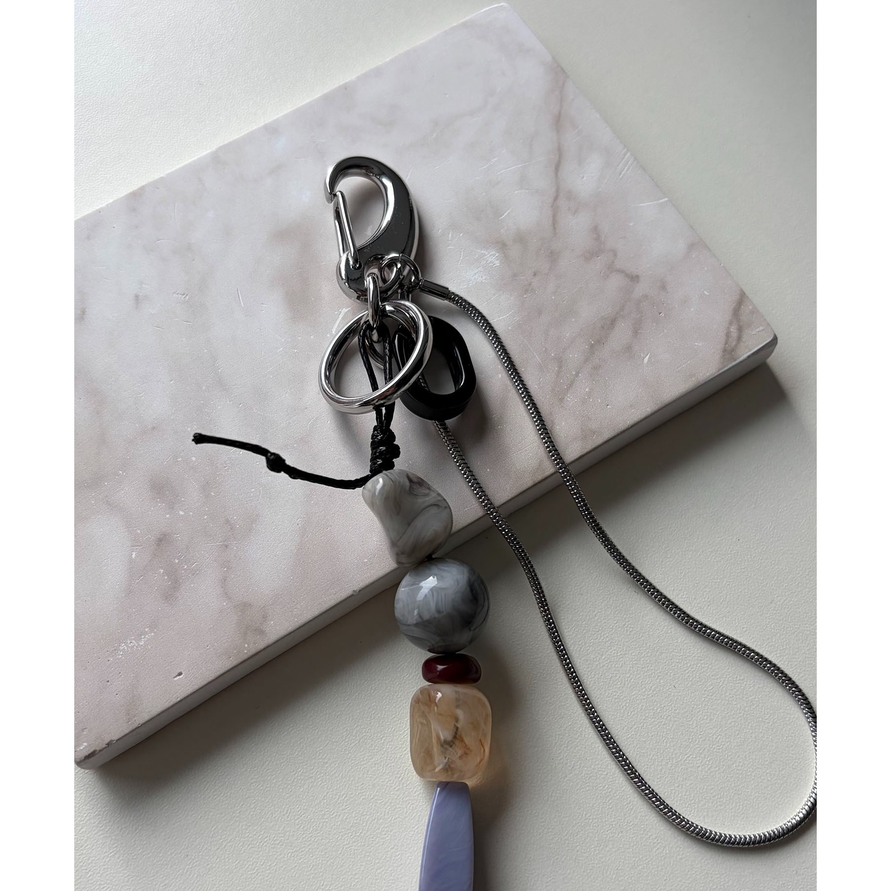 様々なストーンとメタルチェーンを組み合わせたチャーム。