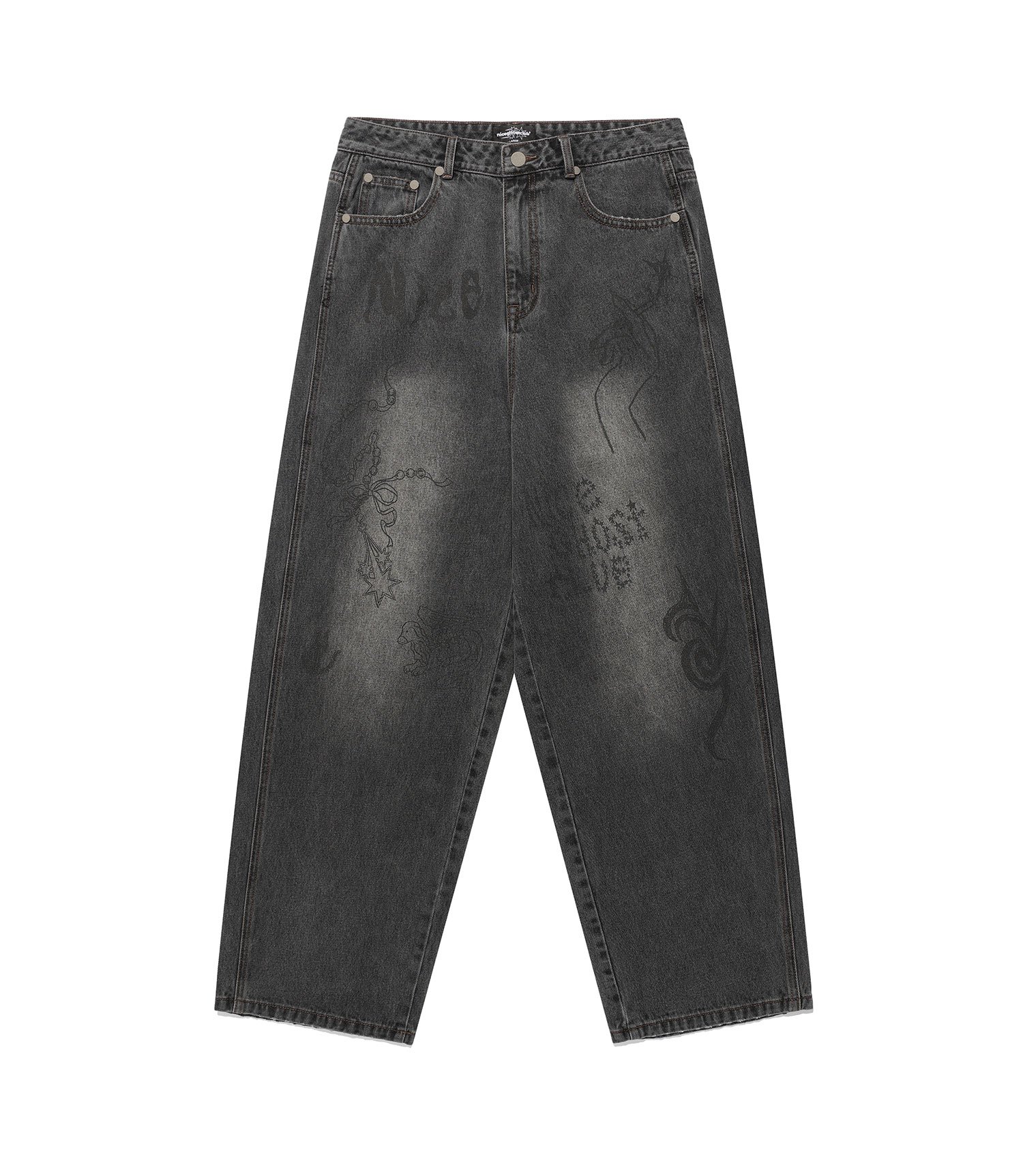 doodle graphic wide jeans[grey]