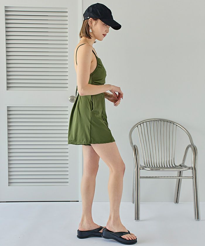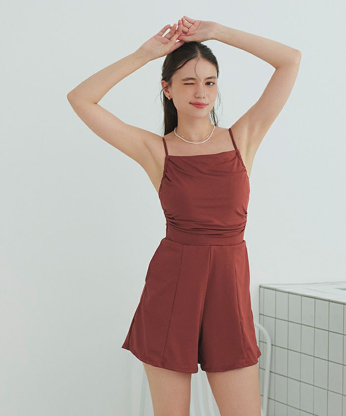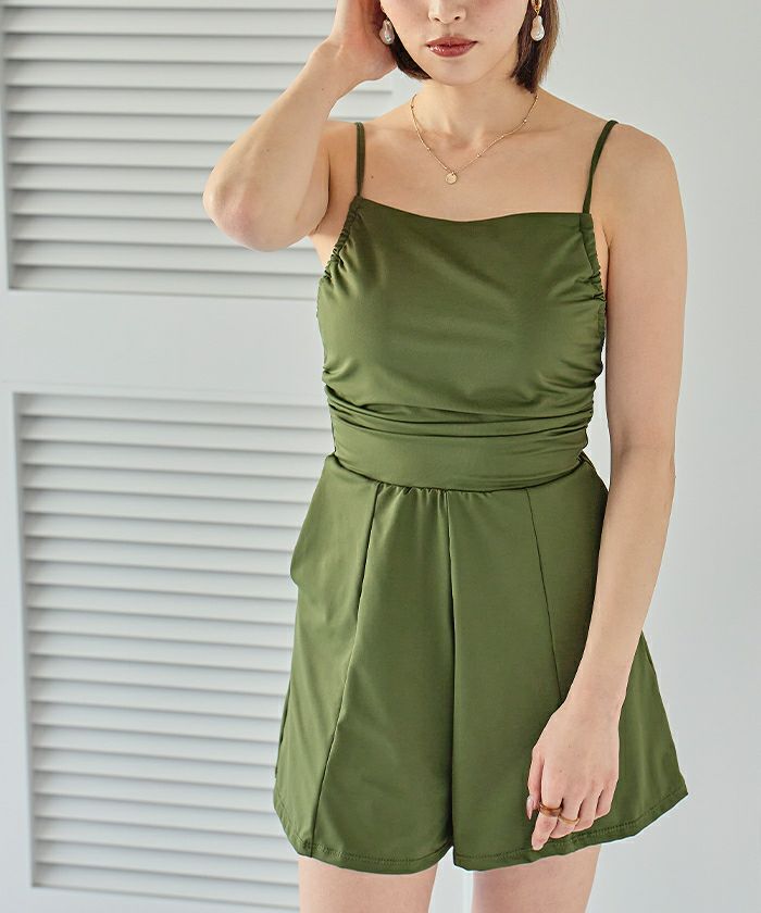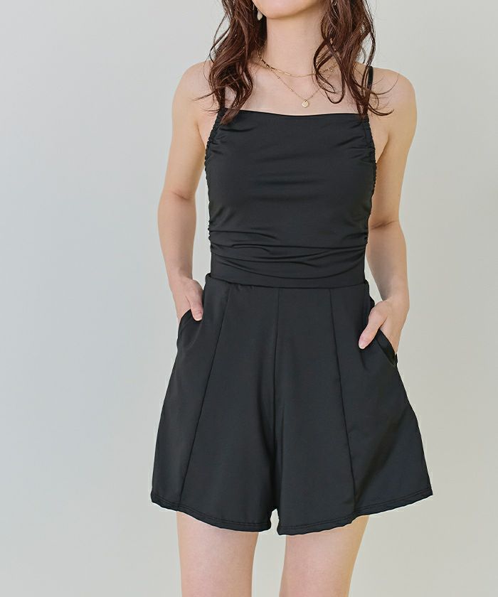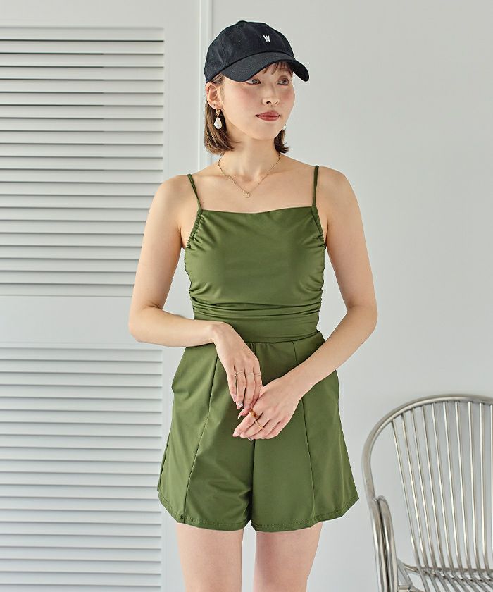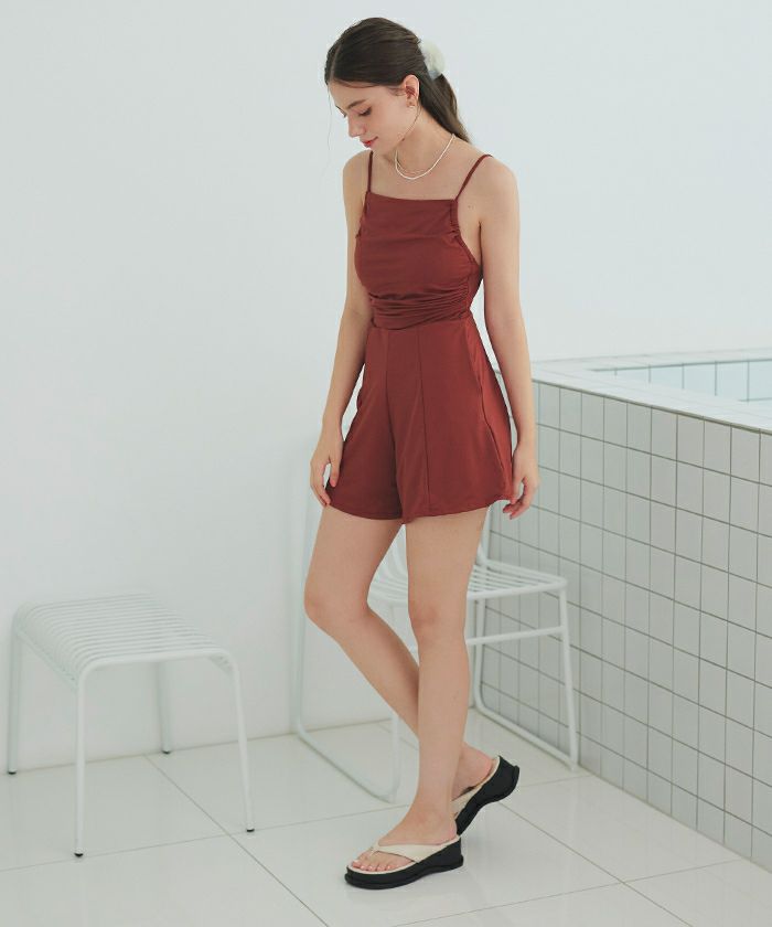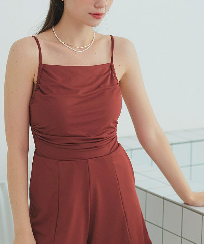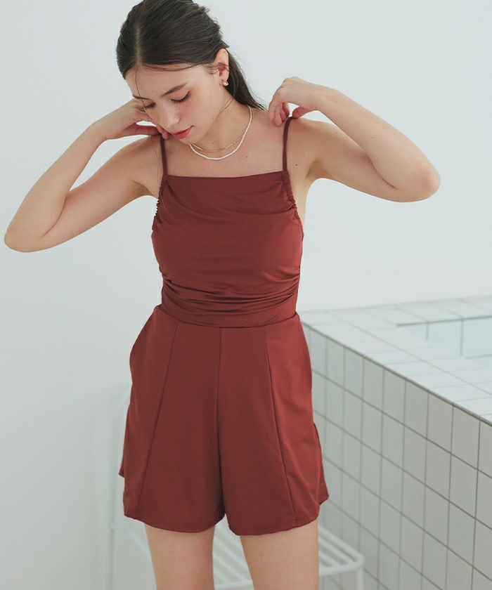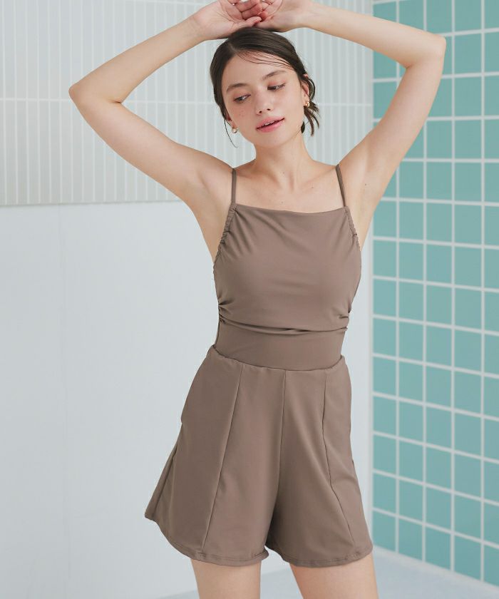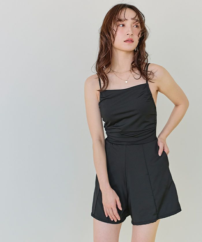 サイドギャザーオールインワン/ワンピース水着