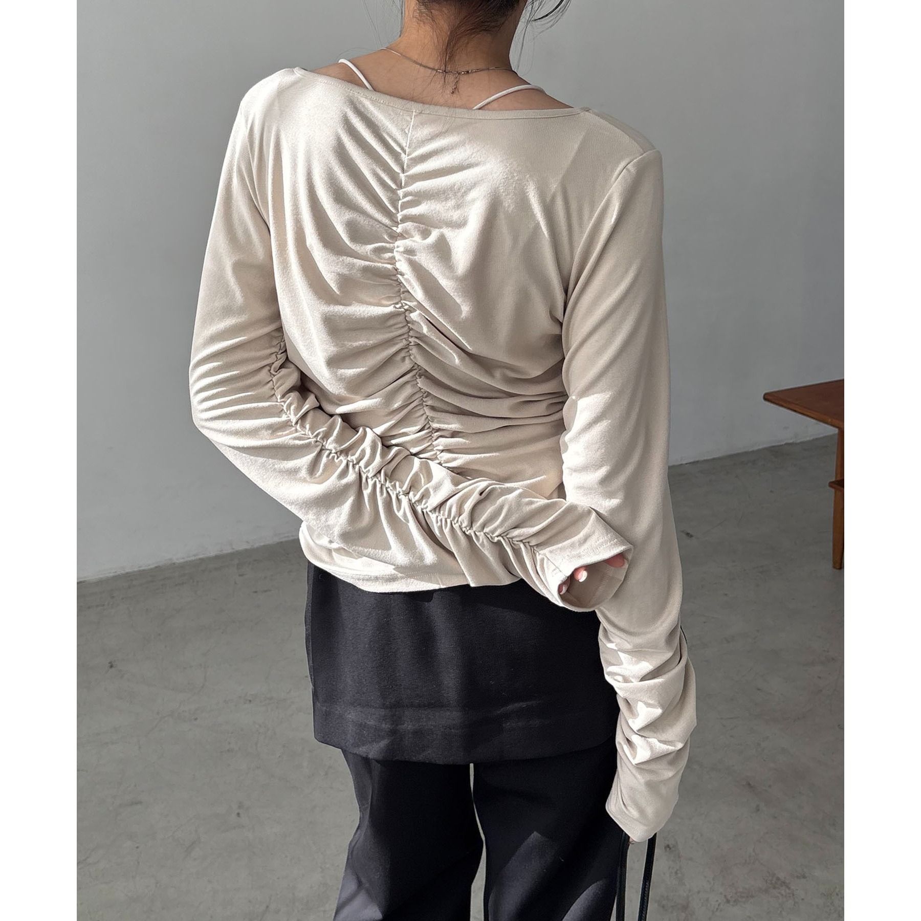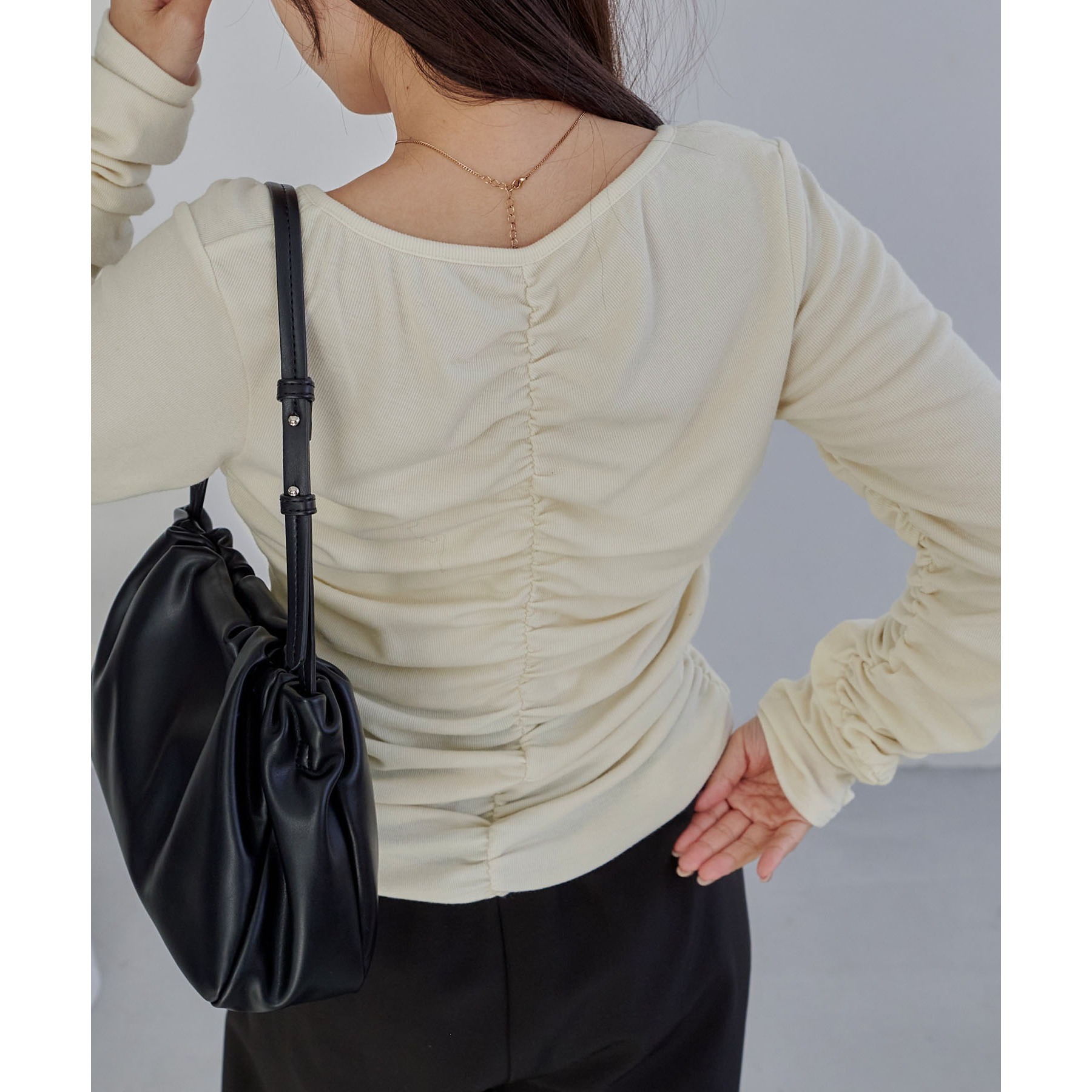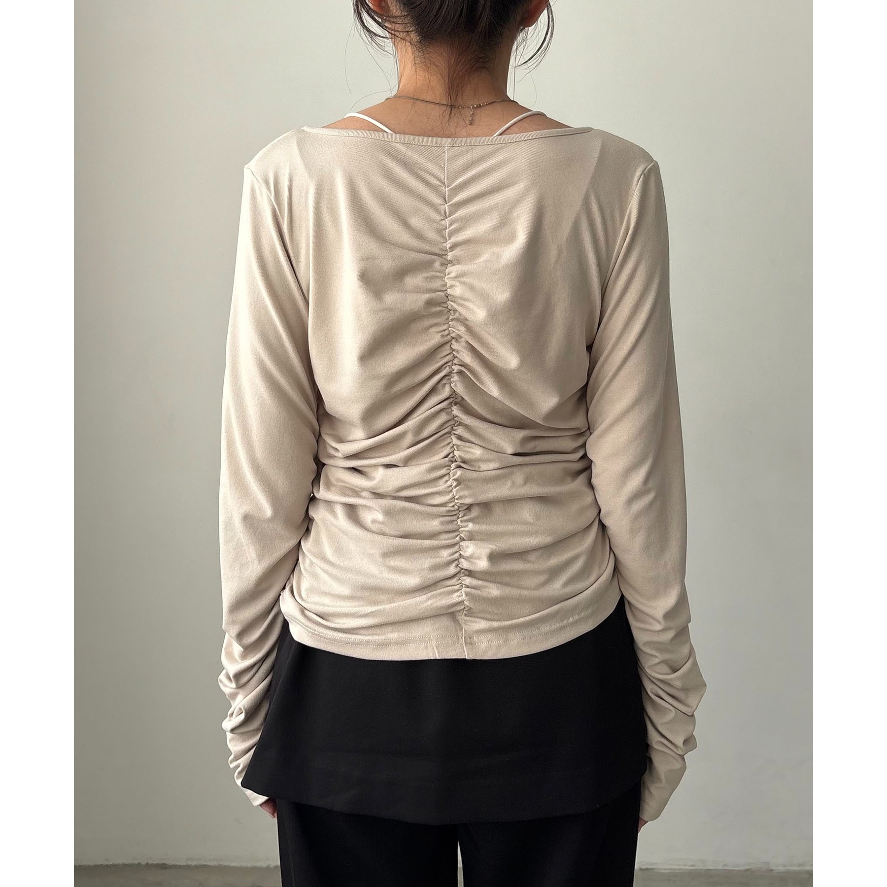 ・背中にもギャザーがあることでボディラインを拾いにくい