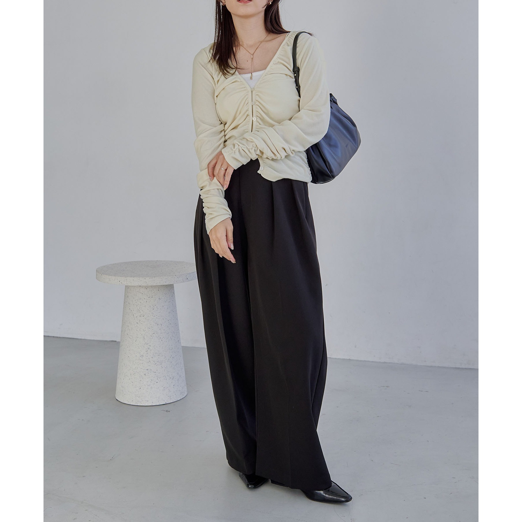・ワイドパンツでメリハリのあるスタイリングに