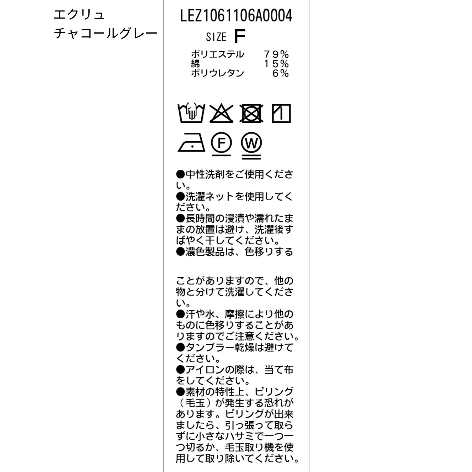 【チャコールグレー・エクリュ】ポリエステル79% 綿15% ポリウレタン6%