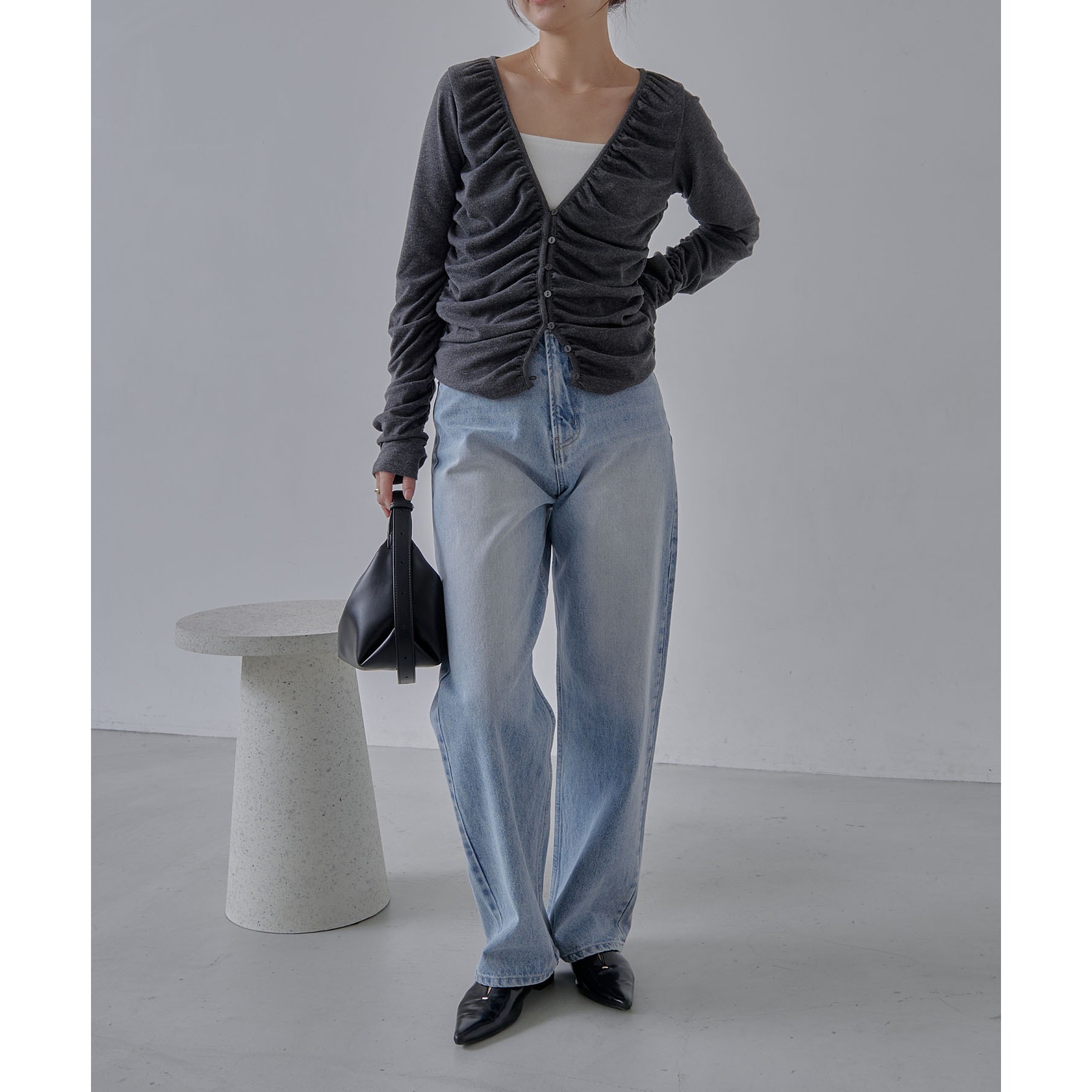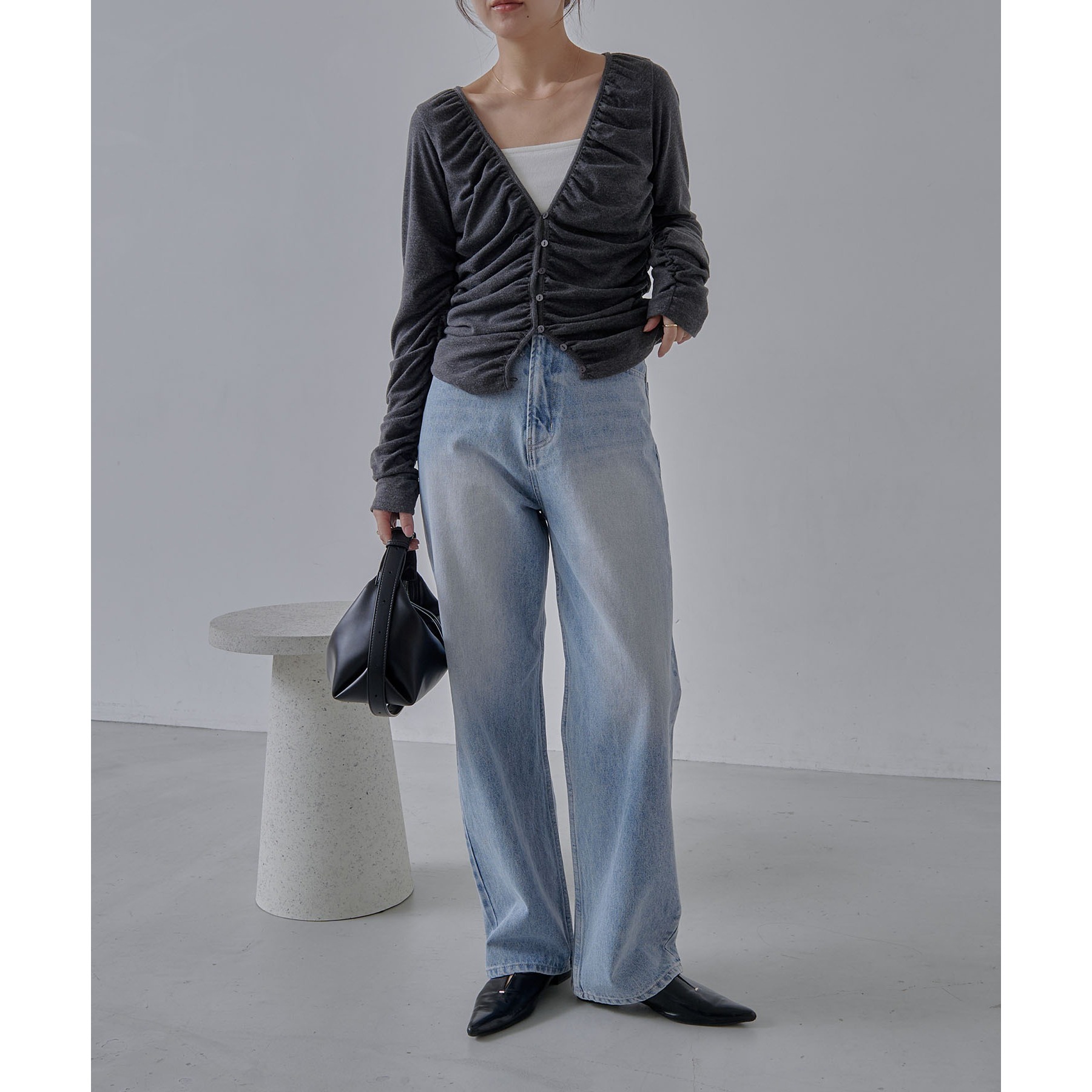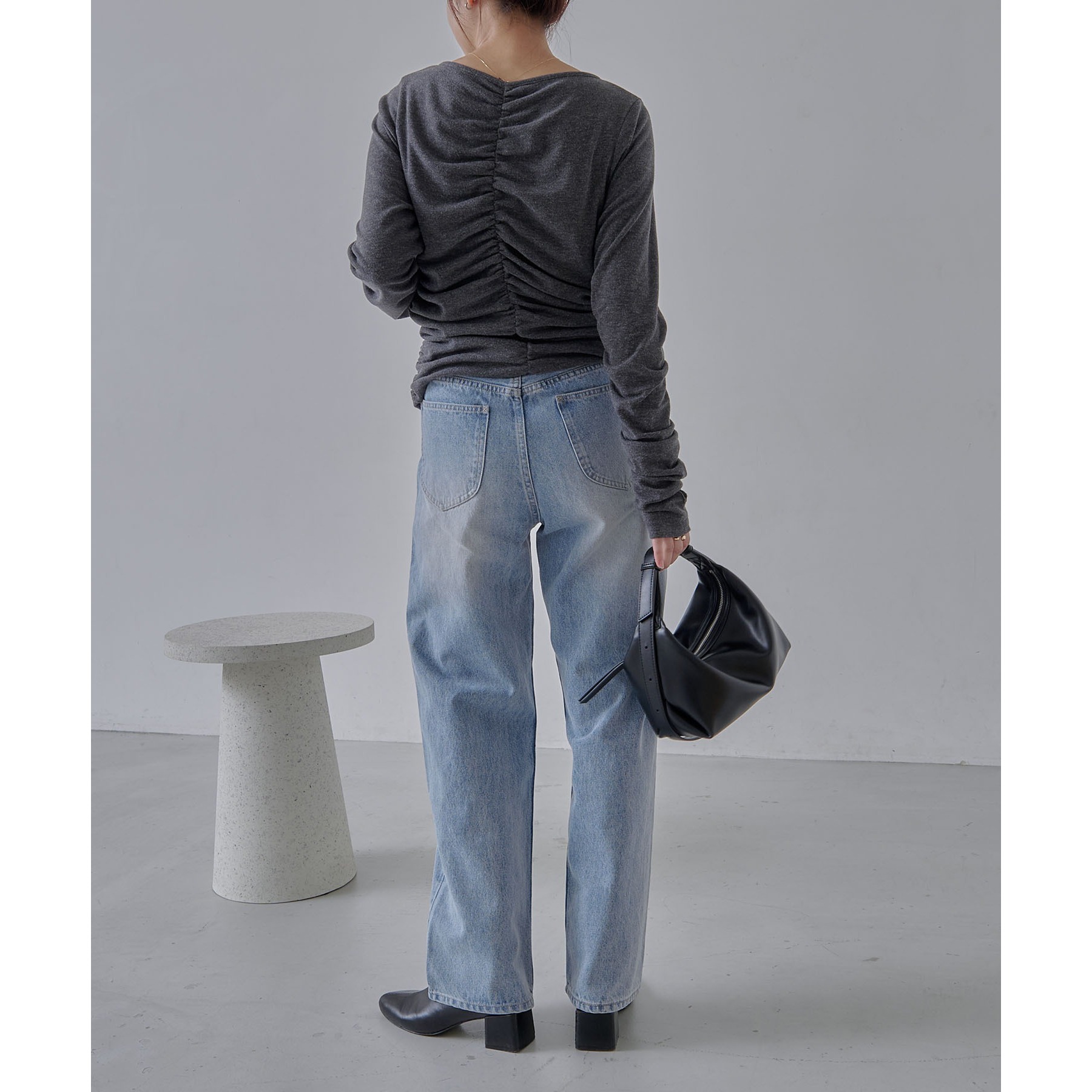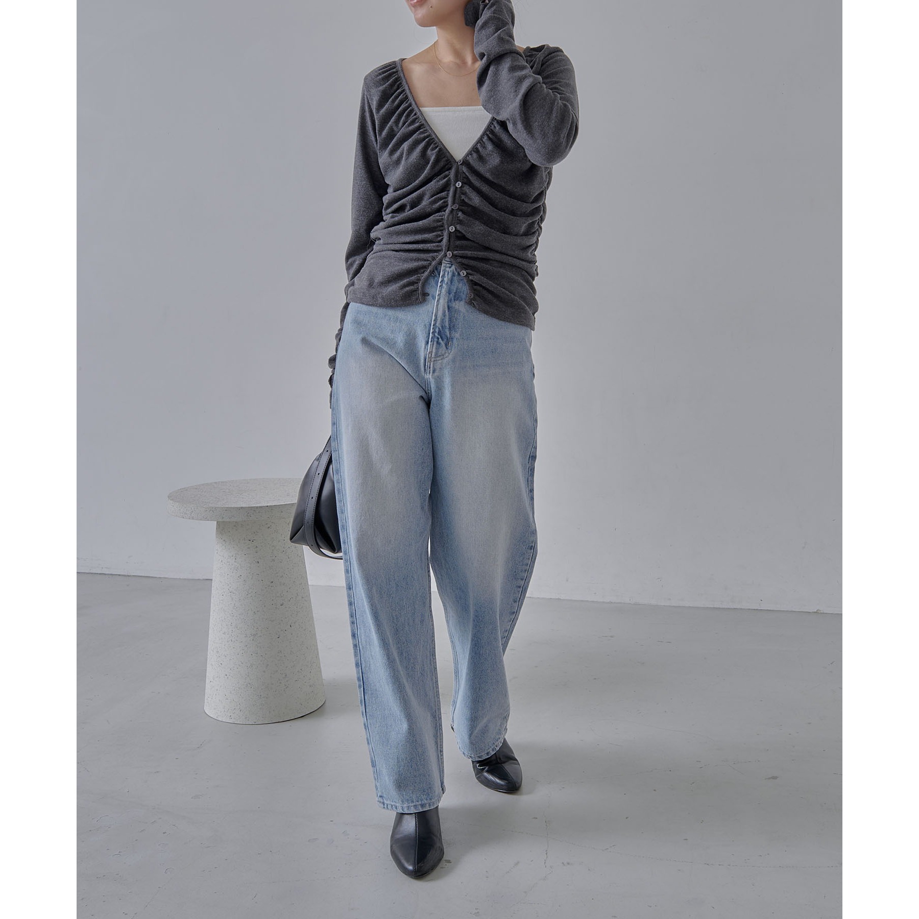 【チャコールグレー着用アイテム】13ozハイウエストストレートデニム