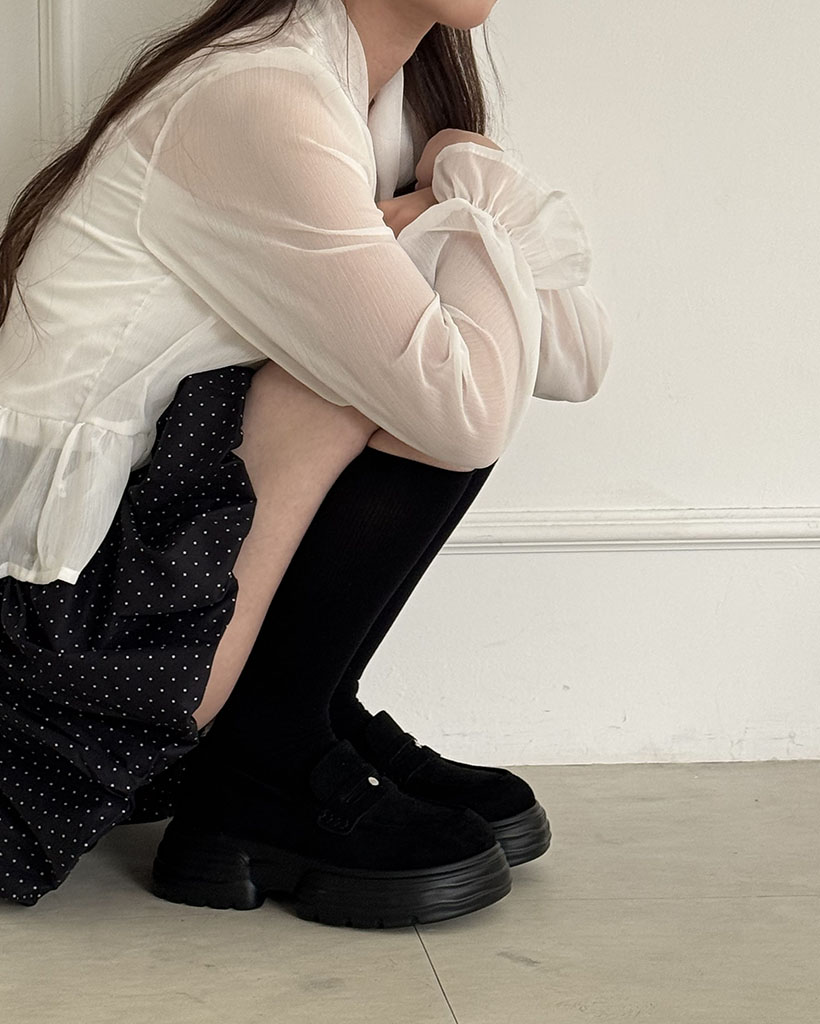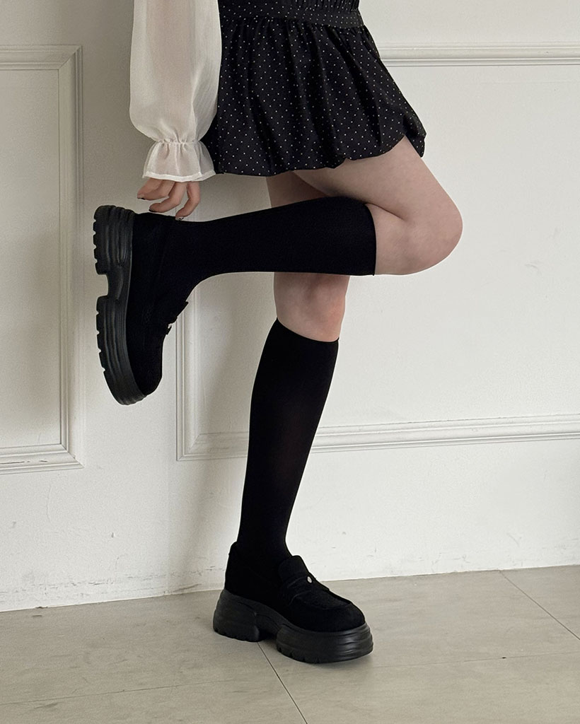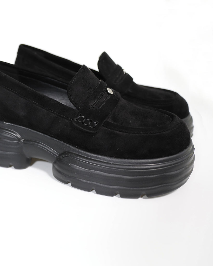 【3色展開】ロゴポイント厚底ペニーローファースニーカー/2026 SS FLATFORM COLLECTION/blackSuede