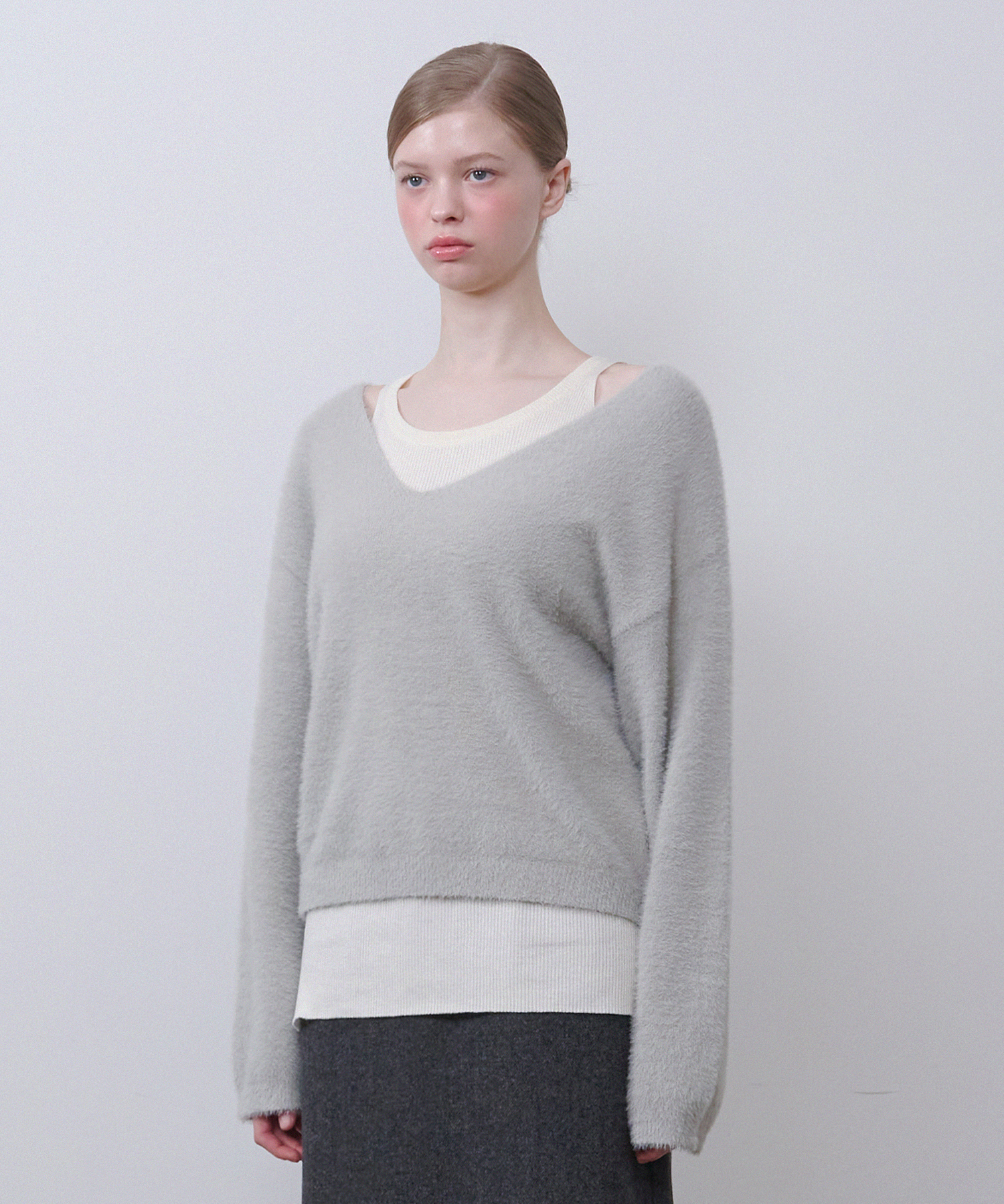 Belita Hairy Knit-Wool Sleeveless Setup