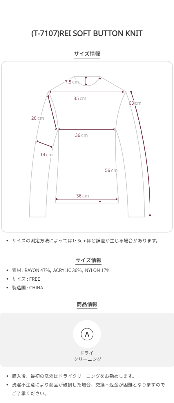 (T-7107)REI SOFT BUTTON KNIT