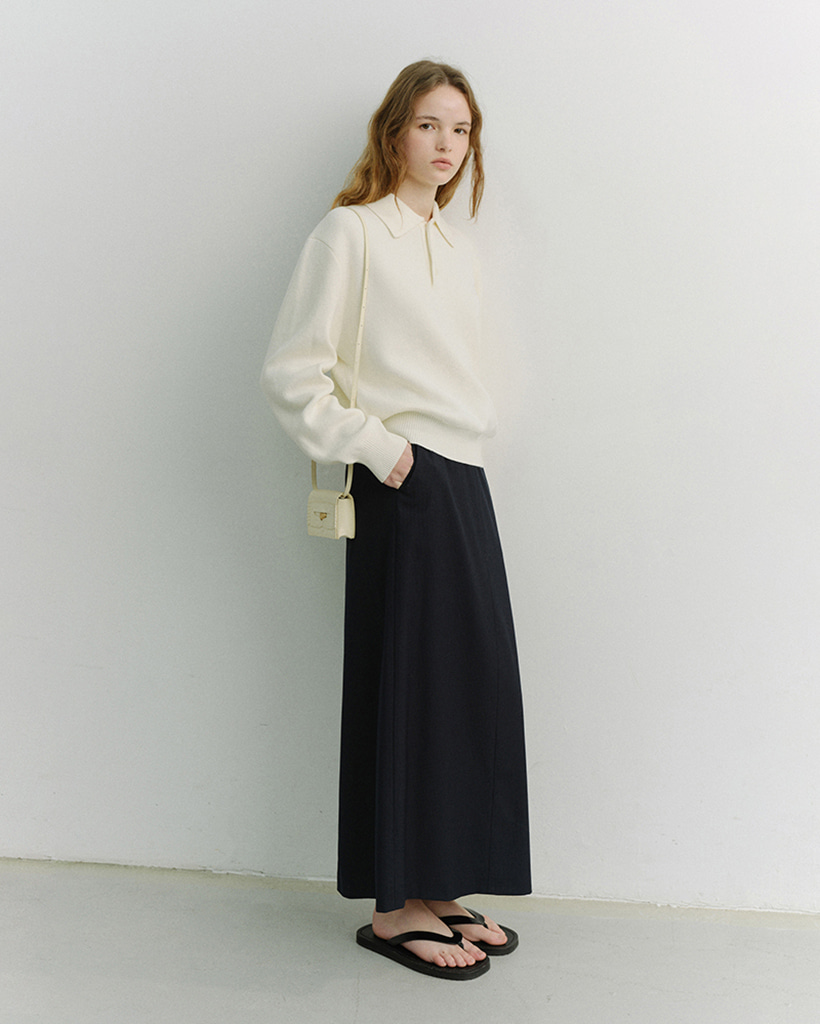 H-LINE STRIPED MAXI SKIRT NAVY STRIPE_UDSK6A207N2
