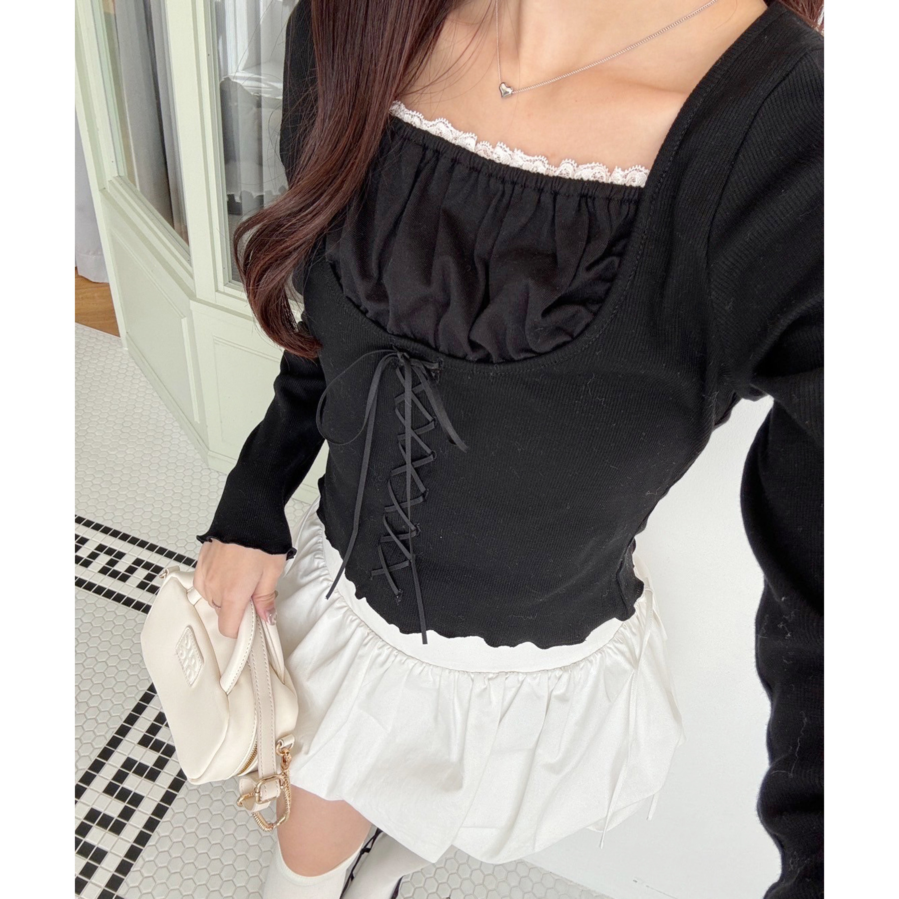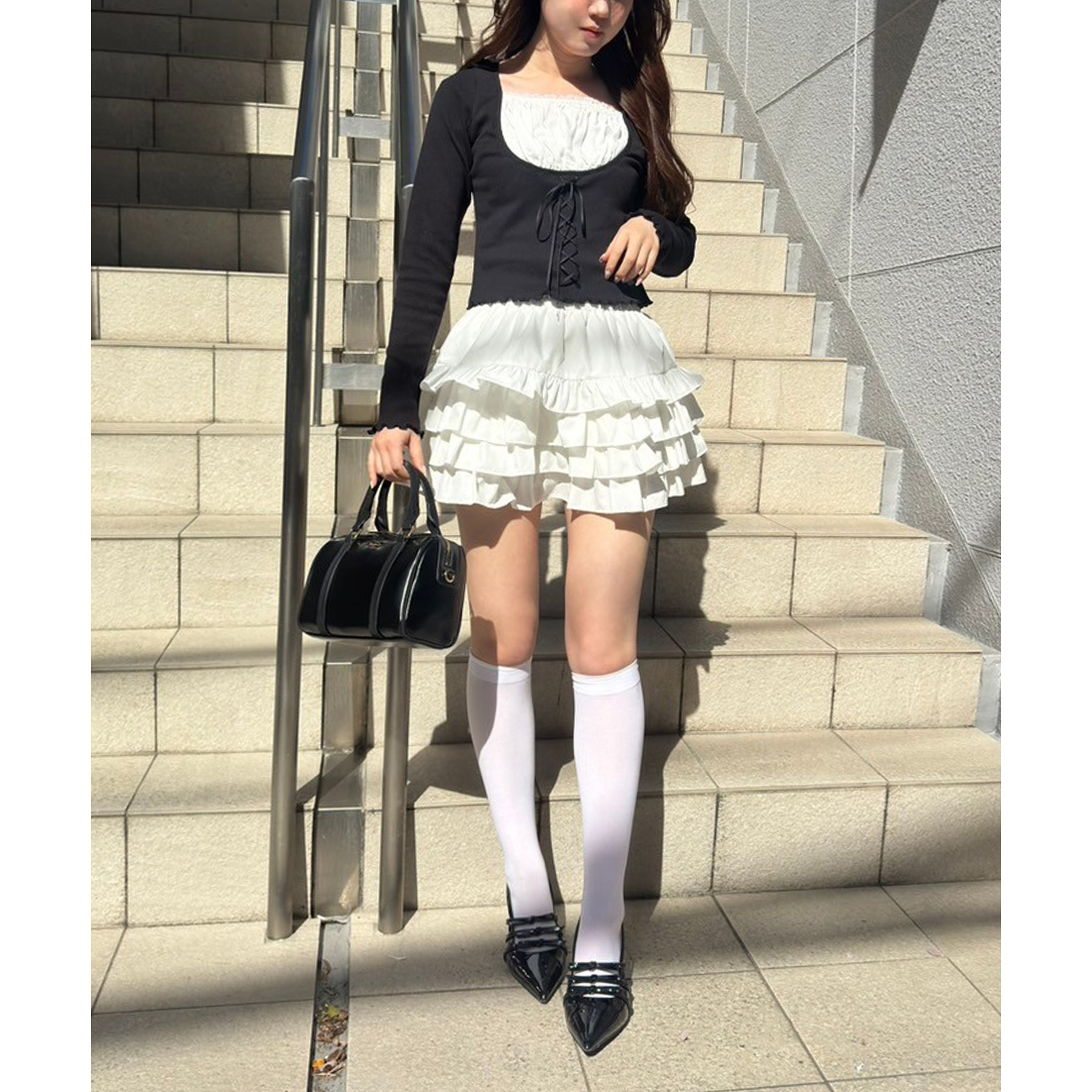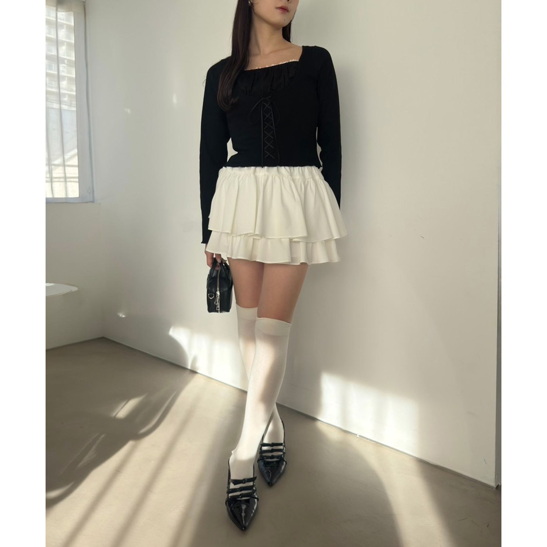 ミニ丈のスカートと合わせてトレンドのバレエコアスタイルもオススメです。