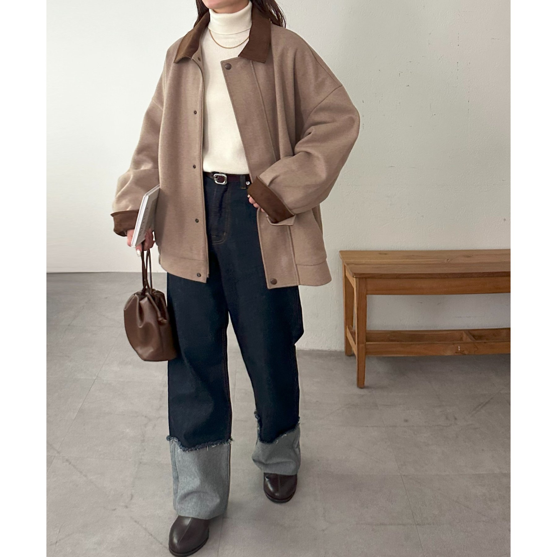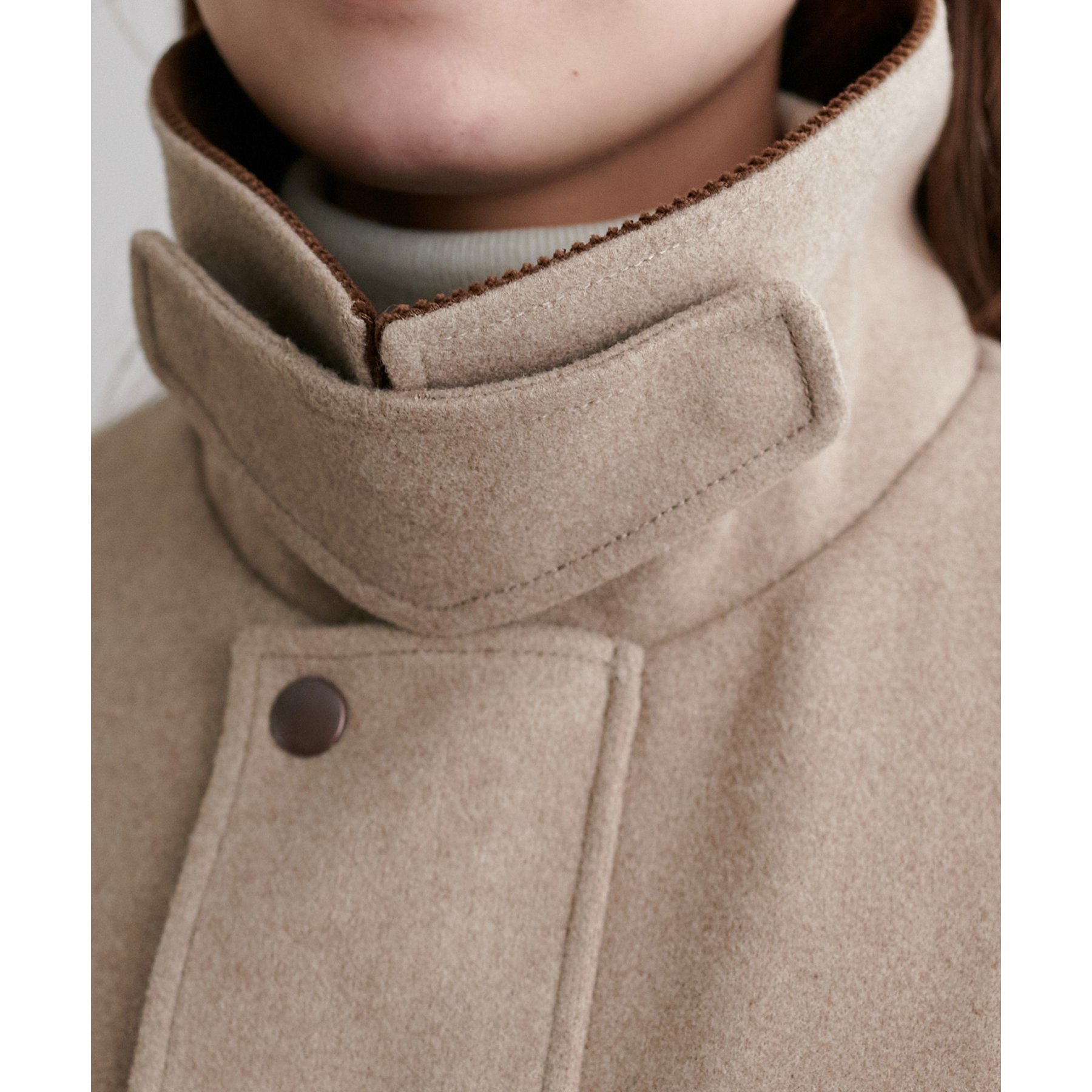 衿部分はステンカラーとスタンドカラーの2WAY仕様なので、その日のコーデや気温に合わせて楽しんでいただけます♪