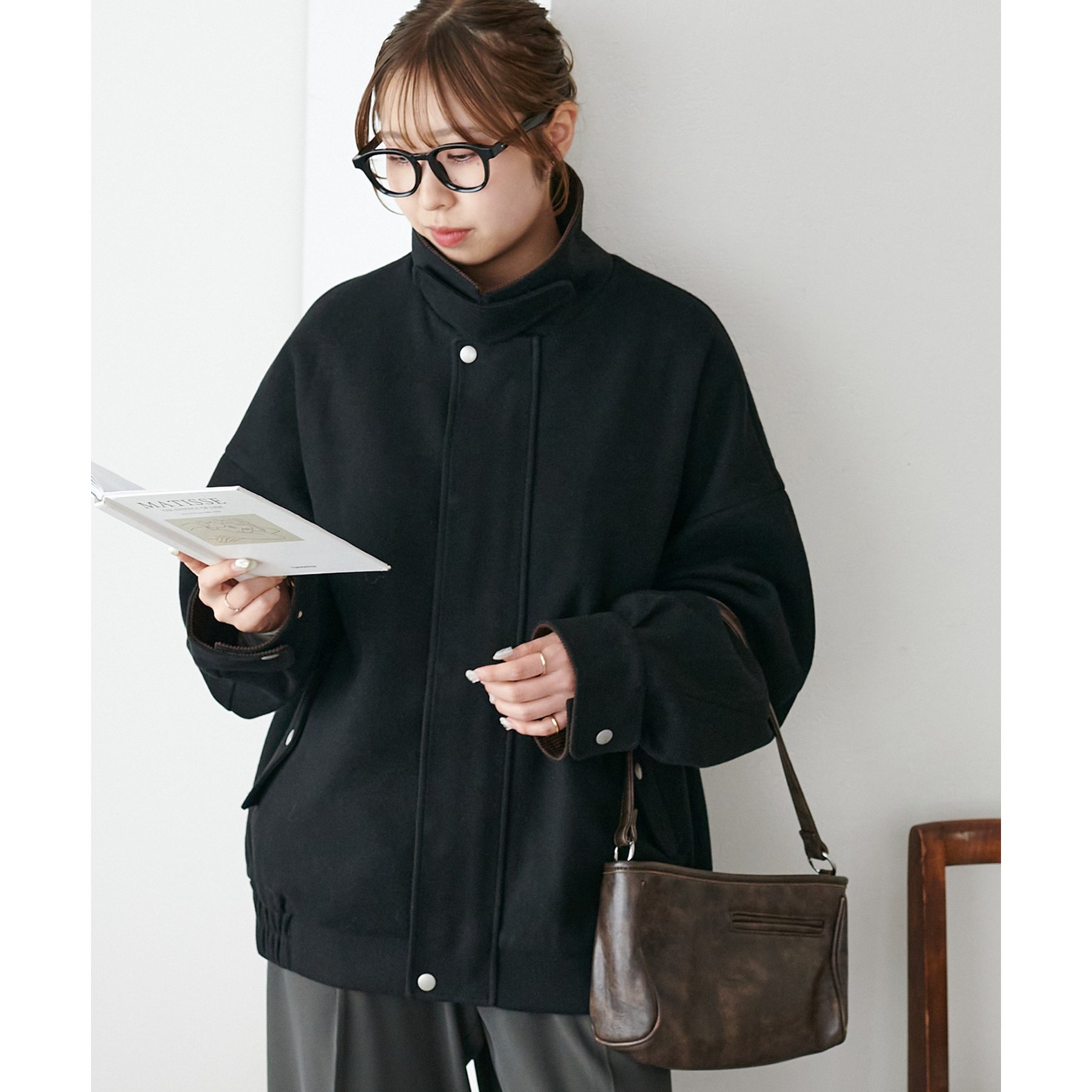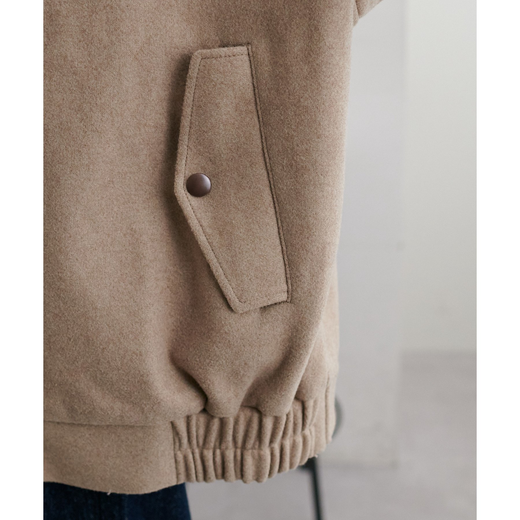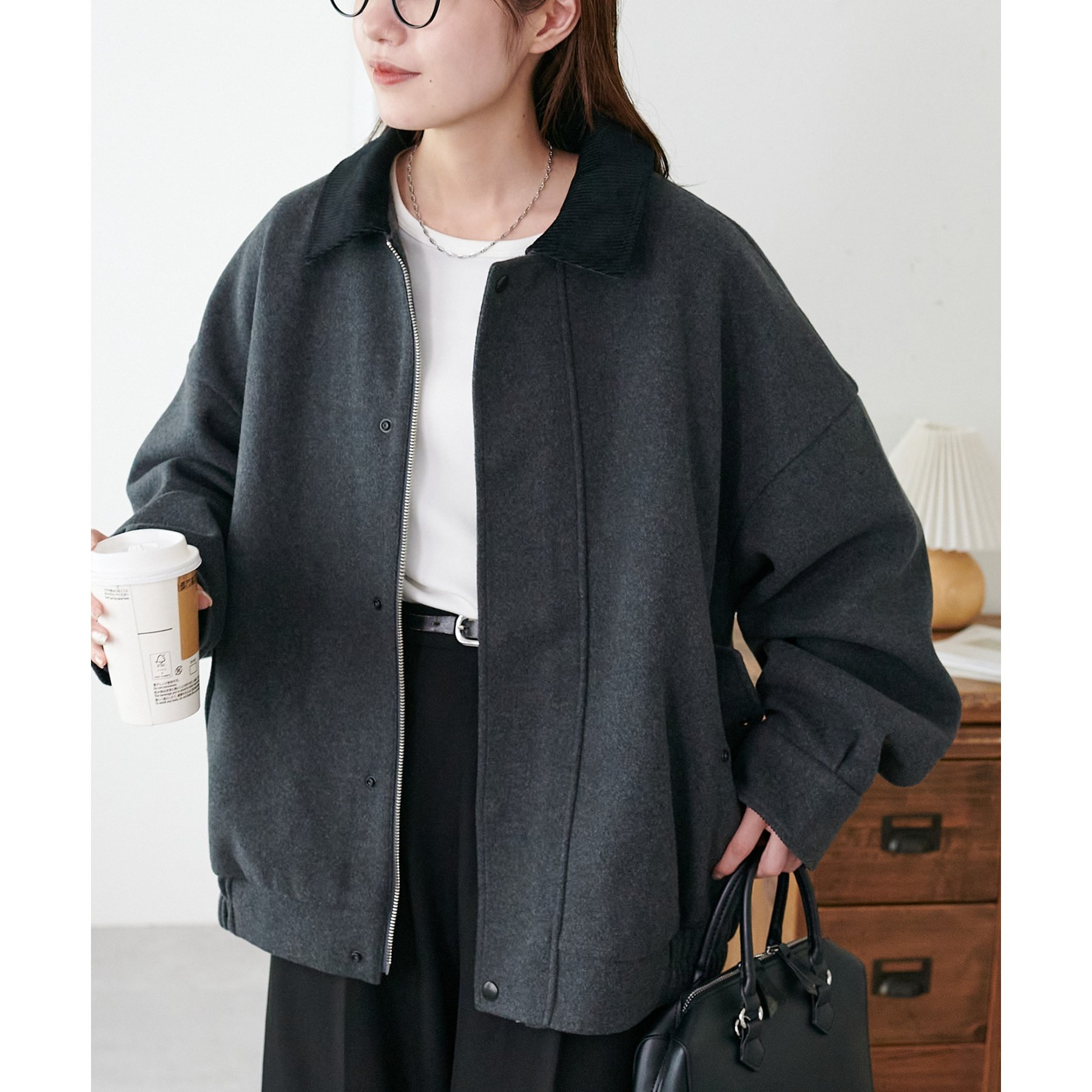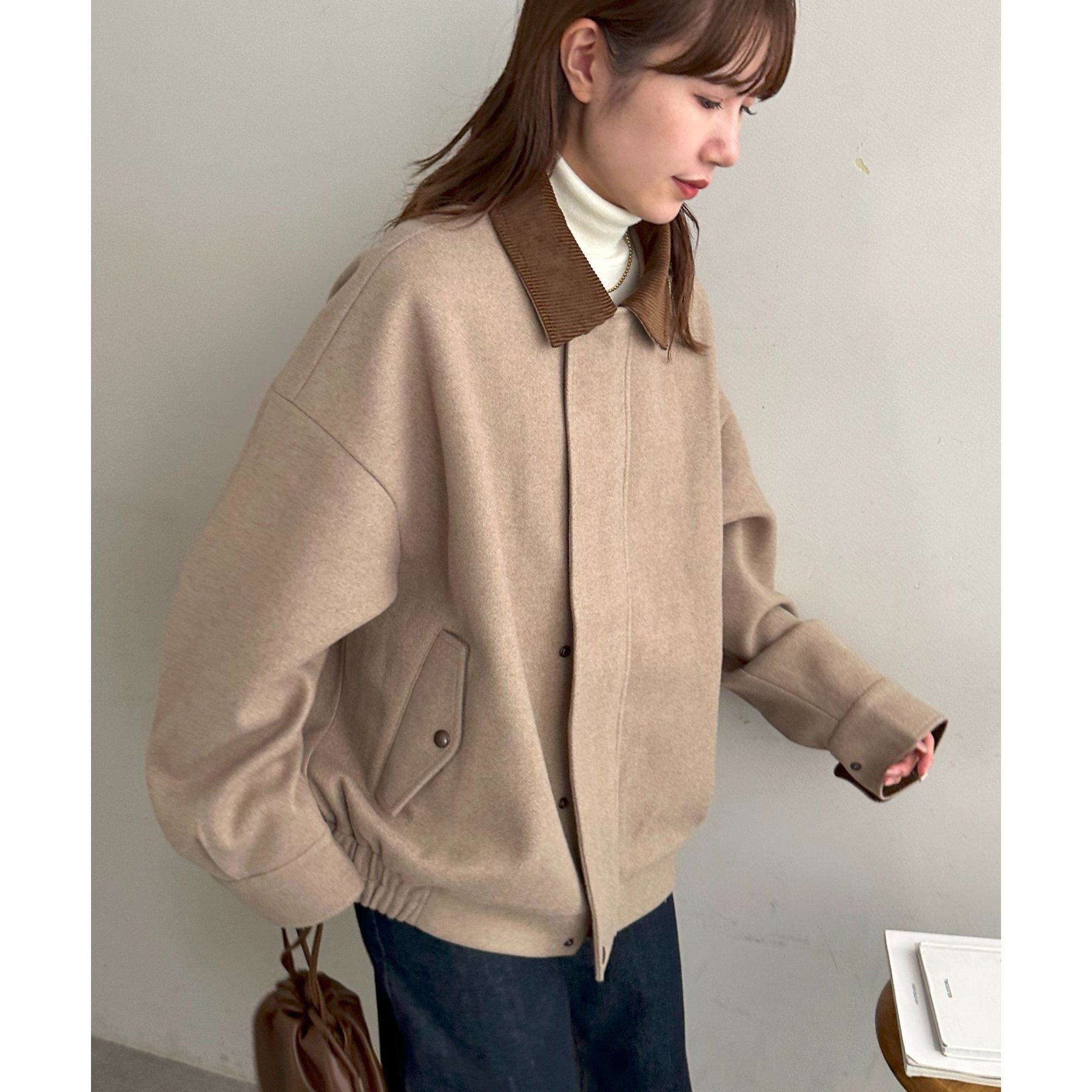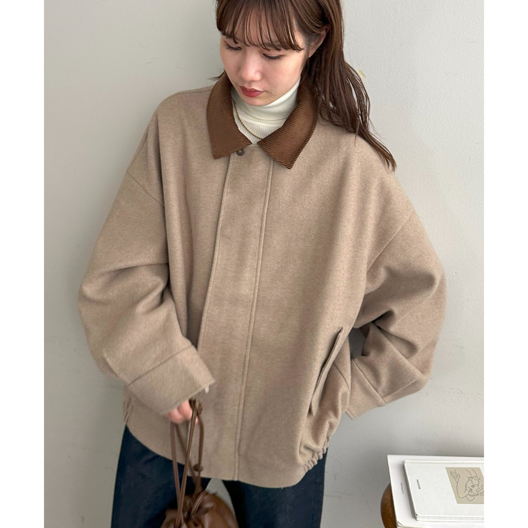 158cmレディーススタッフ(Mサイズ着用):オーバーサイズのニットやスウェットを着ているときに、腕回り部分が合うアウターが見つかりずらいのが悩みでしたが、こちらはアーム部分にもゆとりがありストレスフリーで着ることができます。