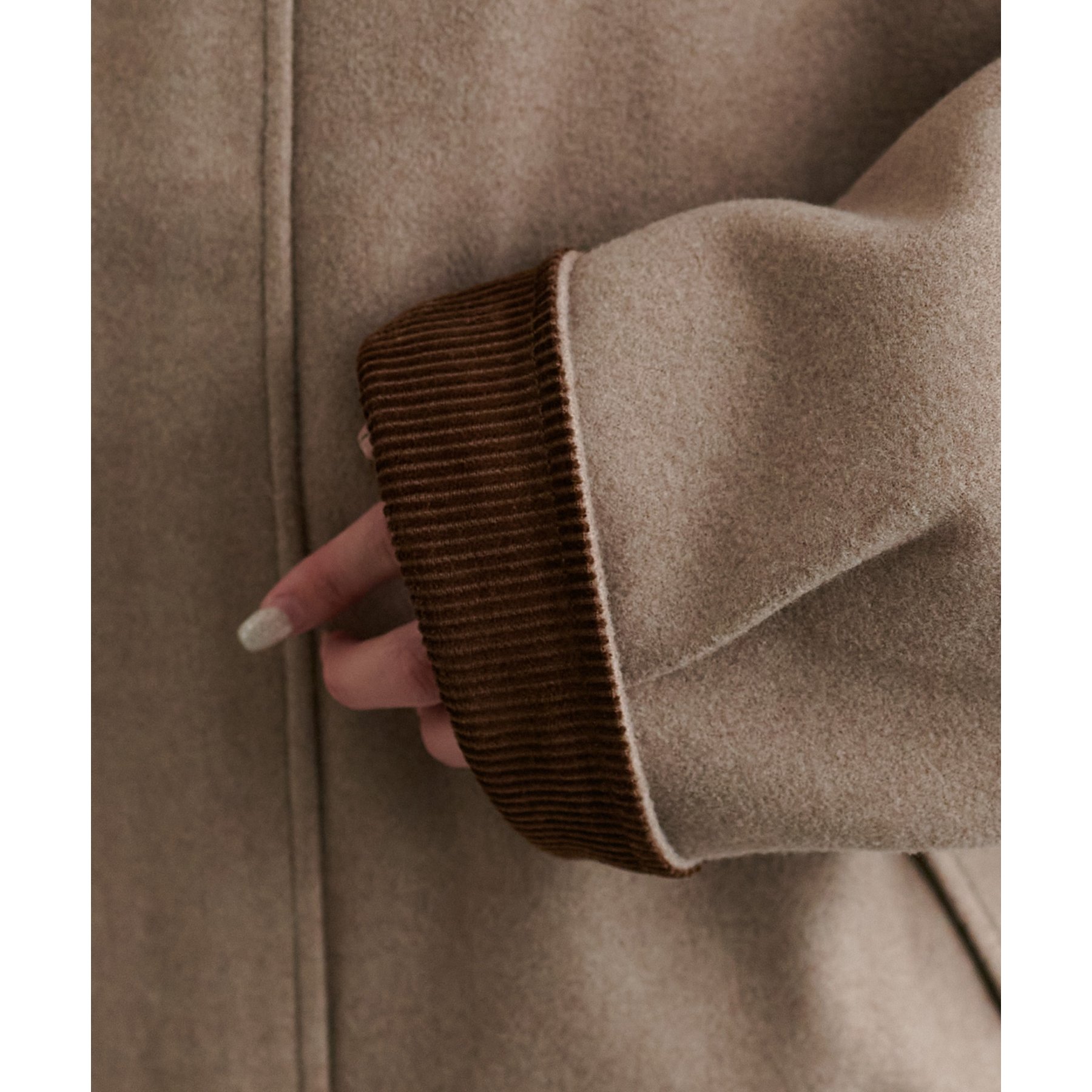 袖口部分の裏地も衿部分と同じ素材を使用。一折すると手元にもポイントが!
