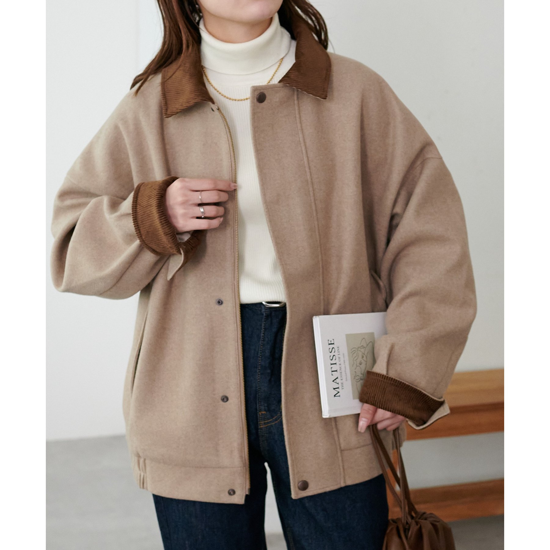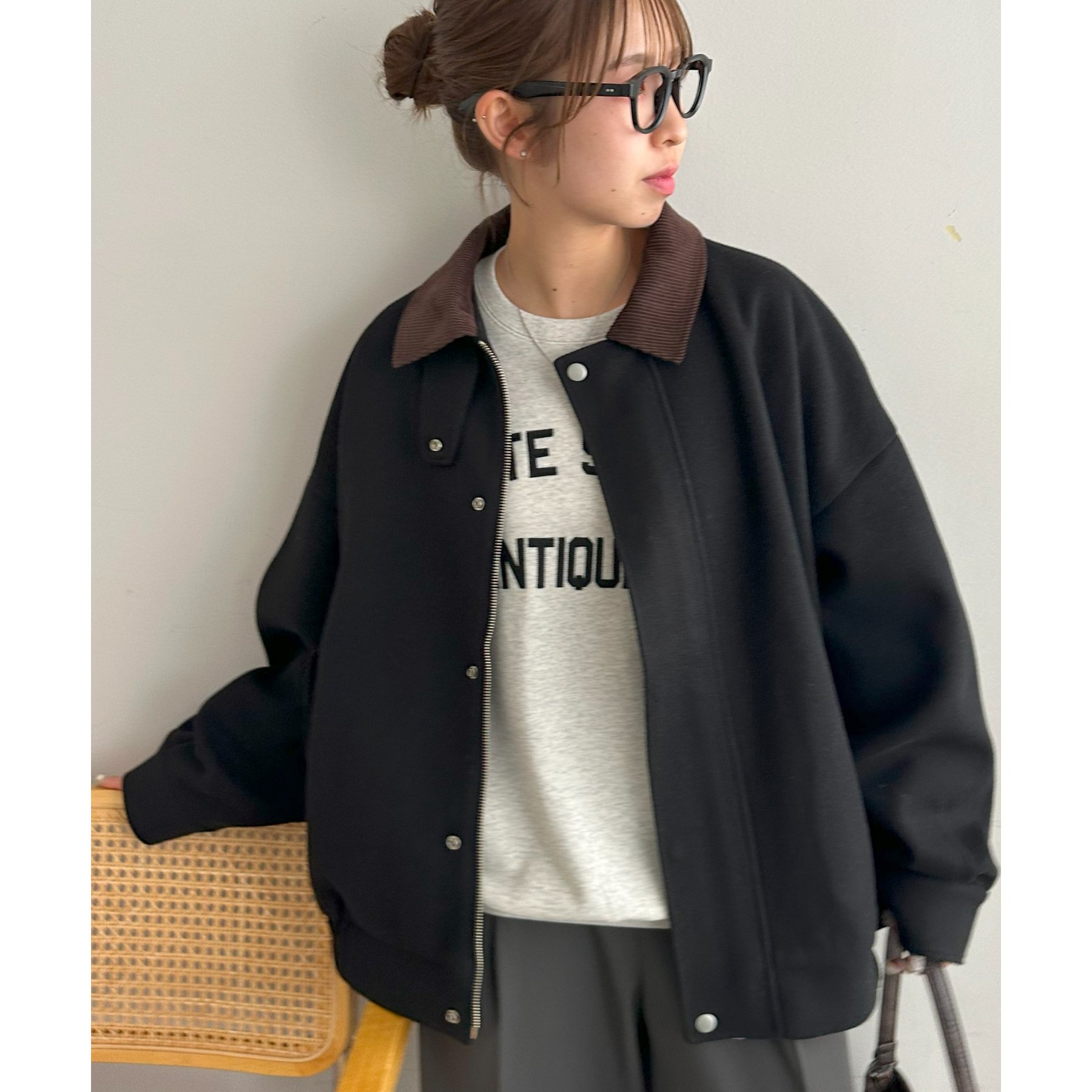 衿が配色になり、コーデのポイントになるジャケット。