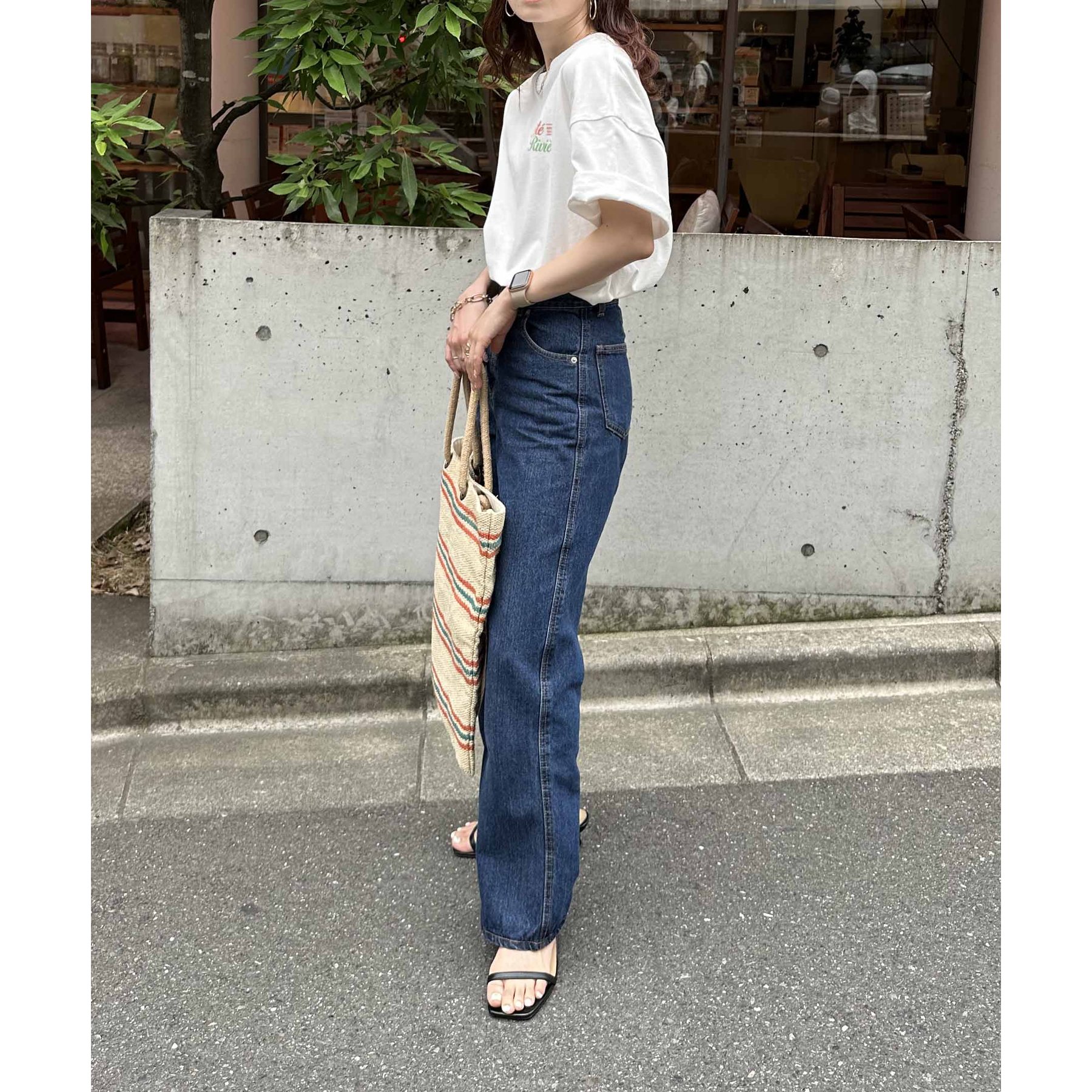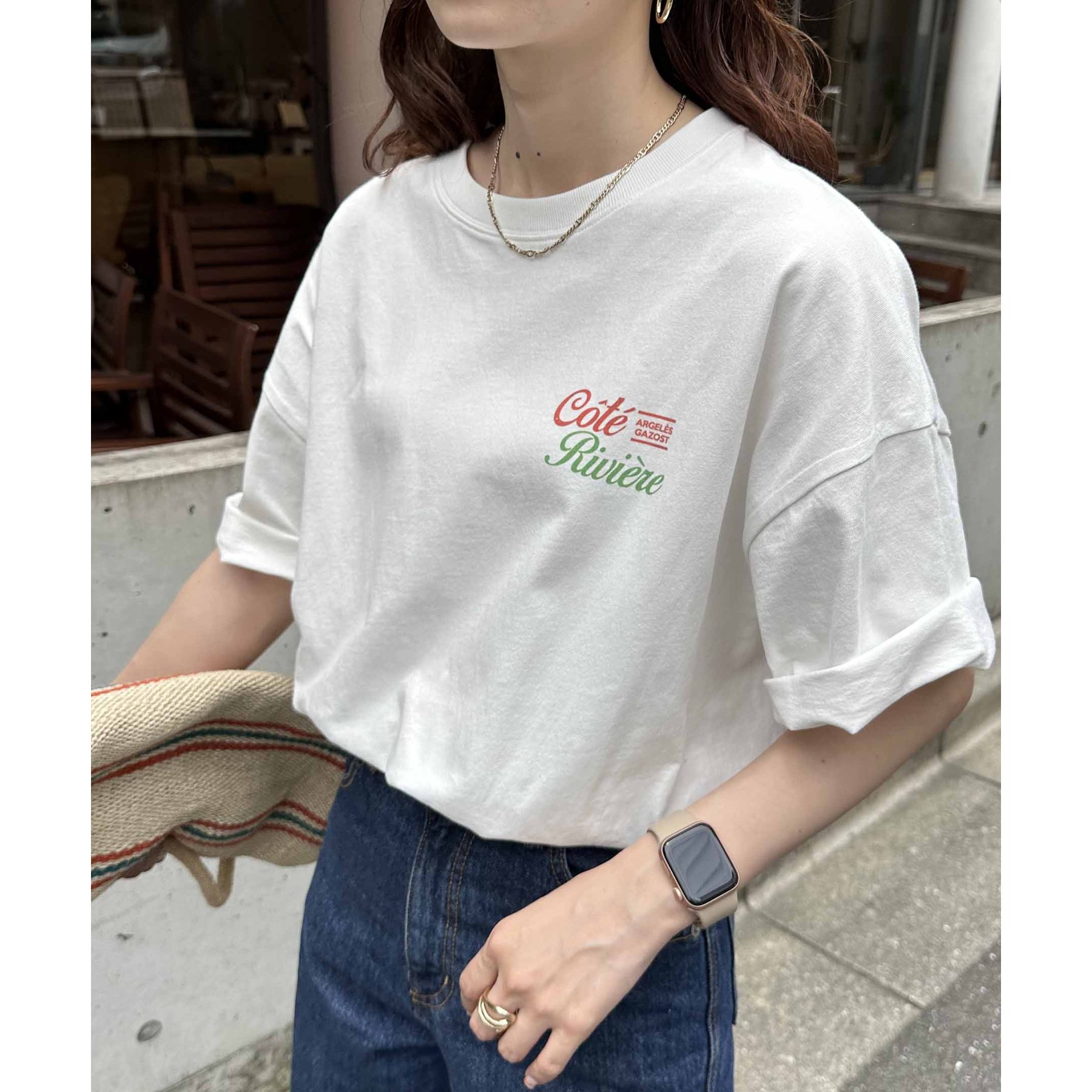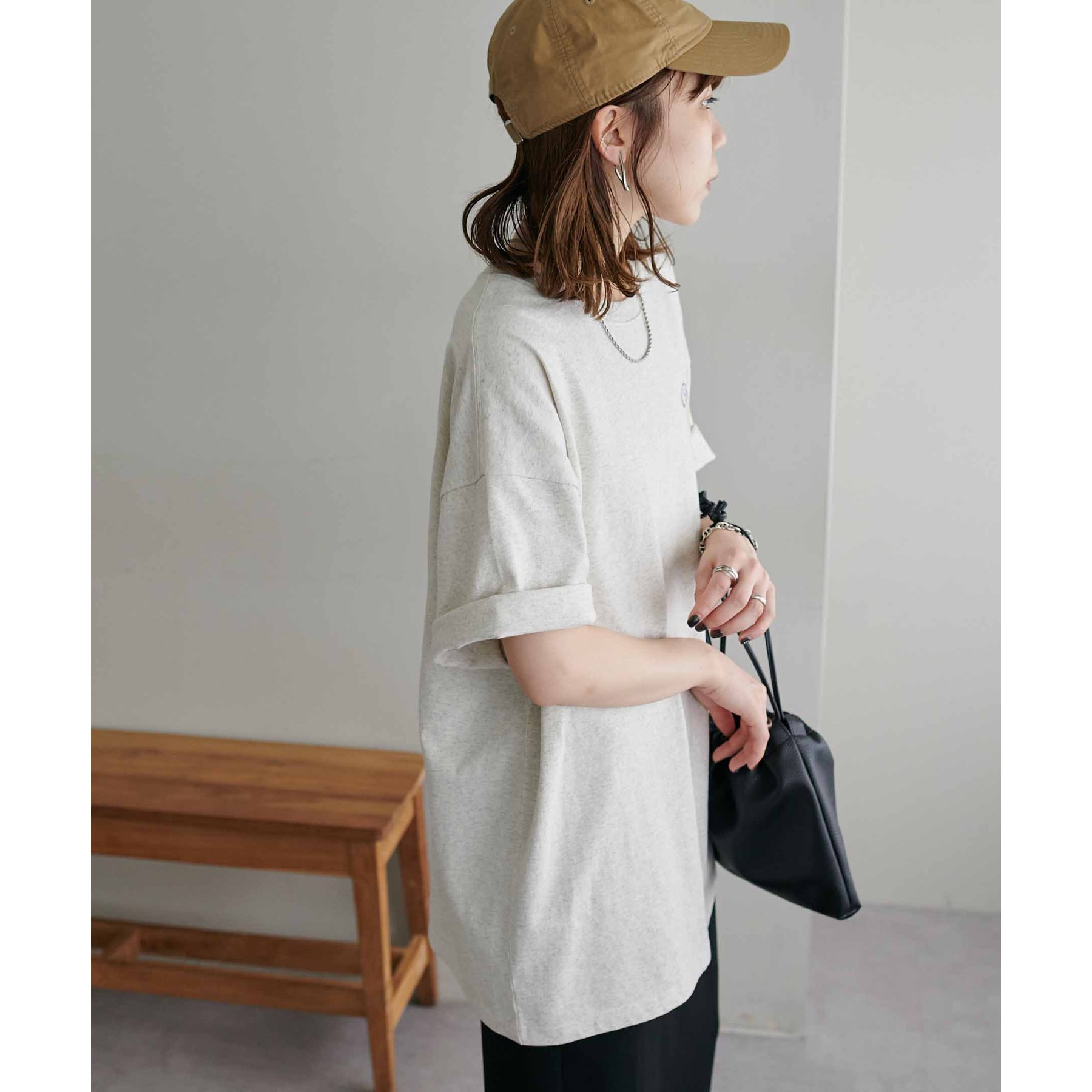 162cmレディーススタッフ:シンプルなボトムと合わせても映えるデザインなので、1枚でコーデが決まります。袖をロールアップして抜け感を出すのもおすすめです!